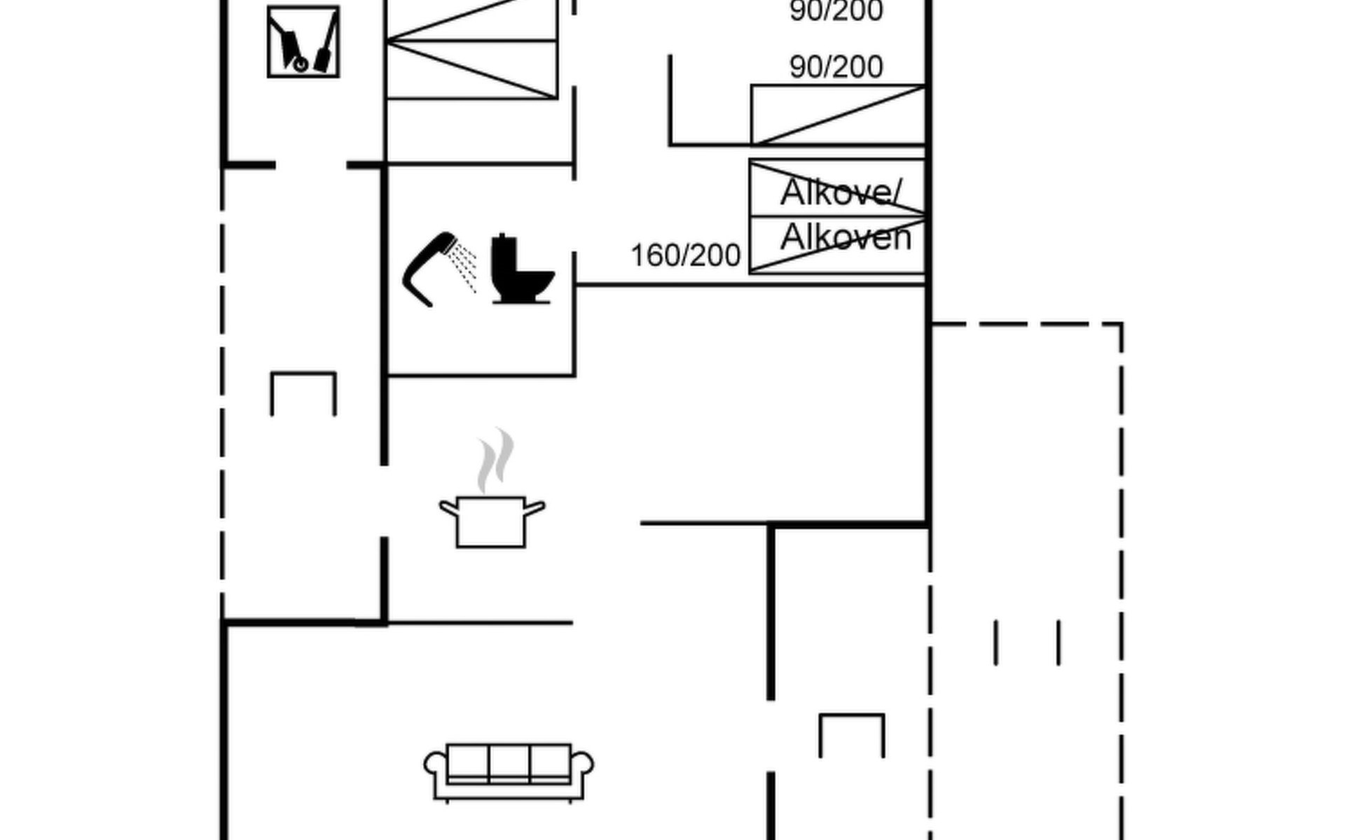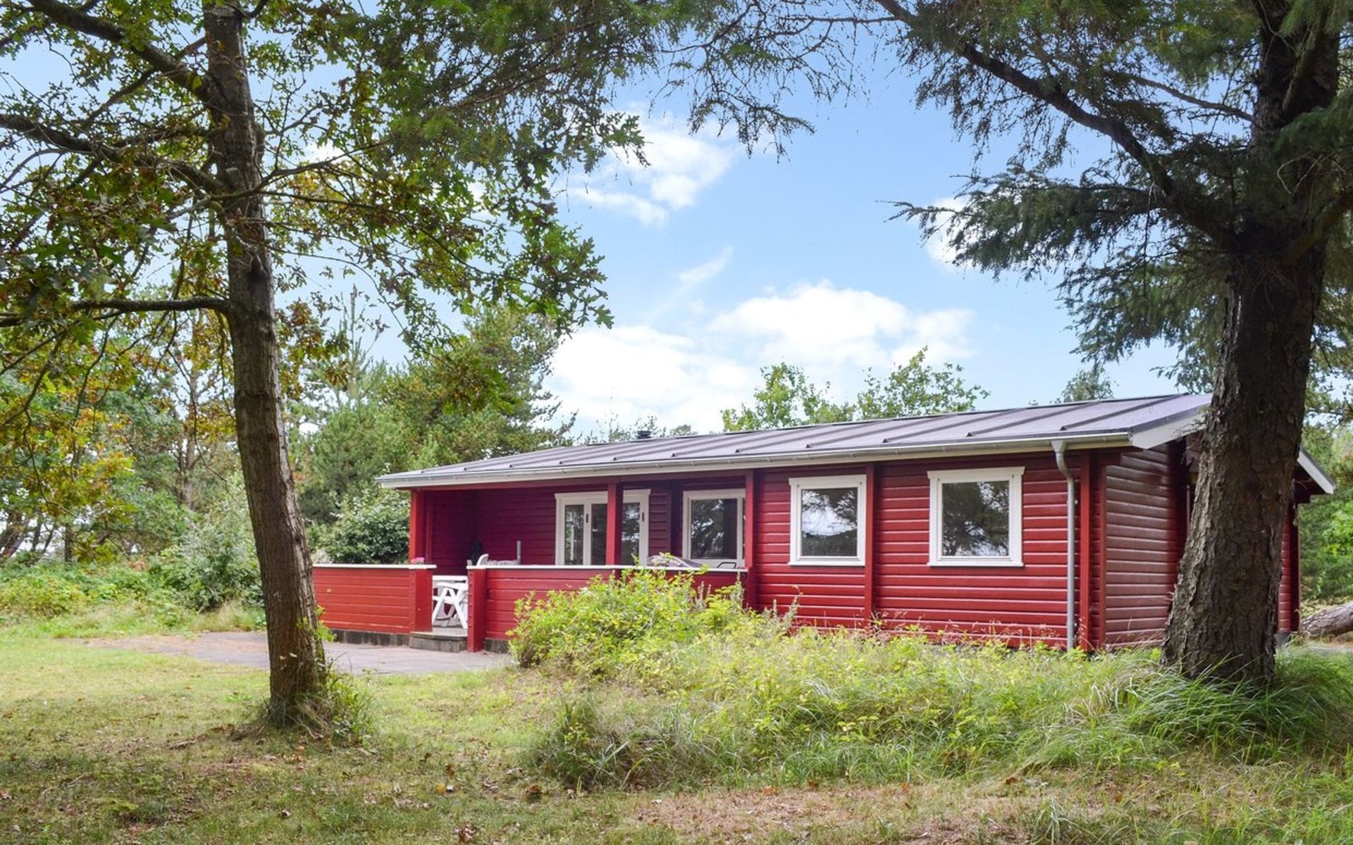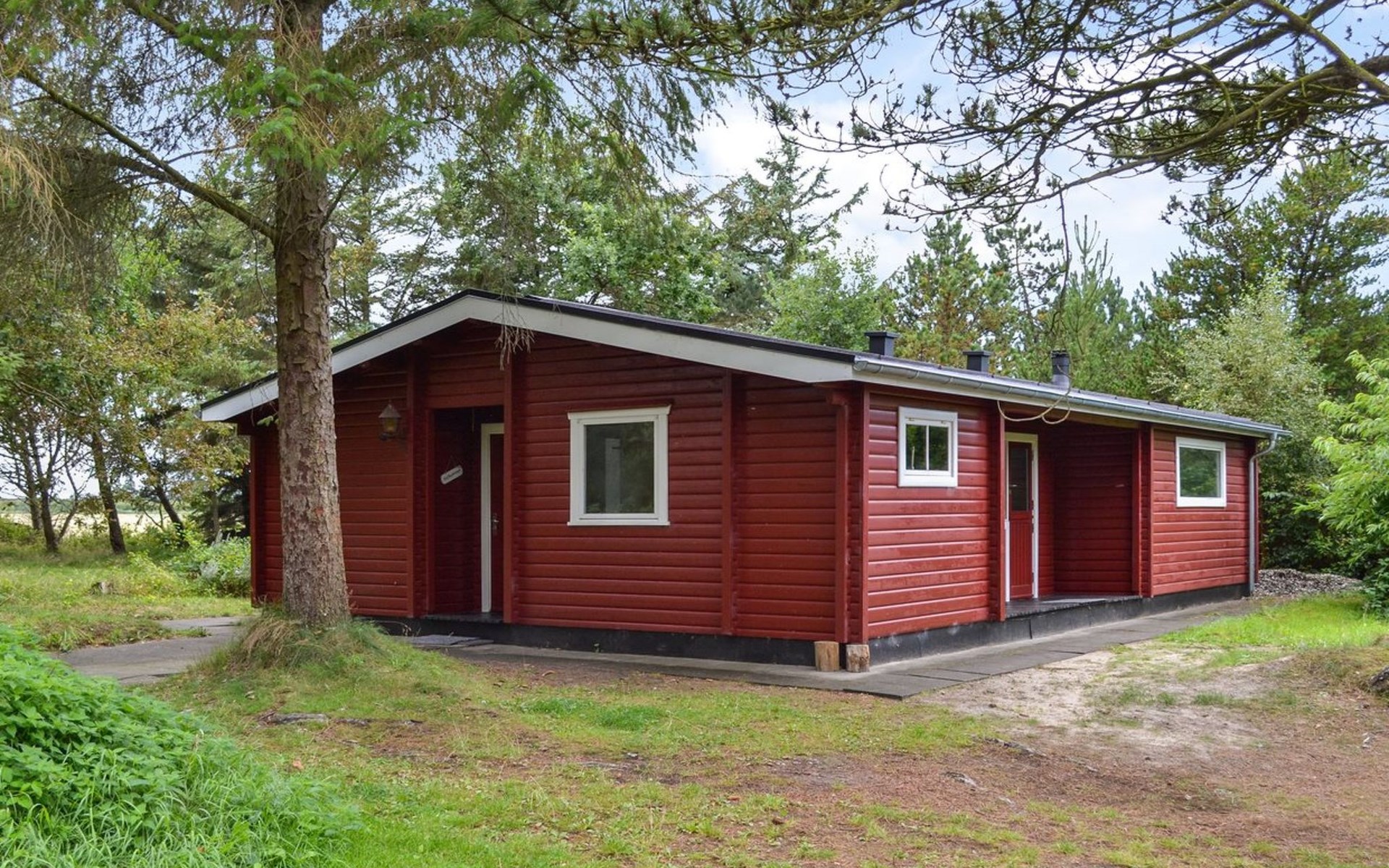 Single-family house, built in 1975. 1 km from the sea. Private: natural state property 2'500 m2. Children's playground (swing). In the house: washing machine, tumble dryer. Parking at the house. E-charging station. Grocery 1.7 km. Golf course 200 m. The owner does not accept any youth groups.