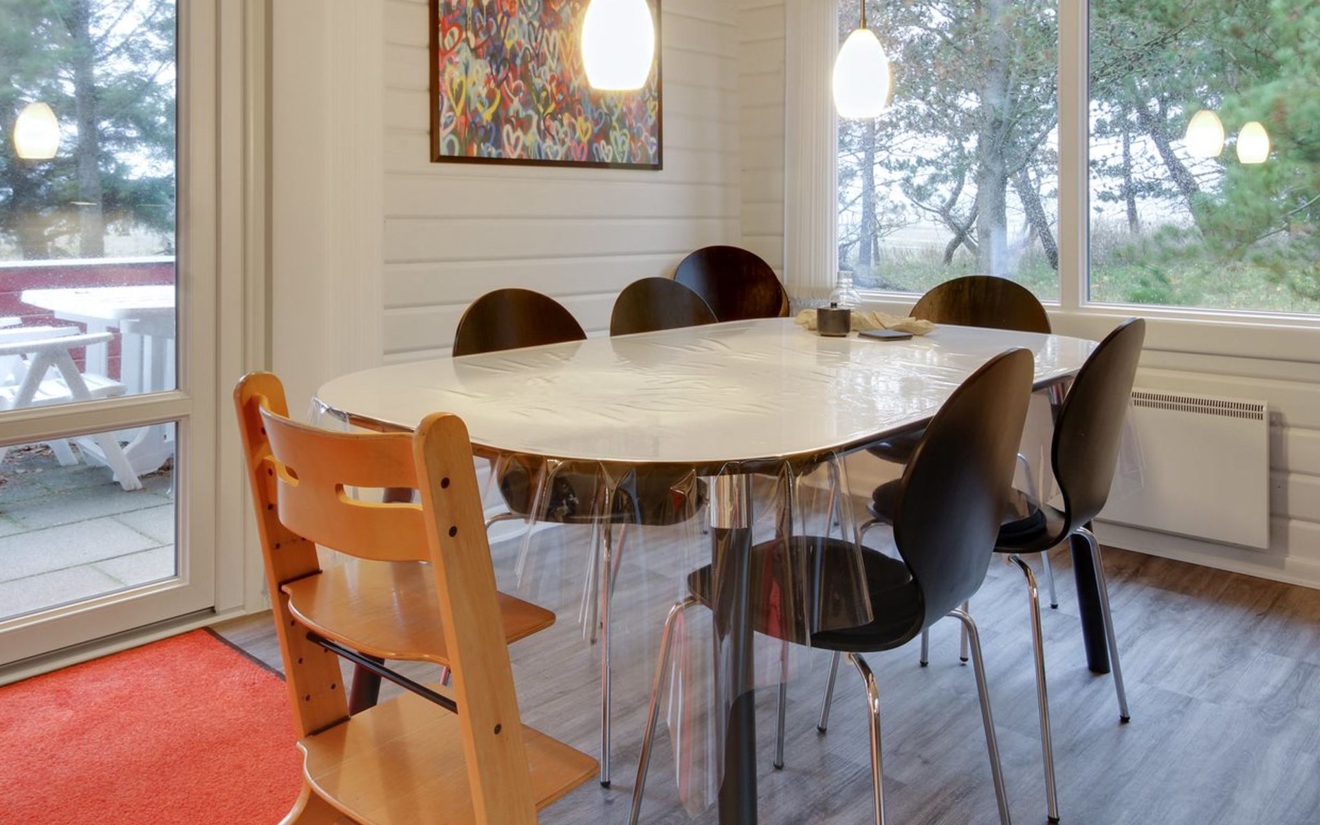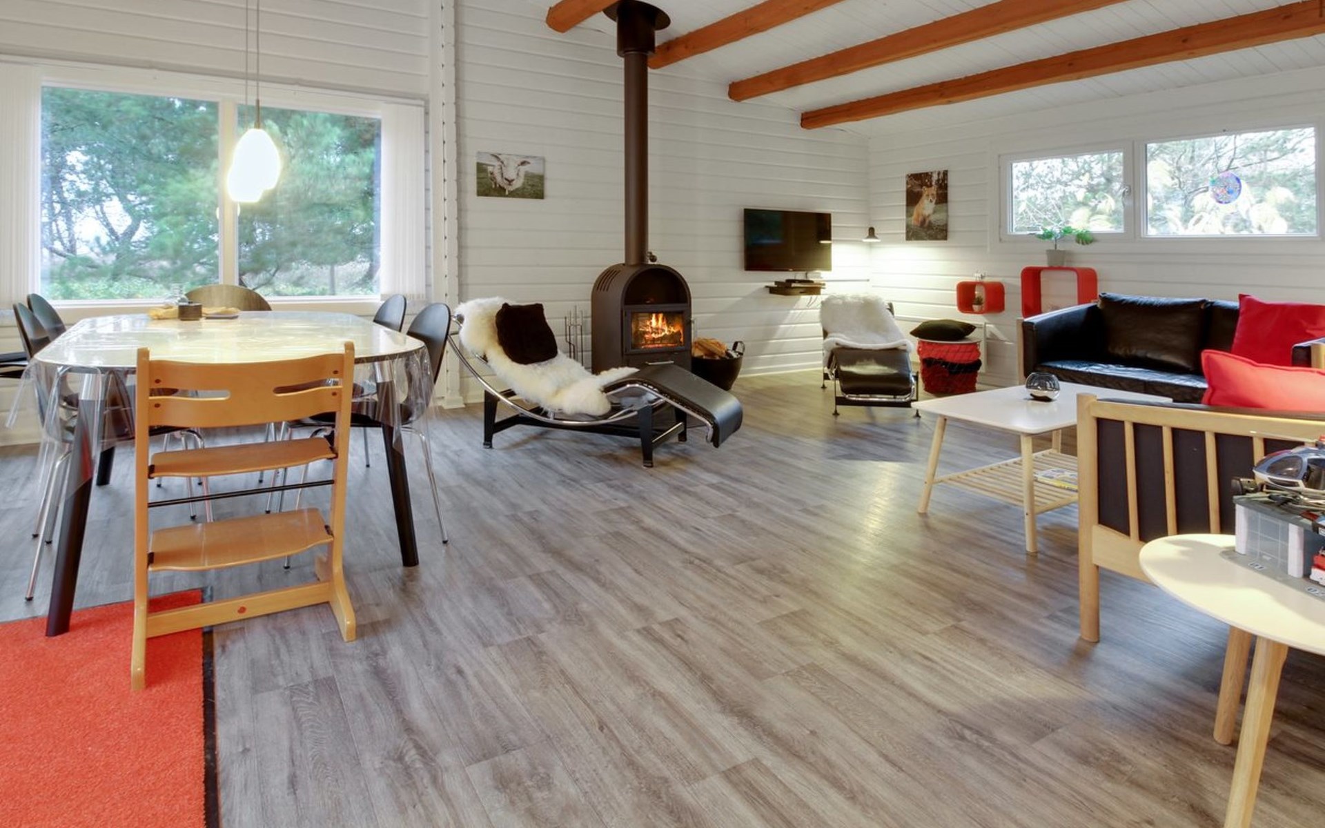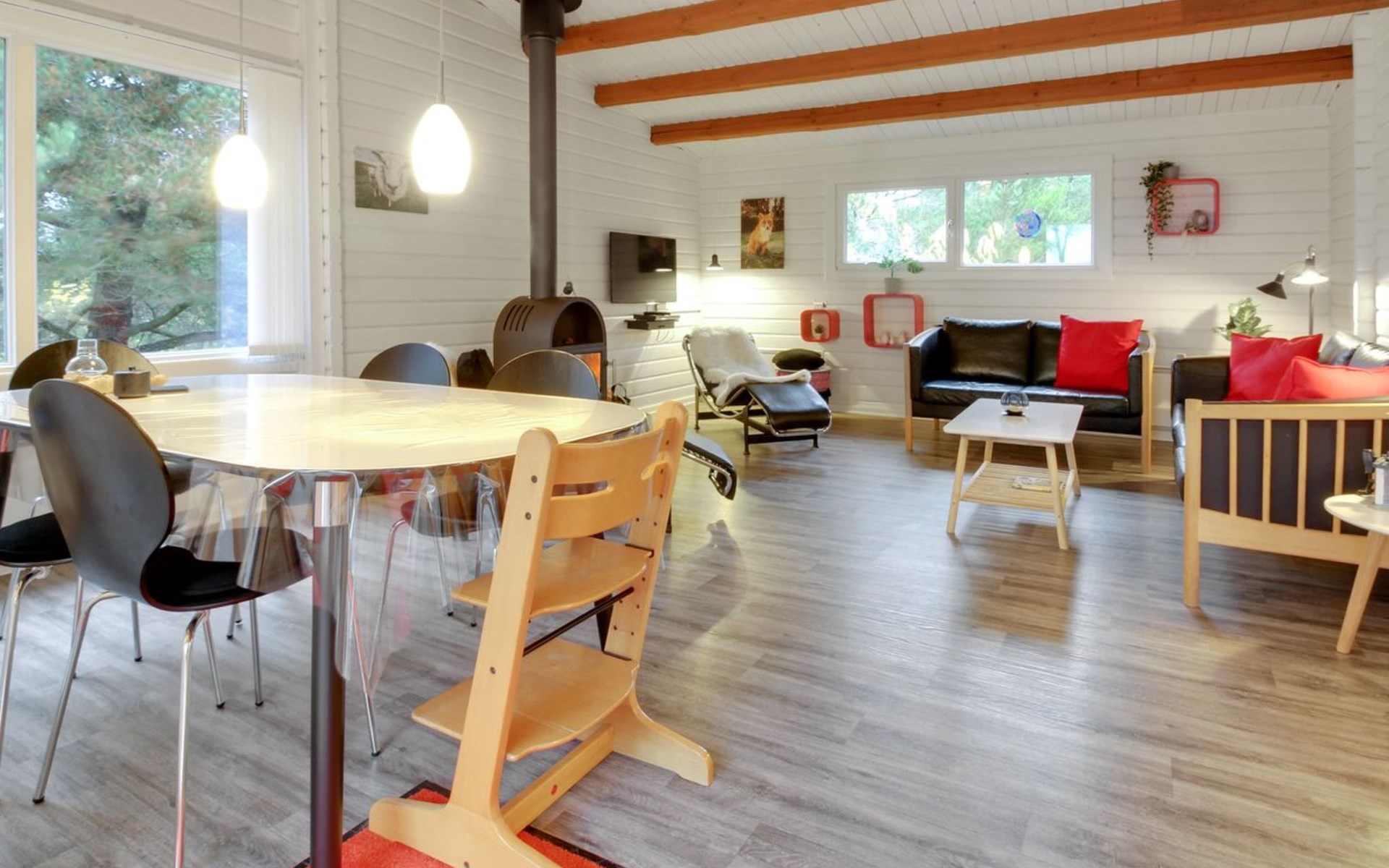 Single-family house, built in 1975. 1 km from the sea. Private: natural state property 2'500 m2. Children's playground (swing). In the house: washing machine, tumble dryer. Parking at the house. E-charging station. Grocery 1.7 km. Golf course 200 m. The owner does not accept any youth groups.