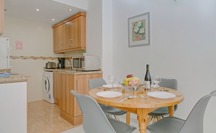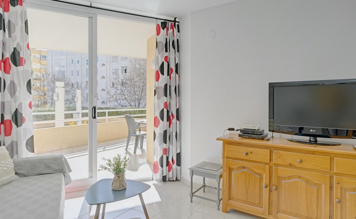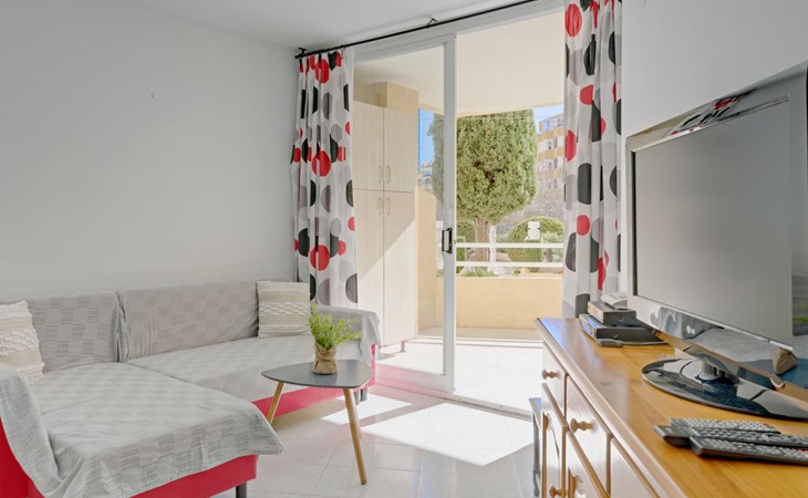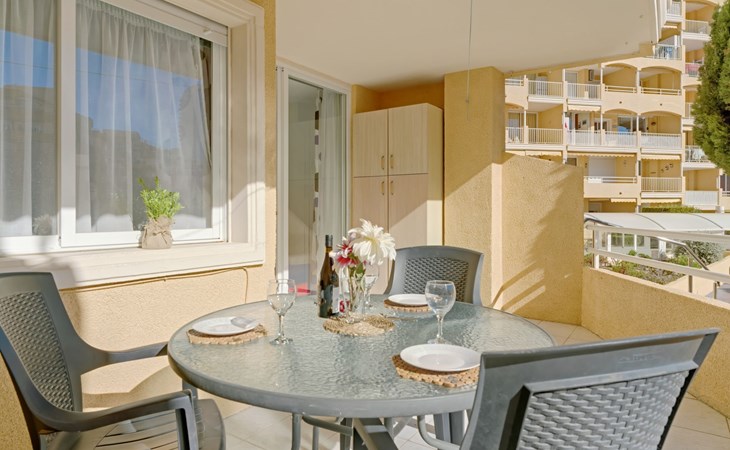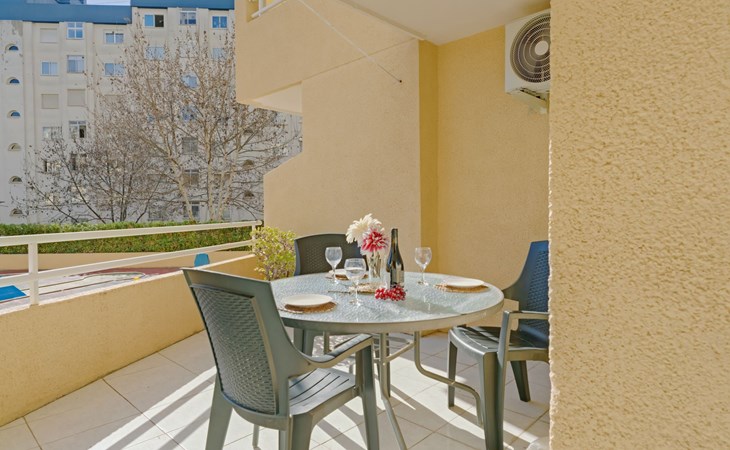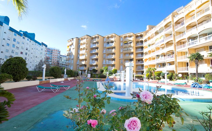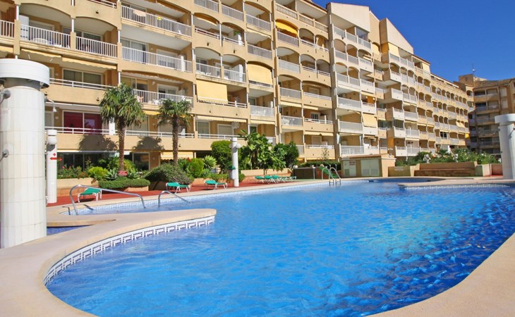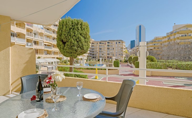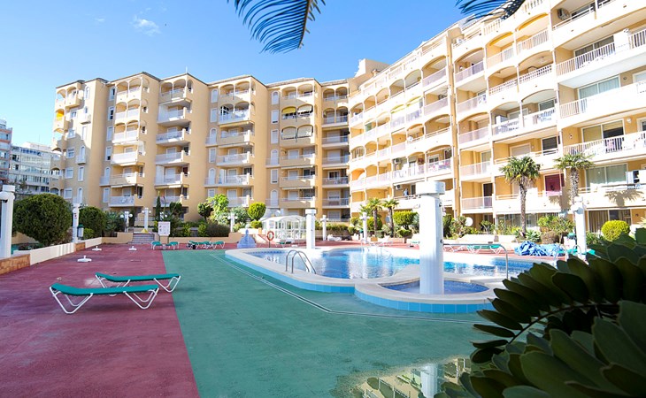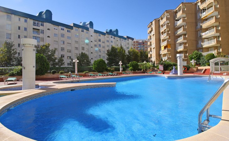 Apartment block "Apolo VII", 7 storeys. In the centre of Calpe, in a central position, 400 m from the sea. For shared use: garden, 2 swimming pools (seasonal availability: 01.May. - 30.Sep. pool opening hours: 10:00-21:00). Children's pool, outdoor shower, boccia, terrace. In the house: WiFi, sauna (extra). Fitness room (extra). Hot tub (extra). Table tennis (extra). Lift. Supermarket, shopping centre 400 m, restaurant, bar, café 10 m, bus stop, sandy beach 400 m. Nearby attractions: Aqualandia, Mundomar, Terra Mítica, Terra Natura, Benidorm Palace (Benidorm). Minigolf for children, Sauna, Squash and Ping Pong in the building (all EXTRA).