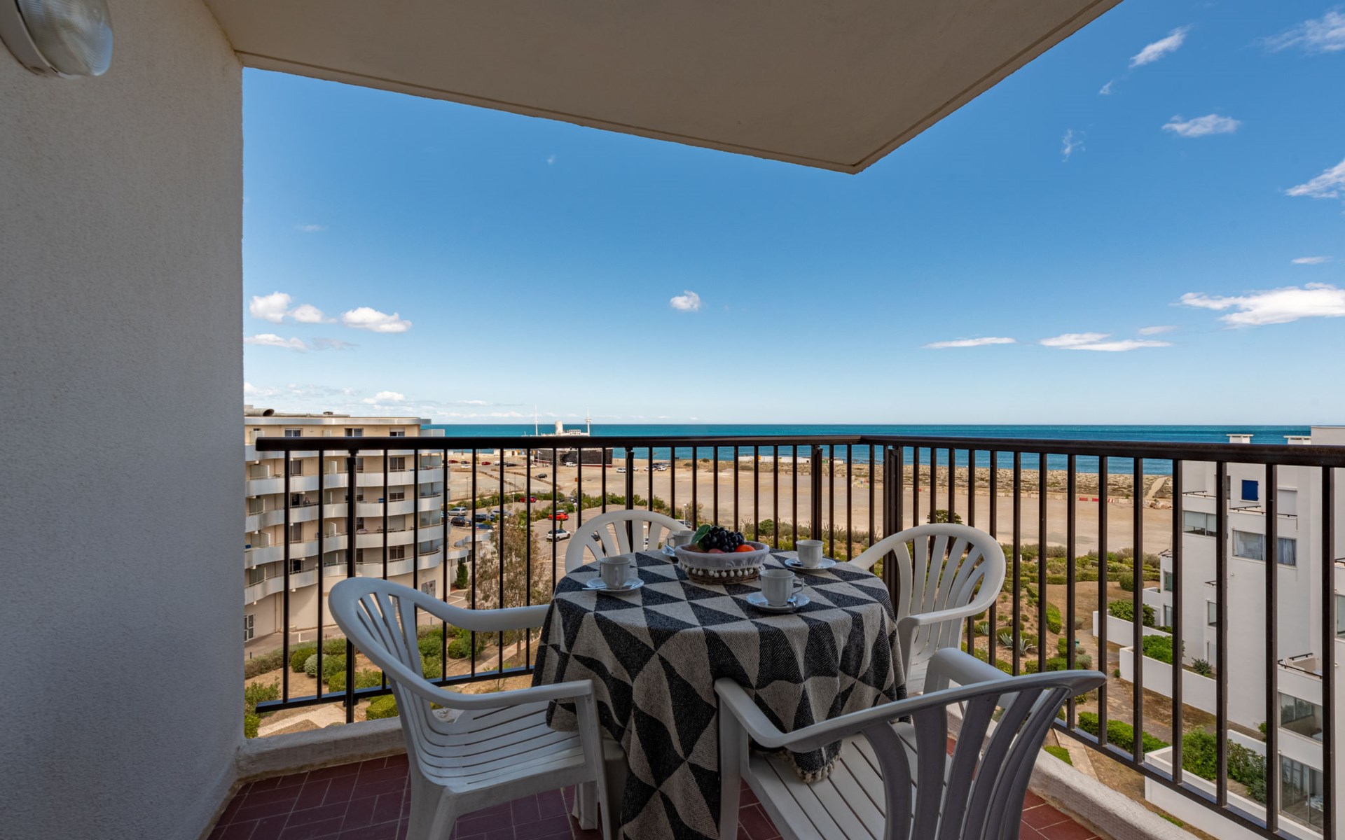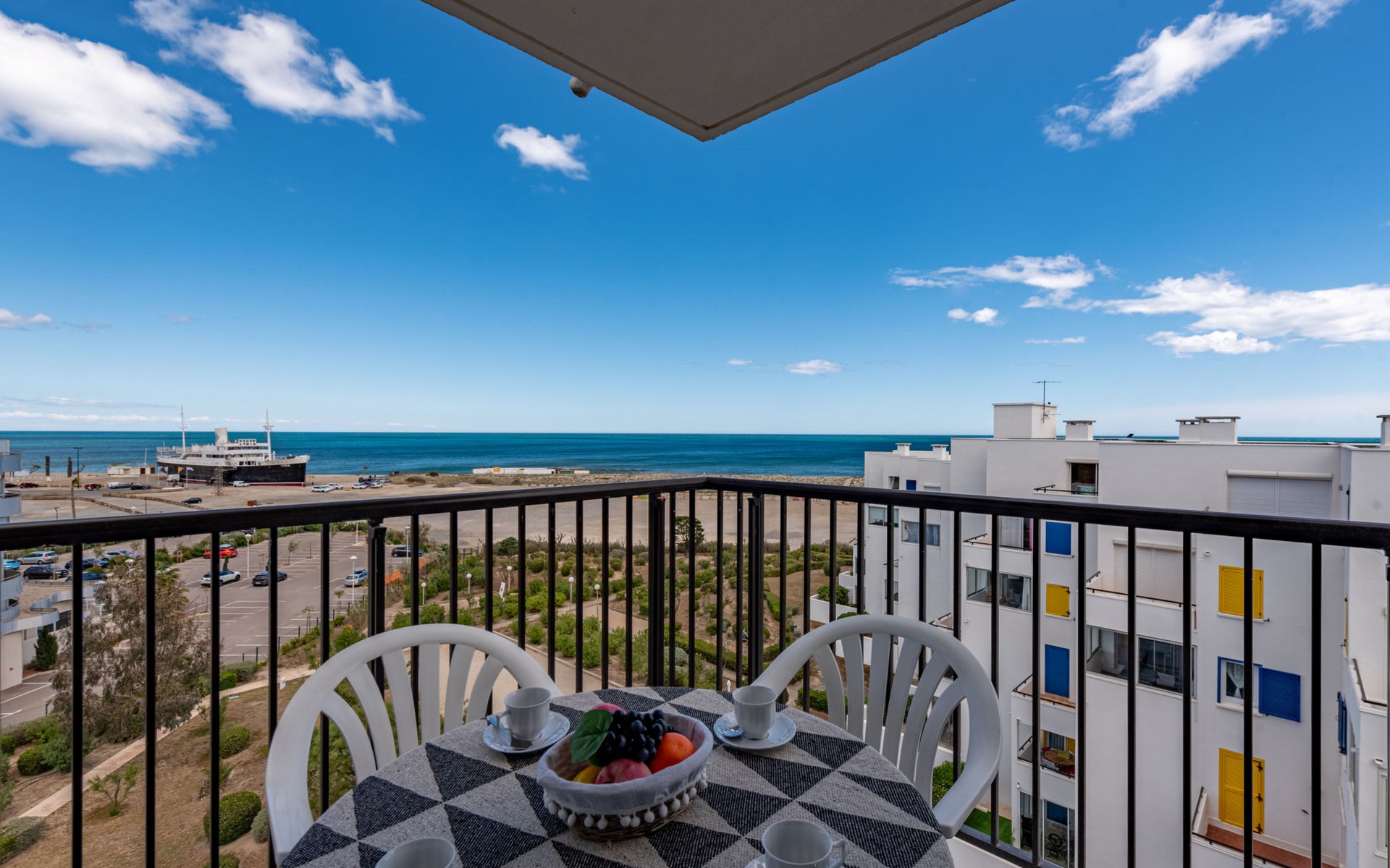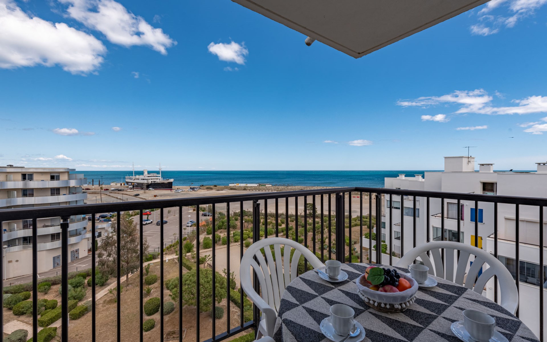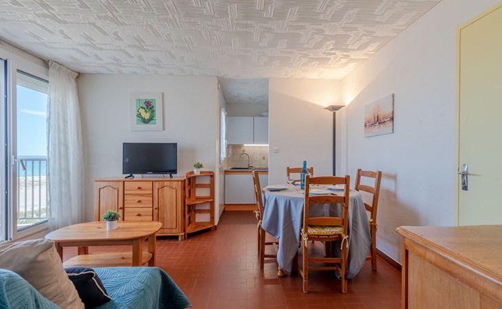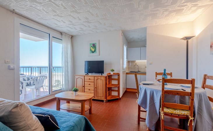 Residence "Le Grand Pavois", 6 storeys. In the district of la Grande Plage, 250 m from the sea, 100 m from the beach. In the complex: lift. Parking space n 123. Shop 1 km, supermarket 5 km, restaurant 1 km, bakery 1 km, café 500 m, bicycle rental 3 km, bus stop "Roussillon" 550 m, railway station "La Franqui" 20 km, sandy beach "le barcares" 100 m, diving center 5 km, outdoor swimming pool 7 km, nudist beach 10 km. Sailing school 3 km, tennis 3 km, minigolf 3 km, riding stable 12 km, cycle lane 6 km. Nearby attractions: Aqualand Port Leucate 7 km, Réserve Africaine de Sigean 41 km, Forteresse de Salses 20 km, Narbonne 55 km, Perpignan 25 km, Barcelone 215 km. Well-known lakes can easily be reached: Etang de Leucate ou de Salses 7 km, Lac de Villeneuve de la Raho 28 km. Hiking paths: Sentier du guetteur 8 km, Station meteorologique de Opoul Perillos 25 km, Sentier du littoral Collioure 40 km. Please note: car recommended. The keys‘ handover takes place by the agency Interhome in Barcarès, 2 km. Motorway 18 km from the property. Airfield 20 km from the property.