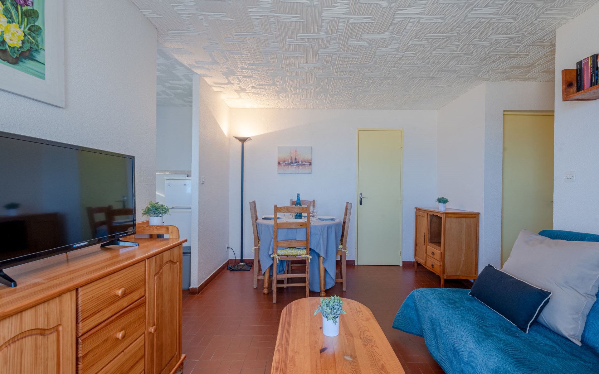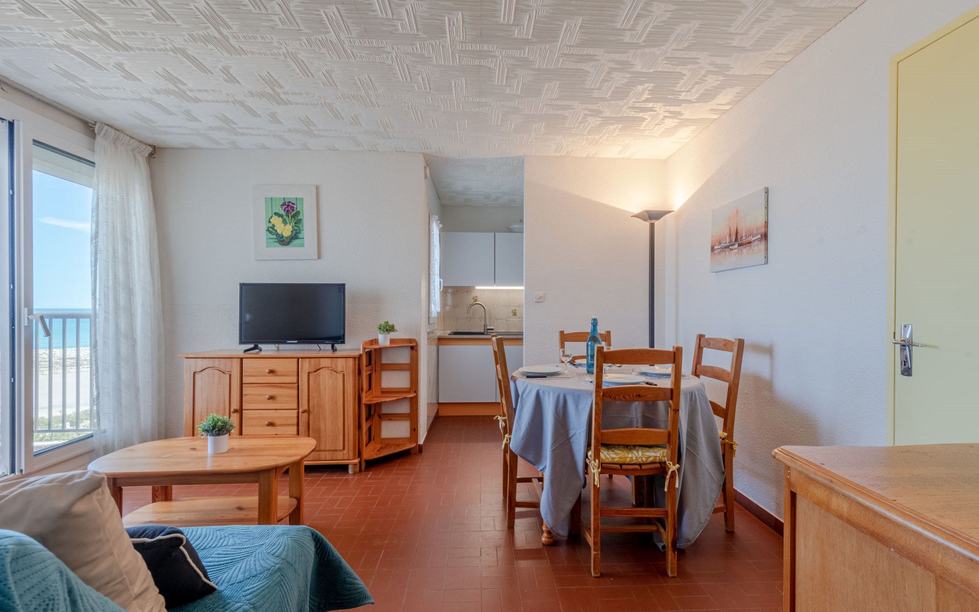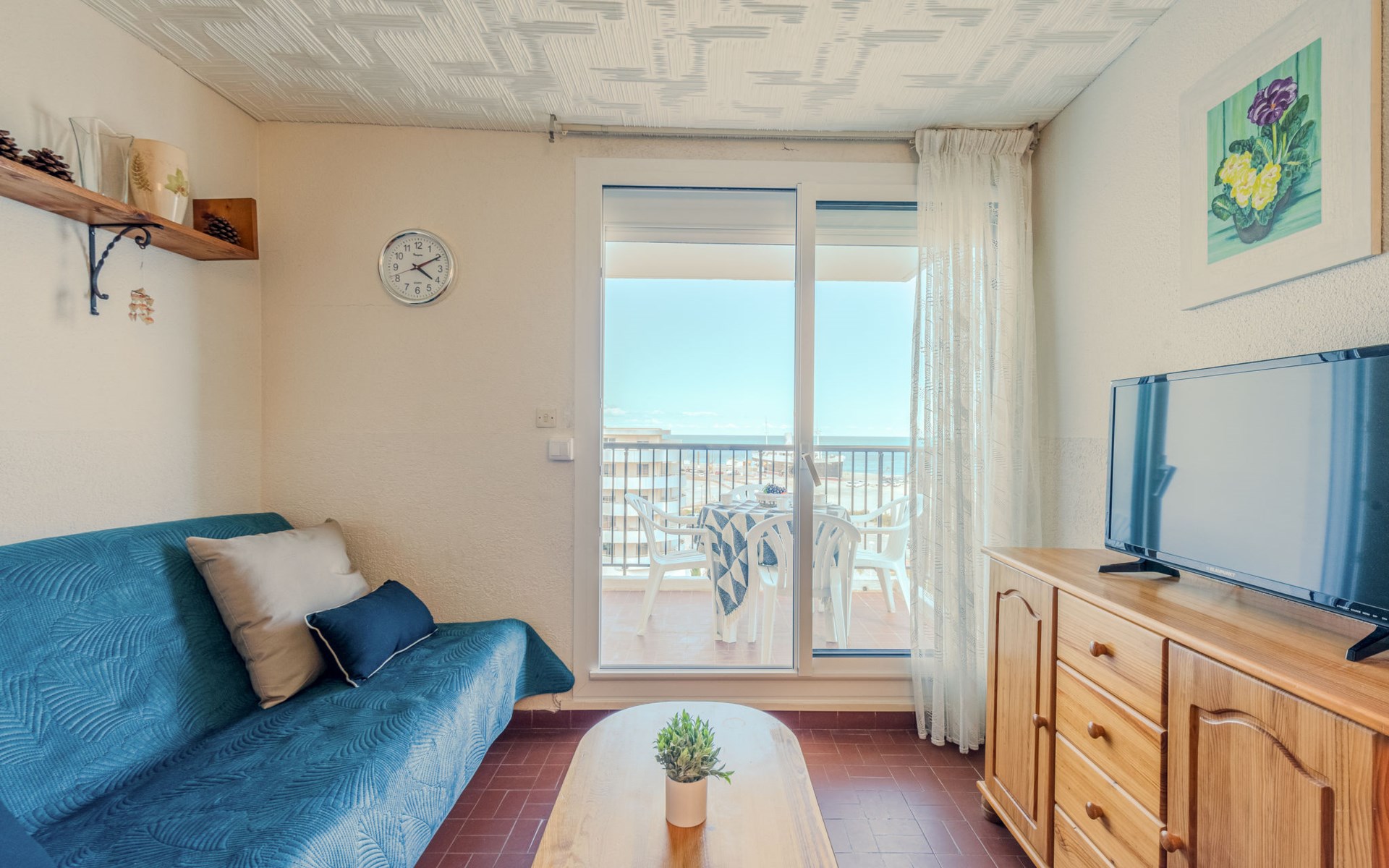 Residence "Le Grand Pavois", 6 storeys. In the district of la Grande Plage, 250 m from the sea, 100 m from the beach. In the complex: lift. Parking space n 123. Shop 1 km, supermarket 5 km, restaurant 1 km, bakery 1 km, café 500 m, bicycle rental 3 km, bus stop "Roussillon" 550 m, railway station "La Franqui" 20 km, sandy beach "le barcares" 100 m, diving center 5 km, outdoor swimming pool 7 km, nudist beach 10 km. Sailing school 3 km, tennis 3 km, minigolf 3 km, riding stable 12 km, cycle lane 6 km. Nearby attractions: Aqualand Port Leucate 7 km, Réserve Africaine de Sigean 41 km, Forteresse de Salses 20 km, Narbonne 55 km, Perpignan 25 km, Barcelone 215 km. Well-known lakes can easily be reached: Etang de Leucate ou de Salses 7 km, Lac de Villeneuve de la Raho 28 km. Hiking paths: Sentier du guetteur 8 km, Station meteorologique de Opoul Perillos 25 km, Sentier du littoral Collioure 40 km. Please note: car recommended. The keys‘ handover takes place by the agency Interhome in Barcarès, 2 km. Motorway 18 km from the property. Airfield 20 km from the property.