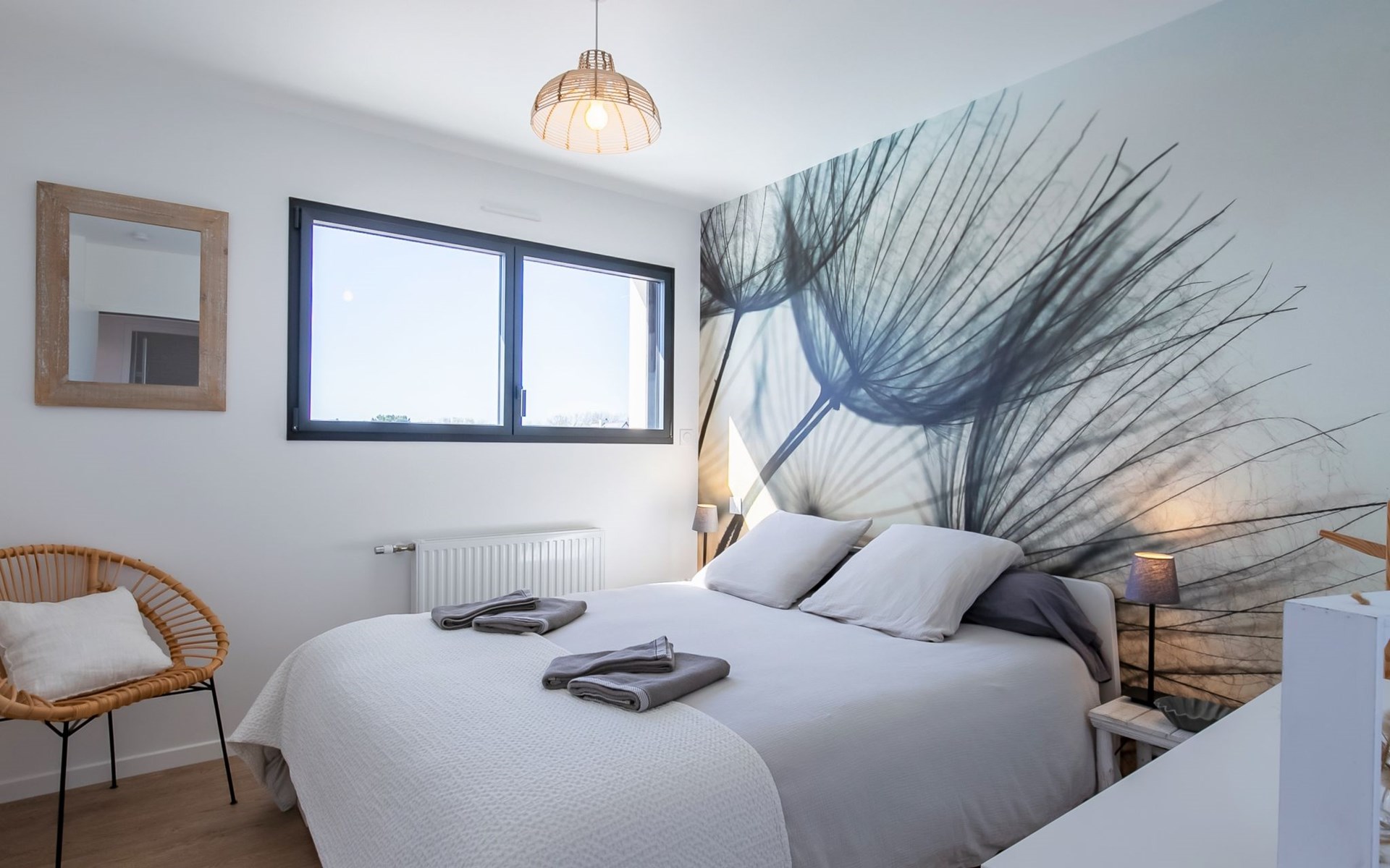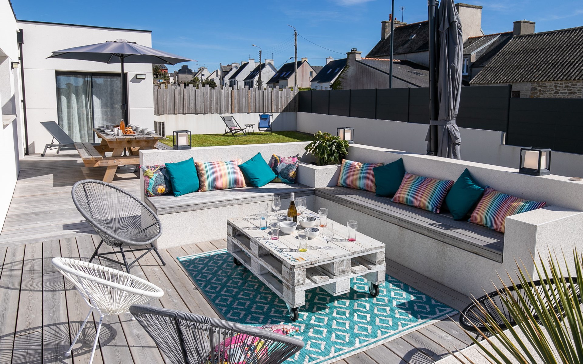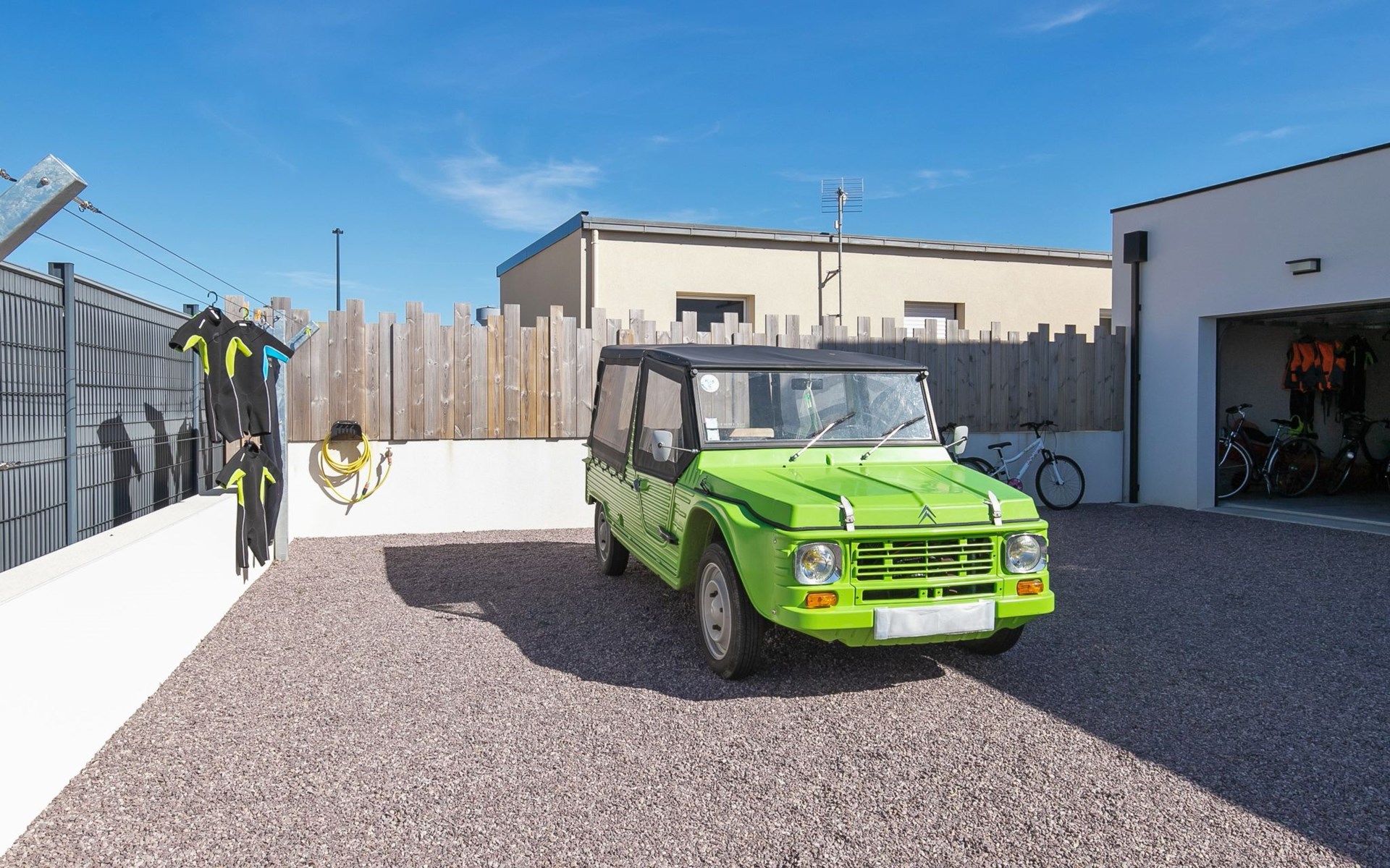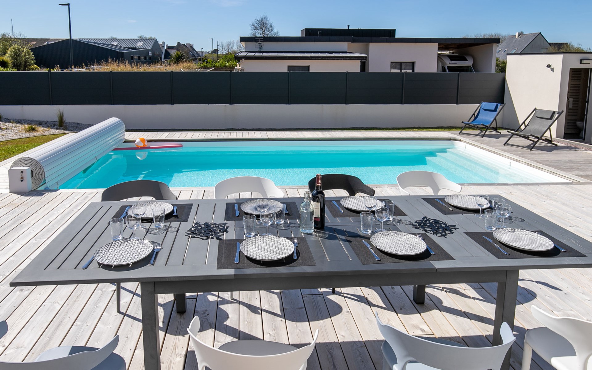 Very modern, beautiful, comfortable single-family house "Au Gré du Vent", built in 2022. 200 m from the centre of Brignogan-Plage, 11 km from the centre of Lesneven, in the residential district, 300 m from the sea, 300 m from the beach, south-west facing position. Private: property 800 m2 (fenced), well-kept garden with lawn and wildlife garden, swimming pool angular, heated, with privacy (8 x 4 m, 32 m2, depth 150 cm, seasonal availability: 20.May. - 28.Sep.) with shutter cover. WC in the pool area, outdoor shower, pool maintenance by the owner/gardener. Parking (for 4 cars) on the premises, single garage. Shop 11 km, grocery 550 m, supermarket 500 m, shopping centre 13 km, restaurant 650 m, bakery 3 km, café 500 m, bus stop "Centre" 400 m, sandy beach "Plage de sable fin" 300 m. Golf course (18 hole) 35 km, surf school, sailing school 600 m, tennis 1.5 km, walking paths from the house 300 m. Nearby attractions: Meneham, Kerlouan 5 km, Dunes de Keremma, Réserve ornithologique 10 km, Plouguerneau, Pays des Abers 2 km, Roscoff, Jardin exotique, Île de Batz 36 km, Château de Kerjean 25 km, Brest, Océanopolis 40 km. Hiking paths: GR34, sentier des douaniers 300 m. Please note: airfield 34 km from the property.