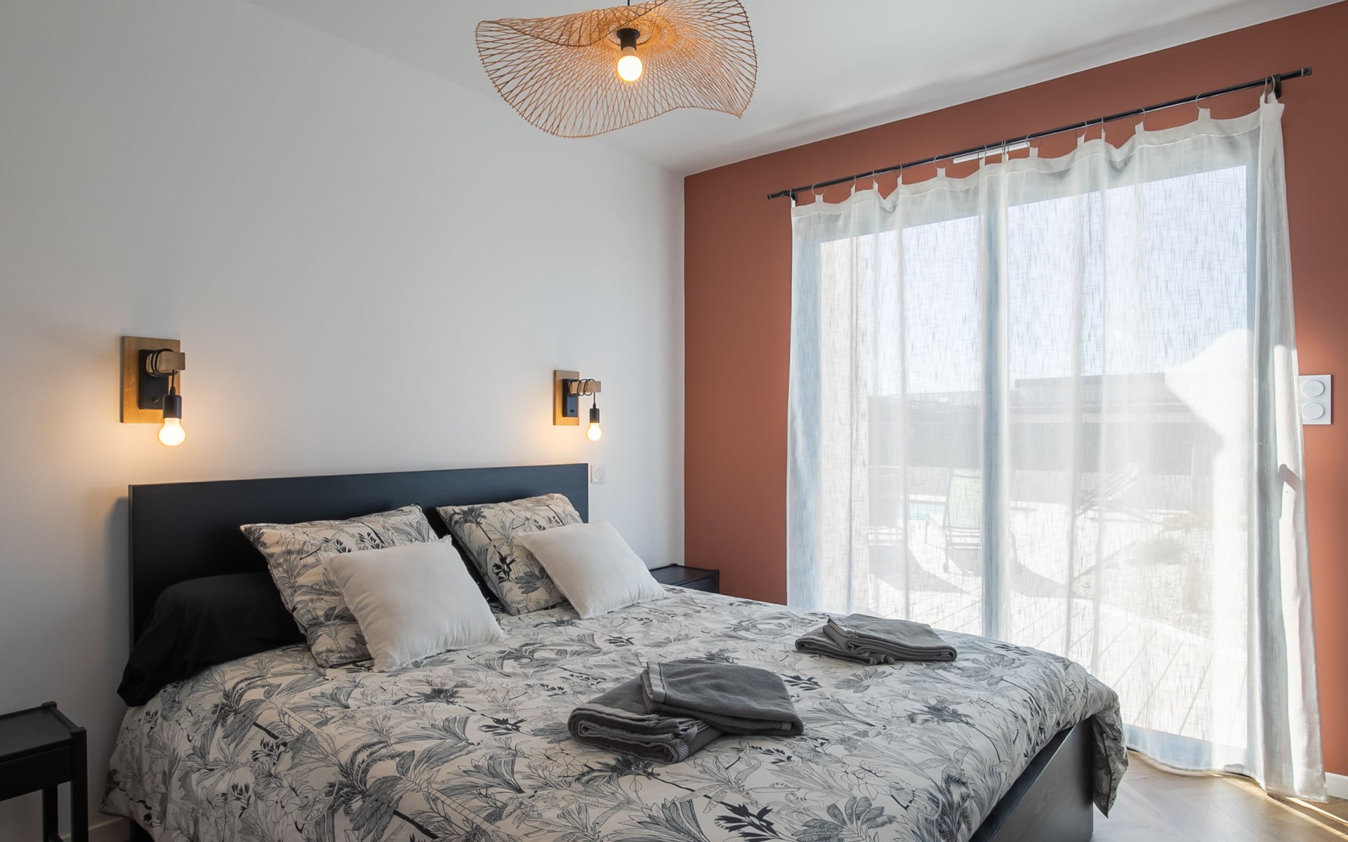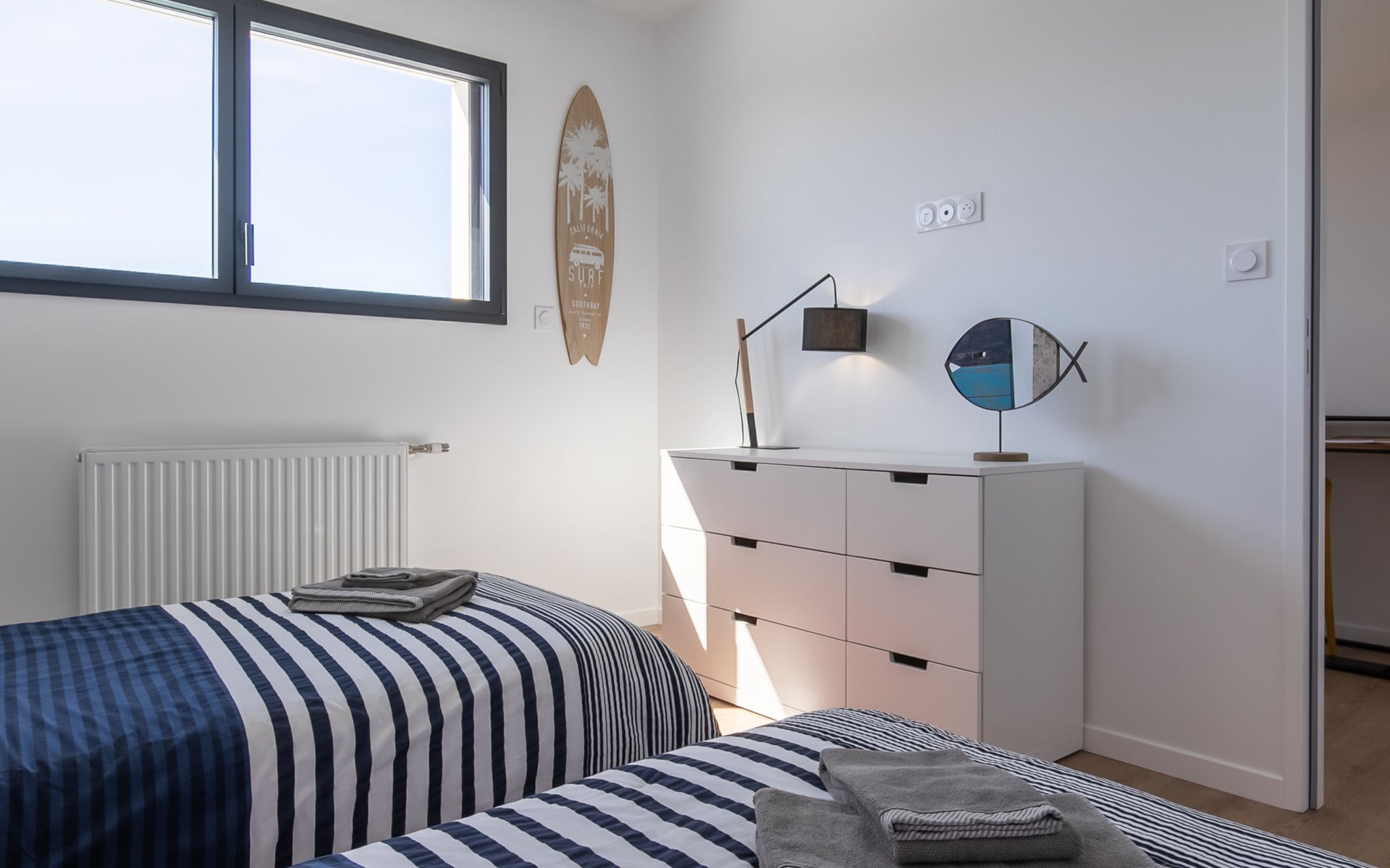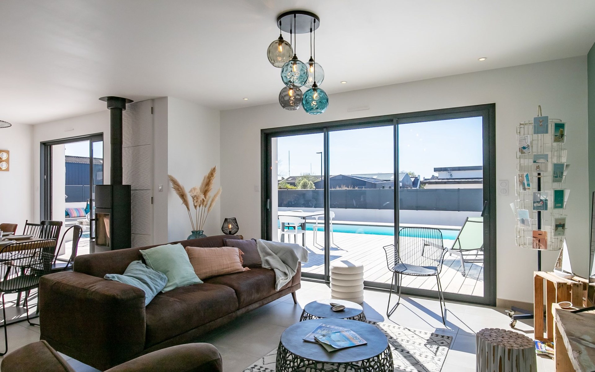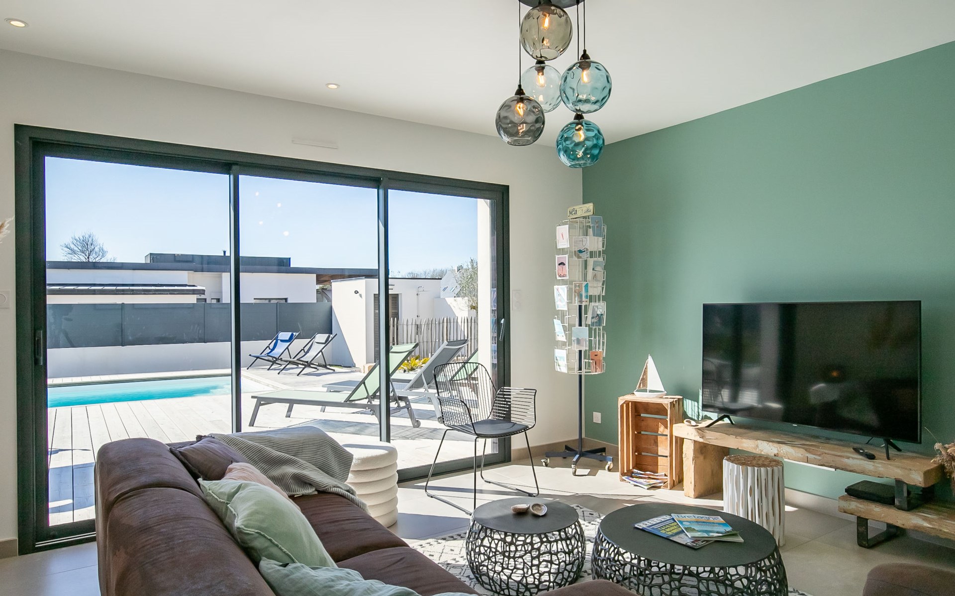 Very modern, beautiful, comfortable single-family house "Au Gré du Vent", built in 2022. 200 m from the centre of Brignogan-Plage, 11 km from the centre of Lesneven, in the residential district, 300 m from the sea, 300 m from the beach, south-west facing position. Private: property 800 m2 (fenced), well-kept garden with lawn and wildlife garden, swimming pool angular, heated, with privacy (8 x 4 m, 32 m2, depth 150 cm, seasonal availability: 20.May. - 28.Sep.) with shutter cover. WC in the pool area, outdoor shower, pool maintenance by the owner/gardener. Parking (for 4 cars) on the premises, single garage. Shop 11 km, grocery 550 m, supermarket 500 m, shopping centre 13 km, restaurant 650 m, bakery 3 km, café 500 m, bus stop "Centre" 400 m, sandy beach "Plage de sable fin" 300 m. Golf course (18 hole) 35 km, surf school, sailing school 600 m, tennis 1.5 km, walking paths from the house 300 m. Nearby attractions: Meneham, Kerlouan 5 km, Dunes de Keremma, Réserve ornithologique 10 km, Plouguerneau, Pays des Abers 2 km, Roscoff, Jardin exotique, Île de Batz 36 km, Château de Kerjean 25 km, Brest, Océanopolis 40 km. Hiking paths: GR34, sentier des douaniers 300 m. Please note: airfield 34 km from the property.
