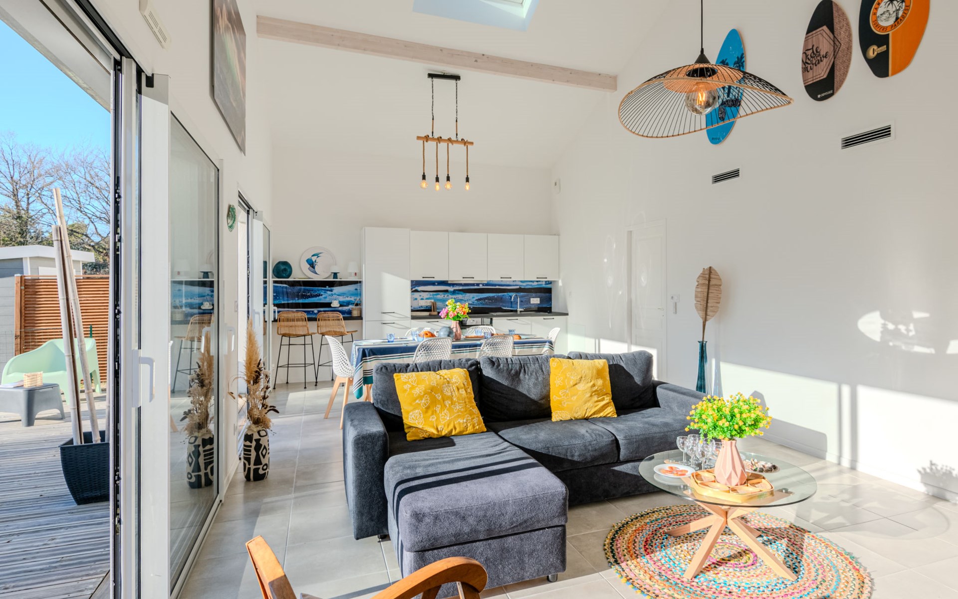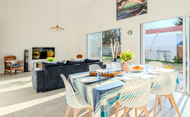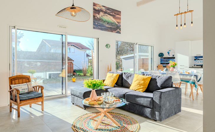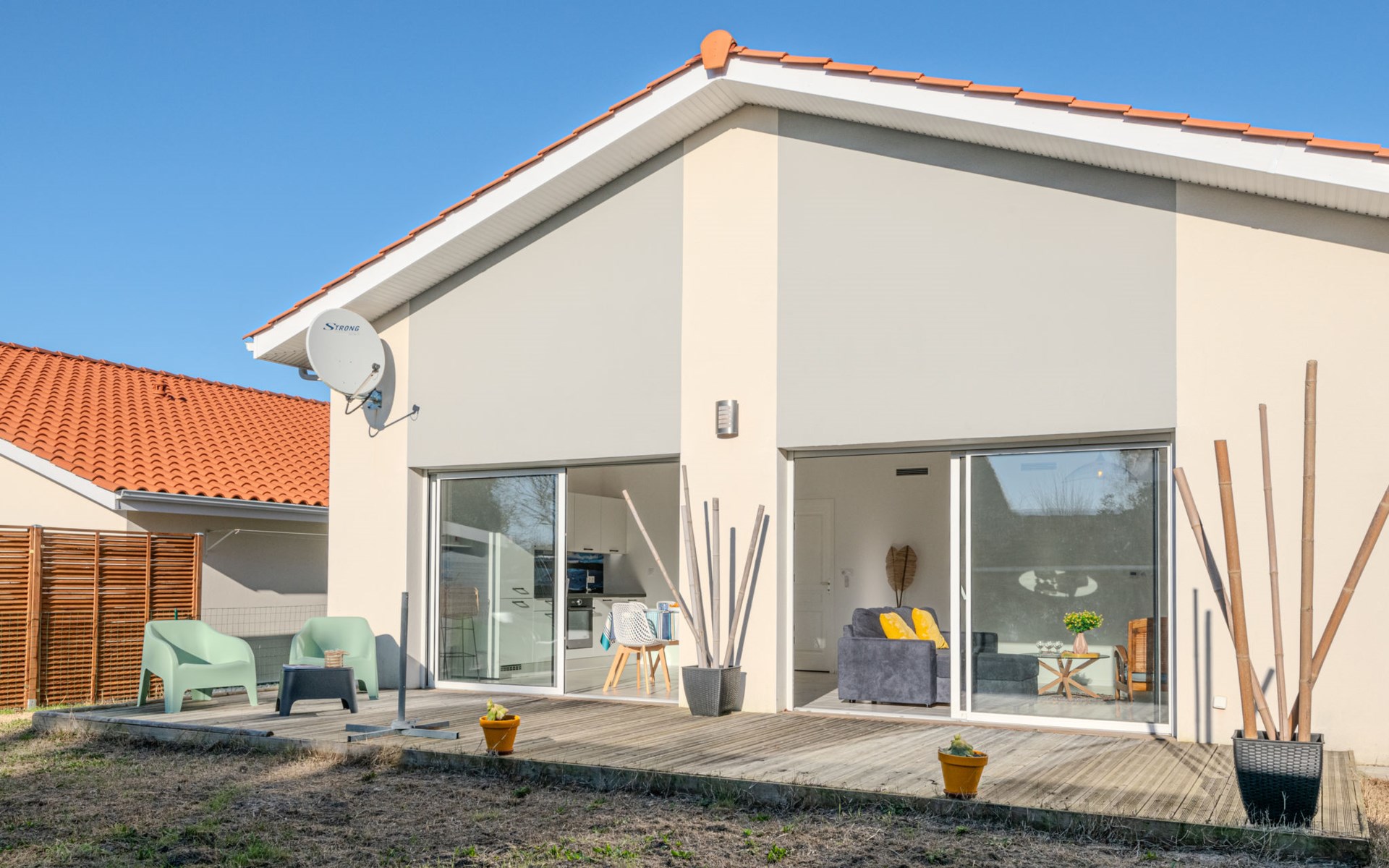 Aureilhan 9 km from Mimizan Plage: Single-family house "Domaine de Peyroutic". In the resort 100 m from the centre of Aureilhan, 200 m from the edge of the forest, 10 km from the sea, 500 m from the lake, 10 km from the beach. Private: property 200 m2 (fenced), parking at the house. Shop 1 km, grocery 900 m, shopping centre 1 km, restaurant 1.5 km, bakery 300 m, pedestrian zone 2 km, bicycle rental 2 km, bus stop 1 km, railway station "Labouheyre" 26 km, sandy beach "Mimizan" 10 km, park "Landes aventures" 5 km, bathing lake "Plage du Lac" 600 m. Golf course (9 hole) 8 km, surf school 10 km, sailing school 6 km, tennis 8 km, riding stable 200 m, cycle lane 500 m. Nearby attractions: Arcachon 65 km, Biscarrosse 30 km, Dune du pilat 70 km, Aire de jeux 900 m. Well-known lakes can easily be reached: et sa plage surveillée Aureilhan 600 m.