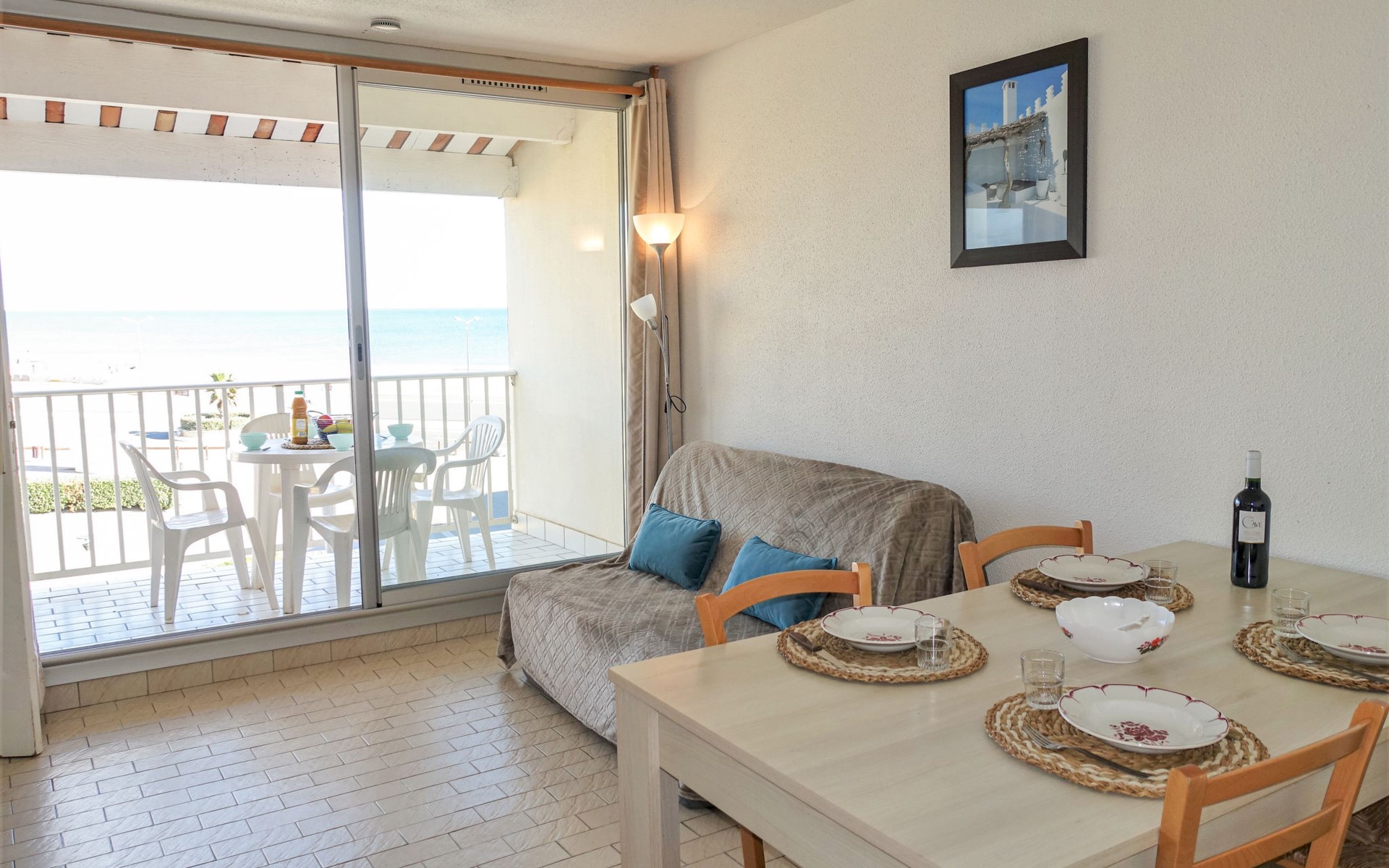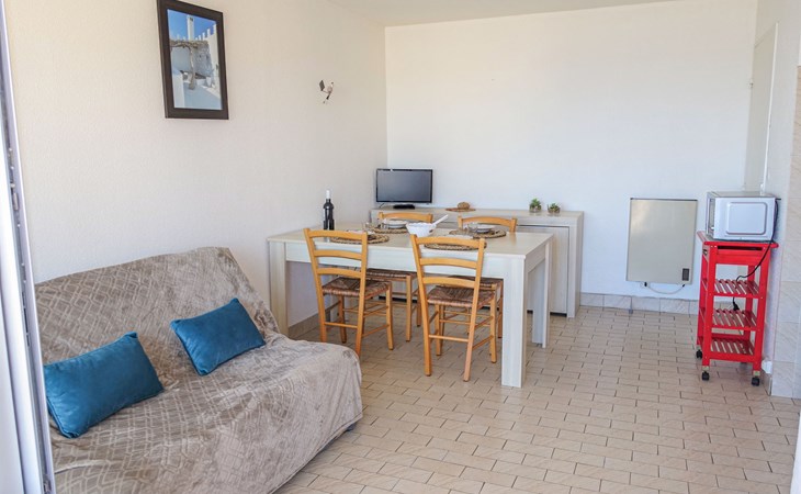 Residence "Les Balcons de la Méditerranée". 600 m from the centre of Narbonne-Plage, 100 m from the sea, road to cross. Public parking. Shop, restaurant, bar 600 m, bus stop 200 m, diving center 2 km. Sports harbour 2 km, sailing school 2 km, riding stable 5 km. Nearby attractions: Réserve Africaine de Sigean 33 km, Cité de Carcassonne 73 km, Espace balnéoludique de Gruissan 6 km. Please note: the photograph shows a typical example. Additional accommodations can be booked. Some apartments are situated on the "beach" side and some of them are on the street-side (through road "Avenue de Languedoc"). Others are inside the residence.