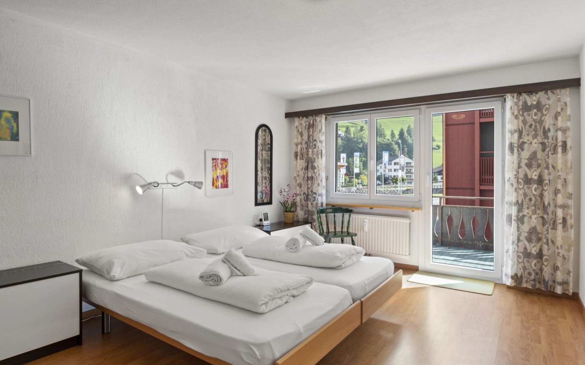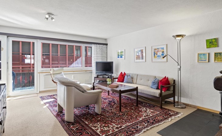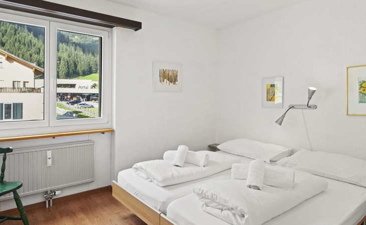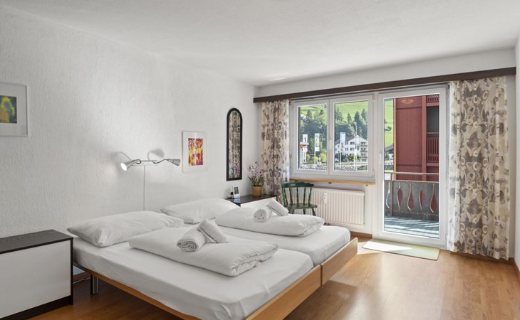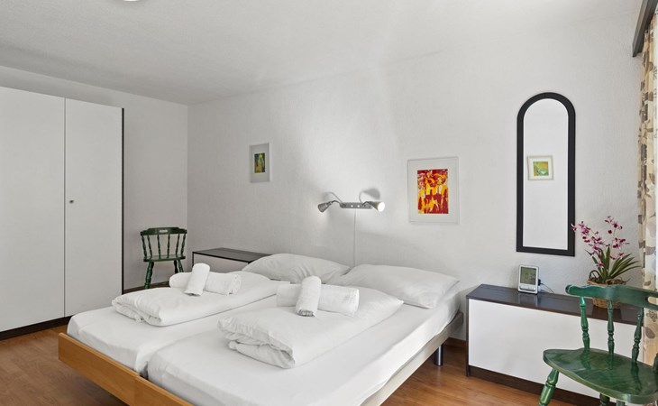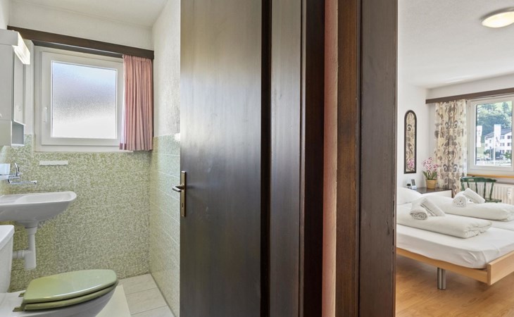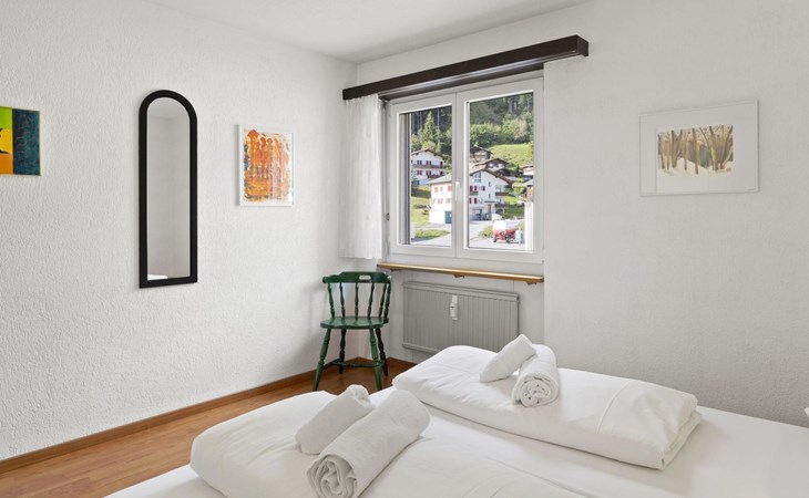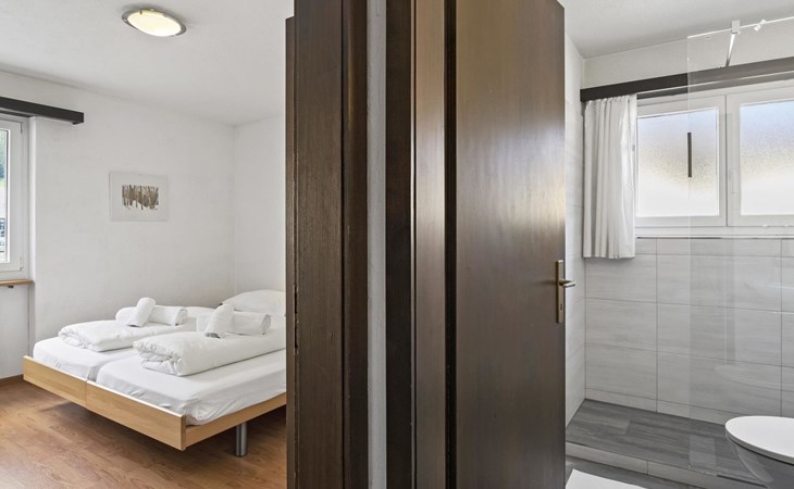 1st floor / Lift / Wifi yes / 2 rooms with double beds / 1 bathroom with WC and shower / 1 separate WC The shopping facilities Coop and Migros, as well as the sports shop and the mountain railways are in the immediate vicinity. In summer, the heated outdoor swimming pool is only a few steps away from the house. (In the same house as the holiday flats Zondler and Seeli)
