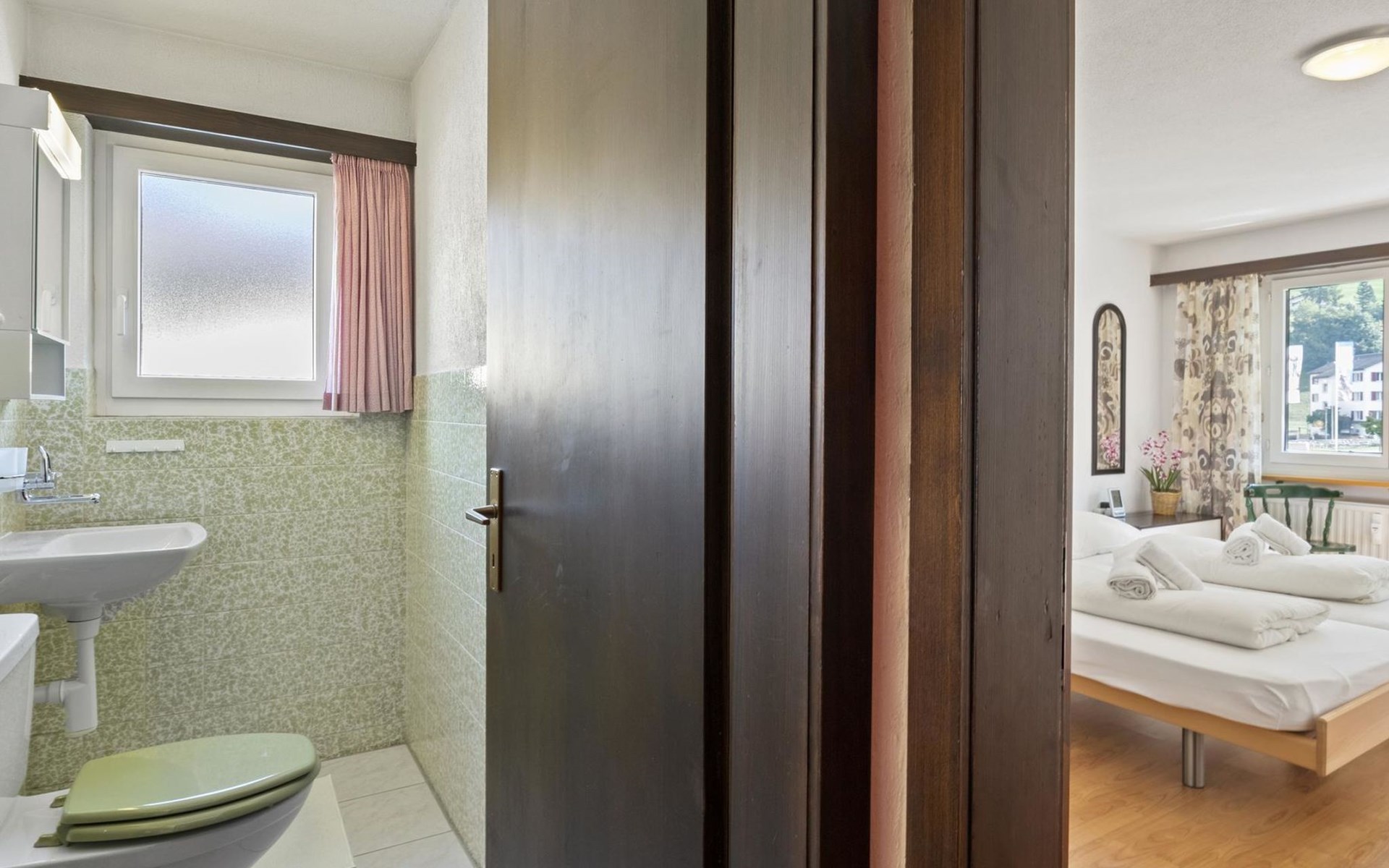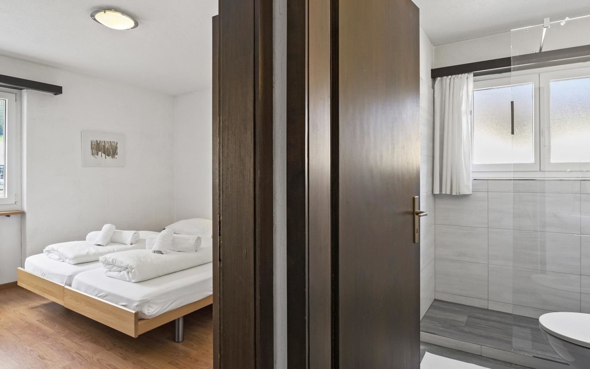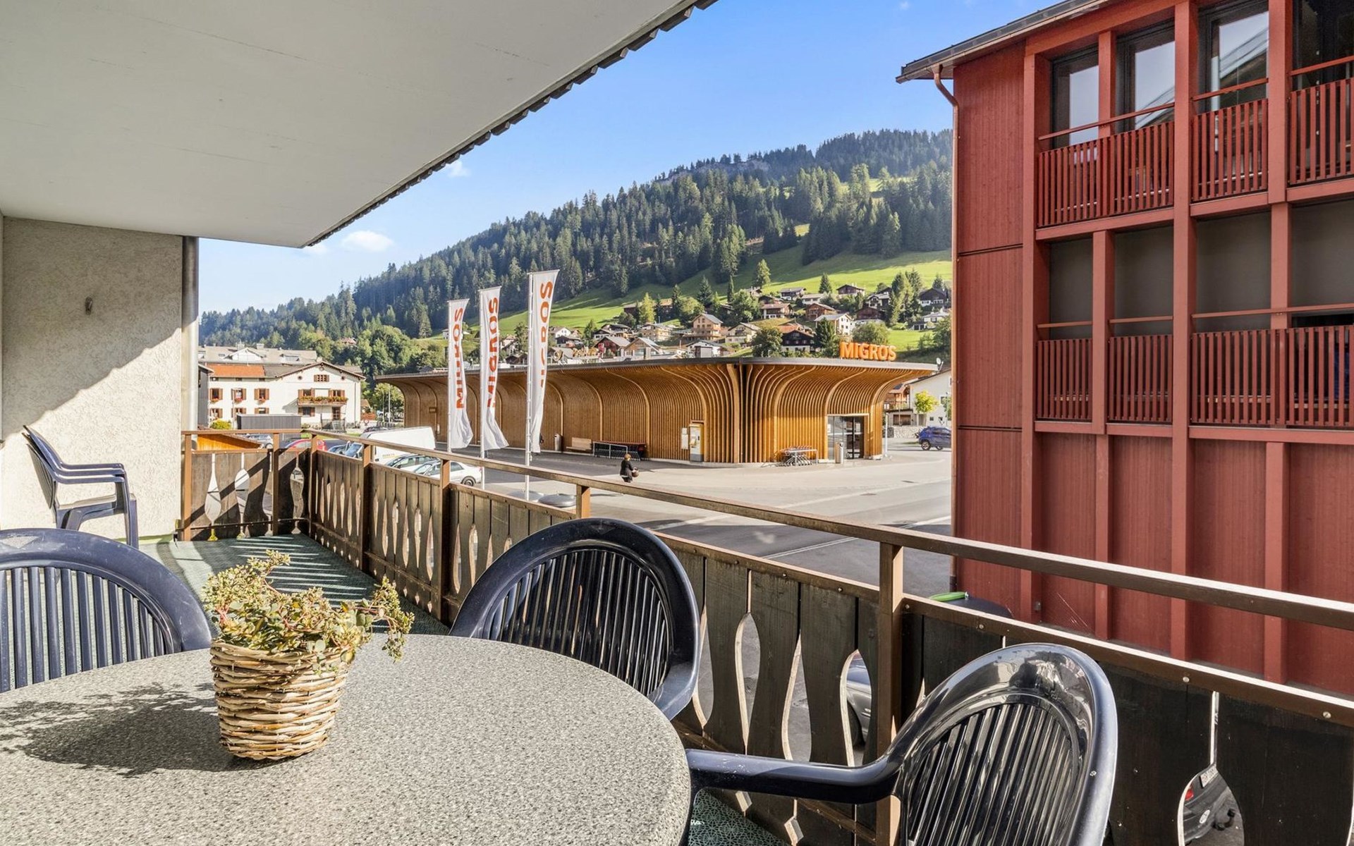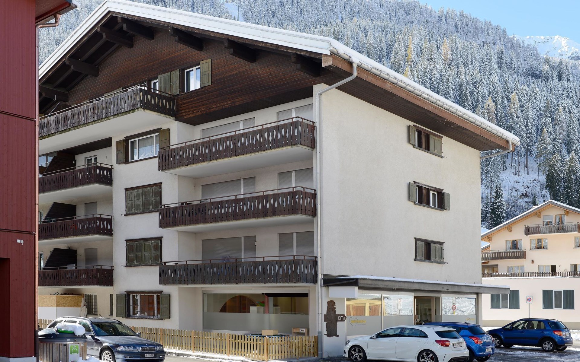 1st floor / Lift / Wifi yes / 2 rooms with double beds / 1 bathroom with WC and shower / 1 separate WC The shopping facilities Coop and Migros, as well as the sports shop and the mountain railways are in the immediate vicinity. In summer, the heated outdoor swimming pool is only a few steps away from the house. (In the same house as the holiday flats Zondler and Seeli)