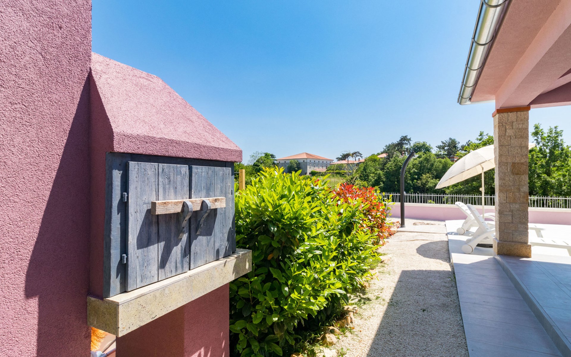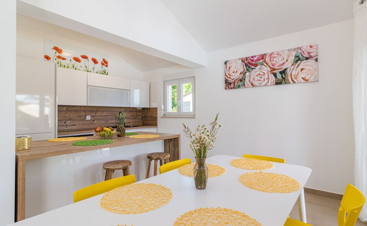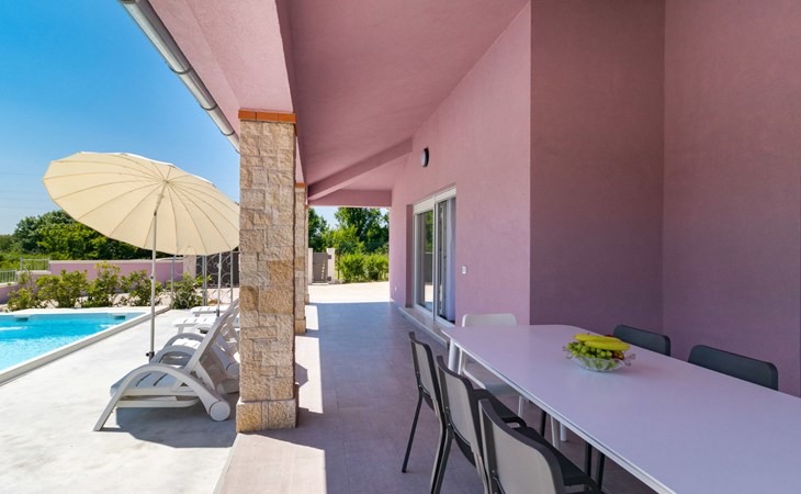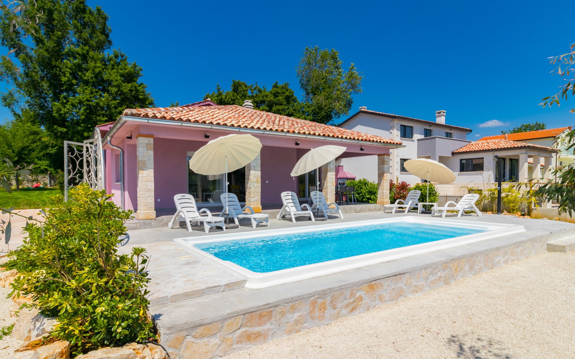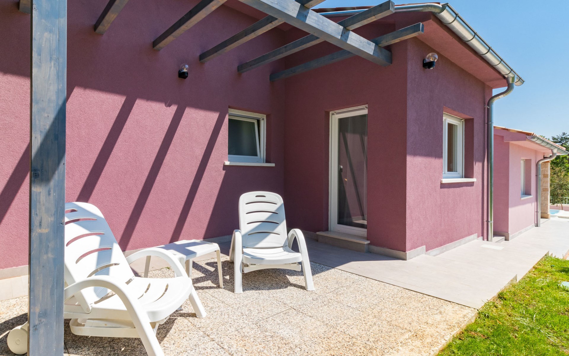 Single-family house "Mario". 200 m from the centre of Svetvinčenat, in a sunny position, 23 km from the sea. Private: property 550 m2 (fenced), swimming pool angular, heated (7 x 3 m, depth 140 cm, seasonal availability: 01.Apr. - 28.Oct.) with internal staircase. Outdoor shower, terrace, garden furniture, barbecue, pool maintenance by the owner/gardener. Motor access to the house (100 m via unmade road). Parking (for 3 cars) at the house on the premises. Shop 150 m, supermarket 7 km, restaurant, café 200 m, bus stop 300 m, pebble beach 23 km. Please note: airfield 32 km from the property. Swimming pool heated (extra). It is necessary to announce 7 days in advance if the pool heating is required.