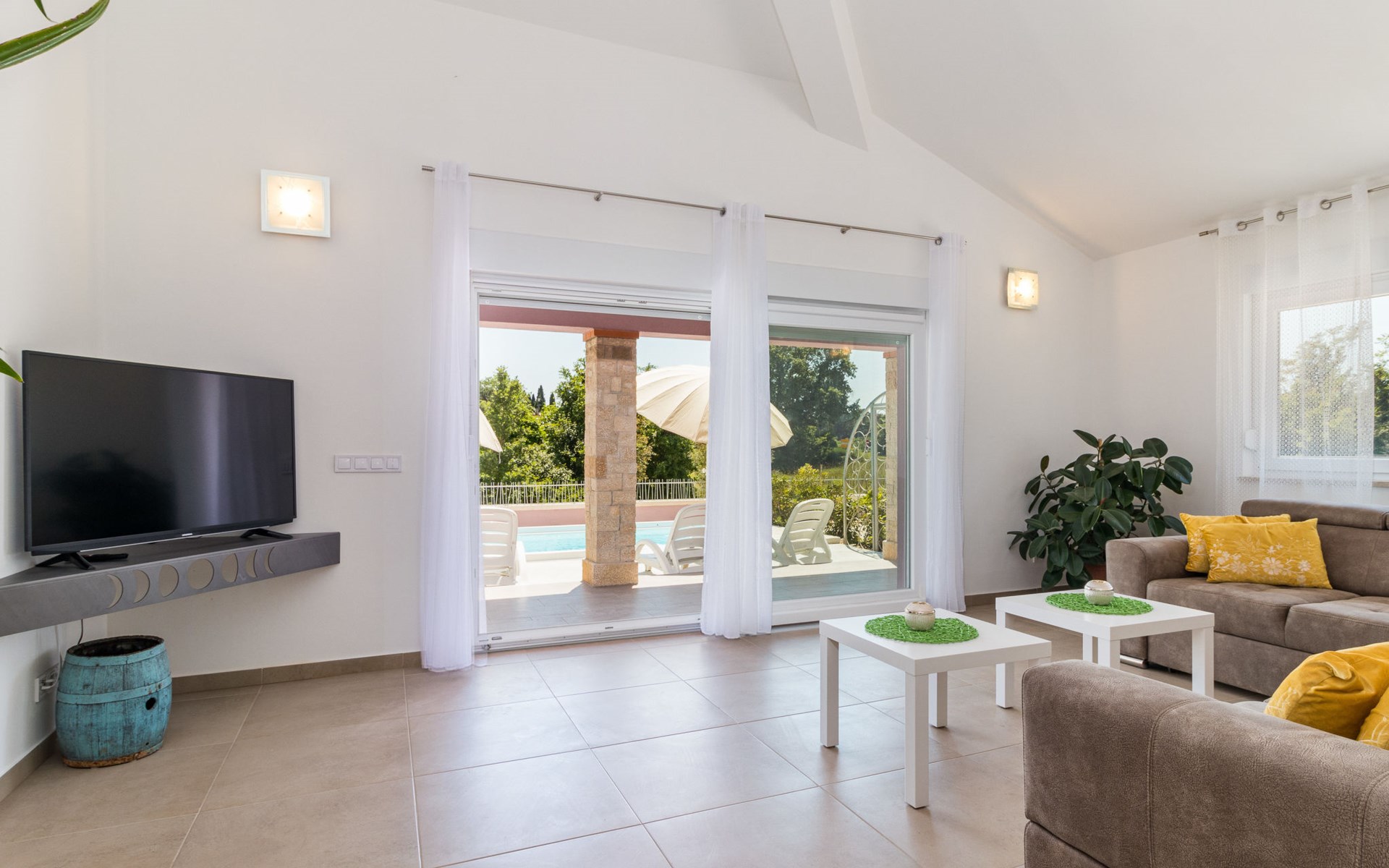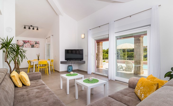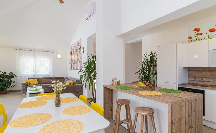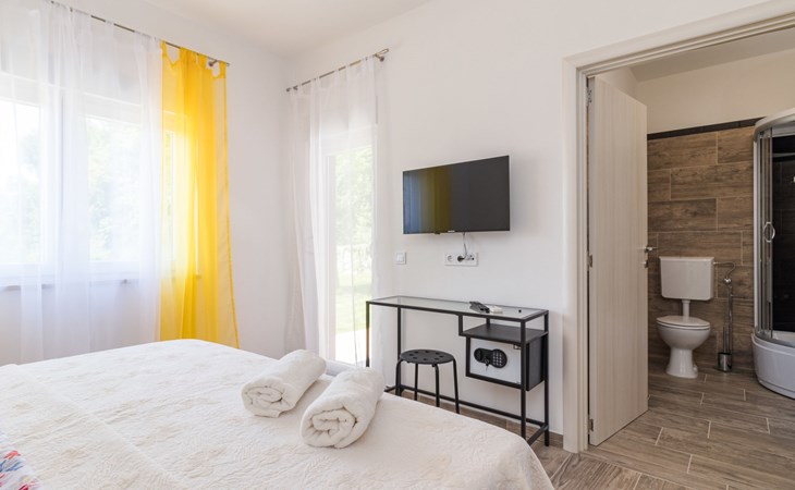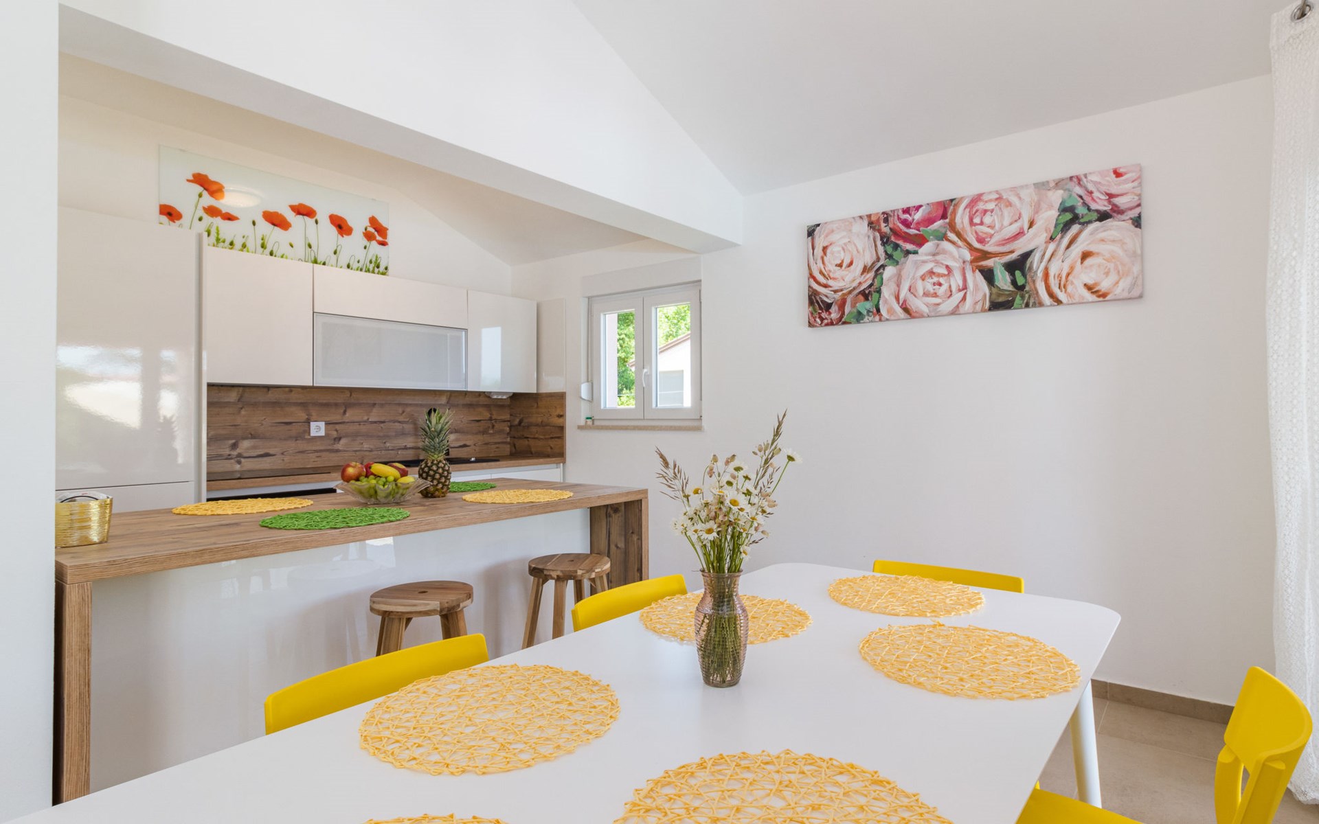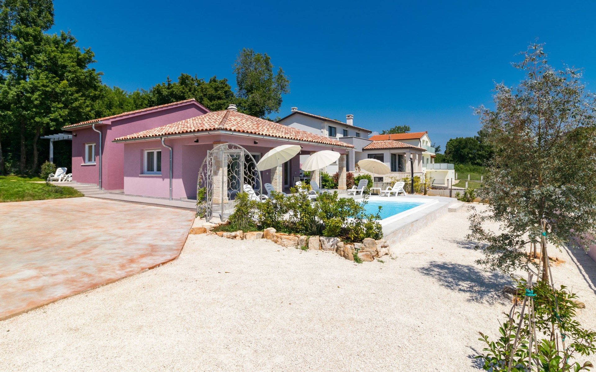 Single-family house "Mario". 200 m from the centre of Svetvinčenat, in a sunny position, 23 km from the sea. Private: property 550 m2 (fenced), swimming pool angular, heated (7 x 3 m, depth 140 cm, seasonal availability: 01.Apr. - 28.Oct.) with internal staircase. Outdoor shower, terrace, garden furniture, barbecue, pool maintenance by the owner/gardener. Motor access to the house (100 m via unmade road). Parking (for 3 cars) at the house on the premises. Shop 150 m, supermarket 7 km, restaurant, café 200 m, bus stop 300 m, pebble beach 23 km. Please note: airfield 32 km from the property. Swimming pool heated (extra). It is necessary to announce 7 days in advance if the pool heating is required.