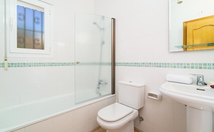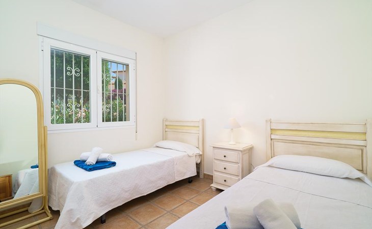 The house has 2 bedrooms and 2 bathrooms. The accommodation offers privacy, a beautiful lawned garden with gravel and trees, and a lovely heated pool. Its comfort and the proximity to the beach, sports activities, entertainment facilities, sights, and culture make this a fine villa to spend your holidays in Spain with family or friends.