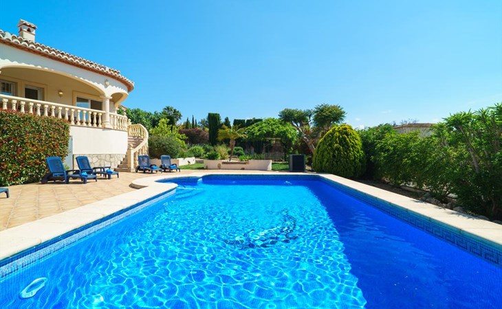 Large and lovely villa in Javea, Costa Blanca, Spain with heated pool for 4 people. The house is situated in a residential beach area.