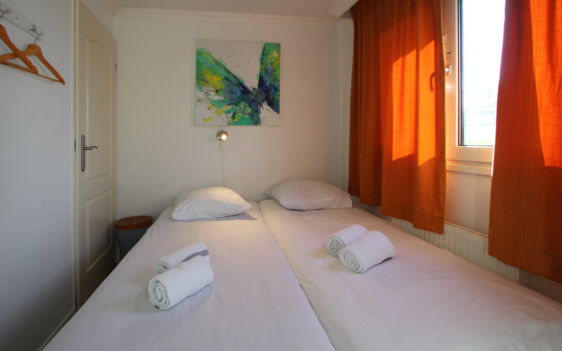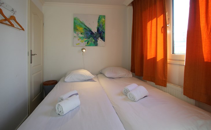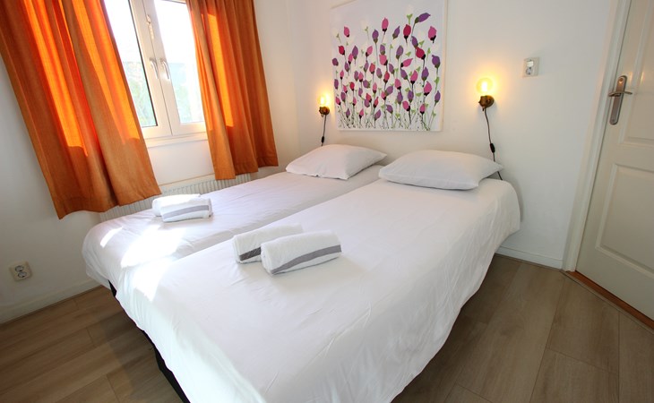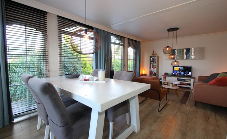 Exclusif 4 is known as a cosy chalet with all the facilities you need. This detached chalet is on the ground floor and suitable for 4 persons. The living room is furnished with a dining table with chairs, a sitting area with television and a kitchen with a dishwasher, coffee maker and microwave. There are 2 bedrooms, both with 2 single beds. In the bathroom you will find a shower, sink and toilet. The chalet has a garden with a terrace and garden furniture. Free Wi-Fi is available and you can park 1 car near Exclusif 4.