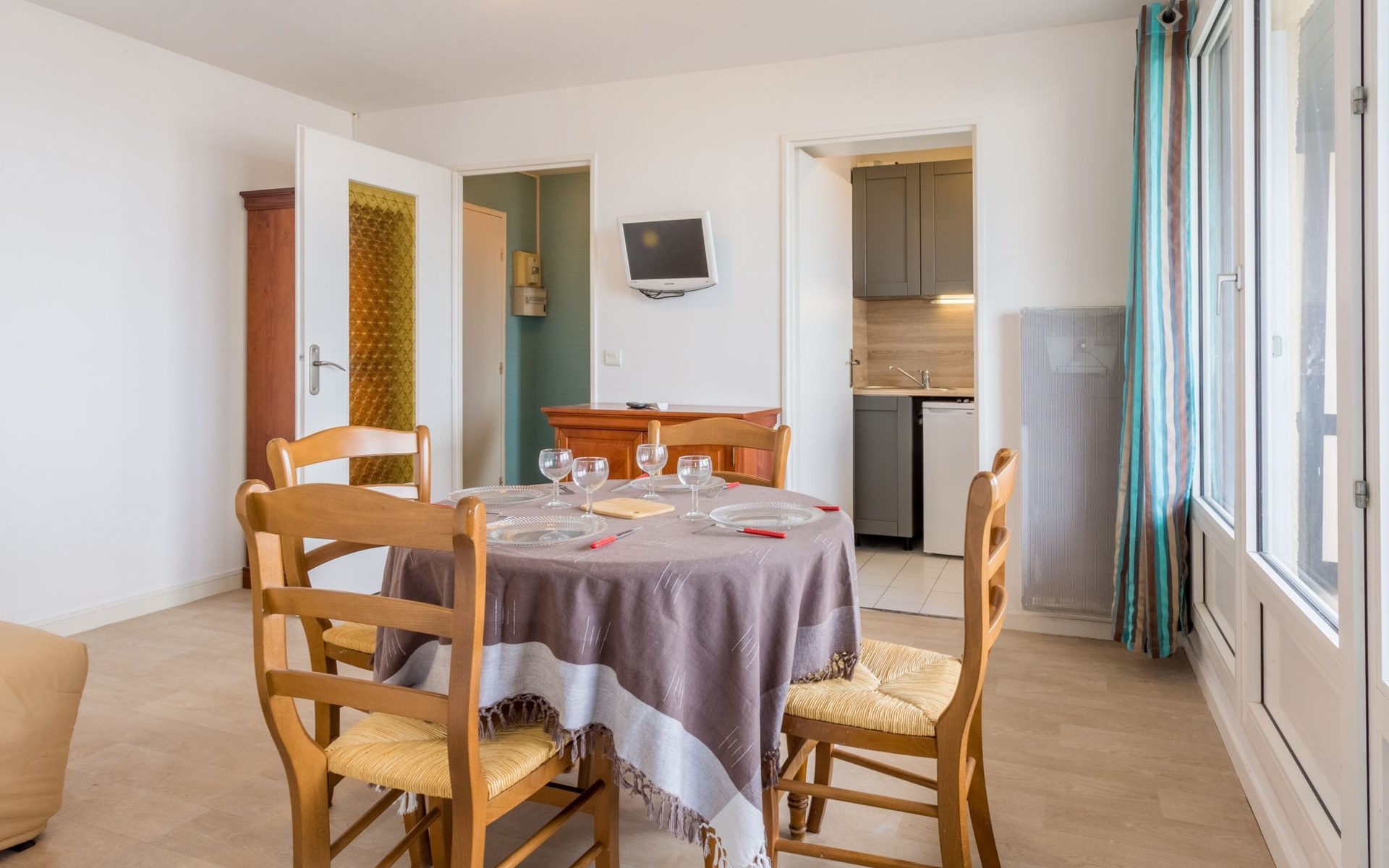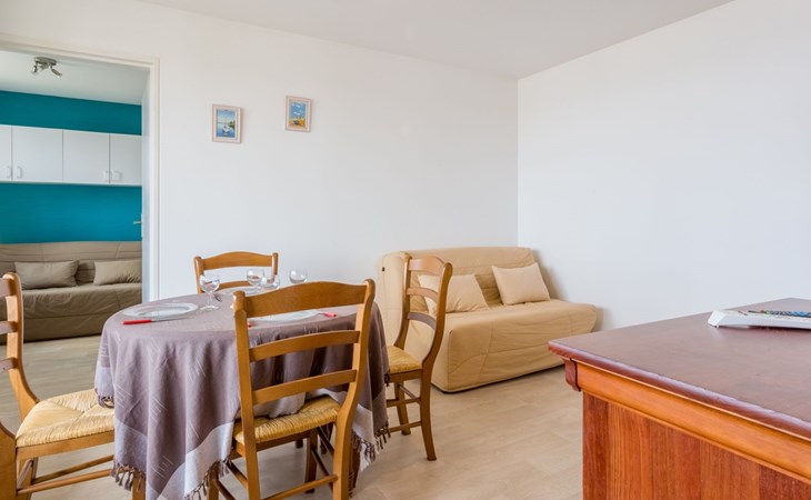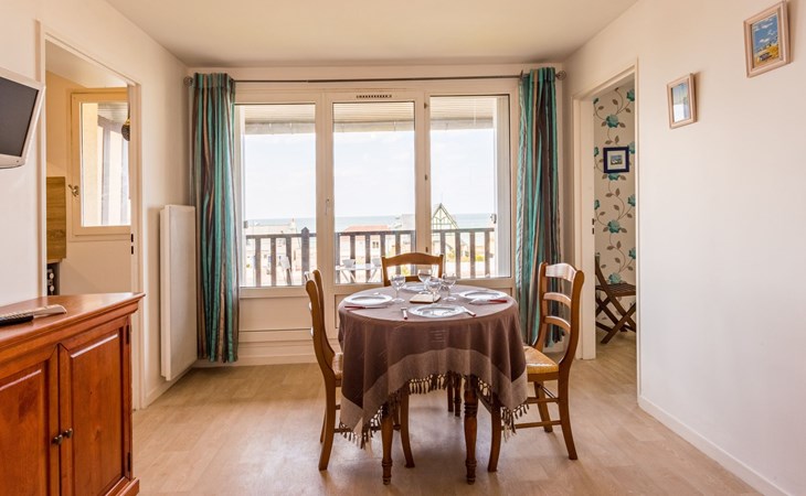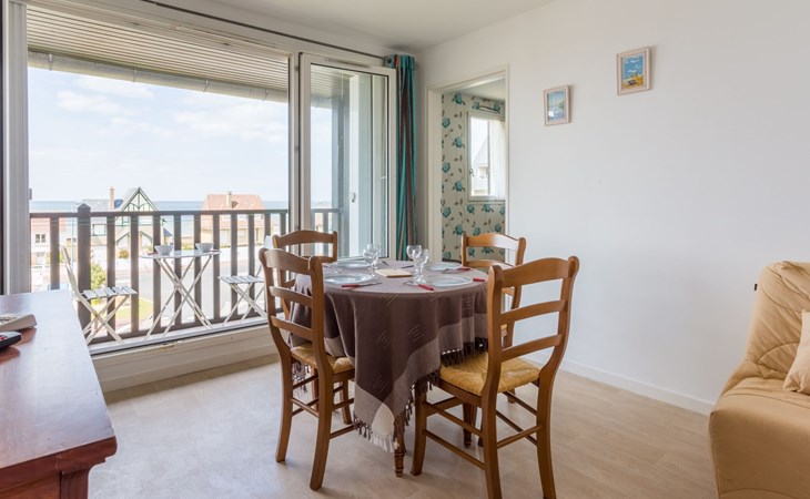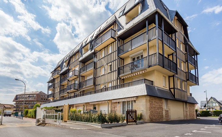 Residence "les Colombières", 5 storeys. In the district of Villers 2000, in the resort 1.3 km from the centre of Villers-sur-Mer, 50 m from the sea, 50 m from the beach, road to cross. In the complex: lift. Parking space n 31. Shop, grocery, shopping centre, restaurant 50 m, bus stop "Eglise" 1.5 km, thermal baths "Thalasso de Deauville" 15 km. Golf course (18 hole) 6 km, tennis 500 m. The keys‘ handover takes place by the agency Interhome in Cabourg, 12 km. Note: WIFI not available.