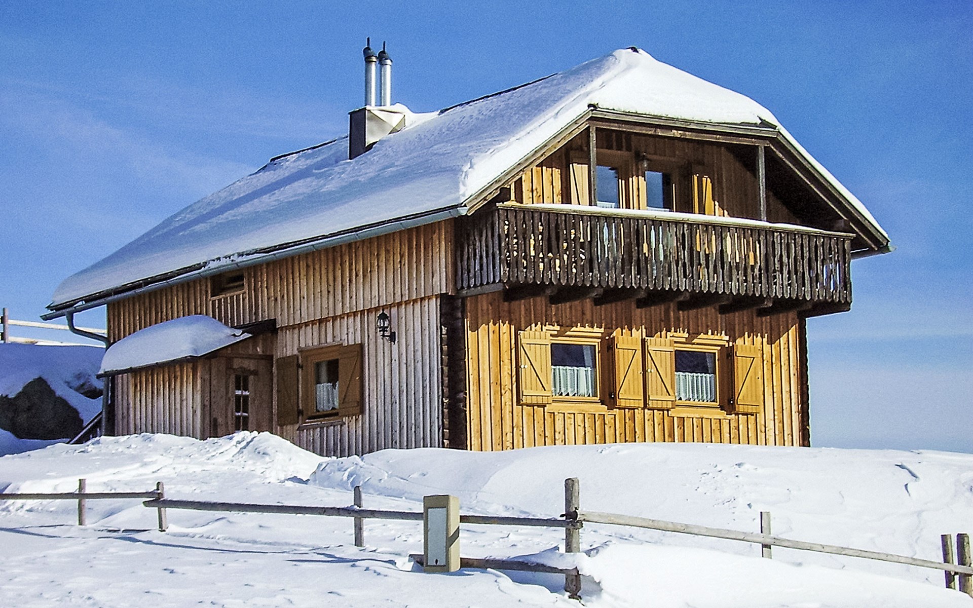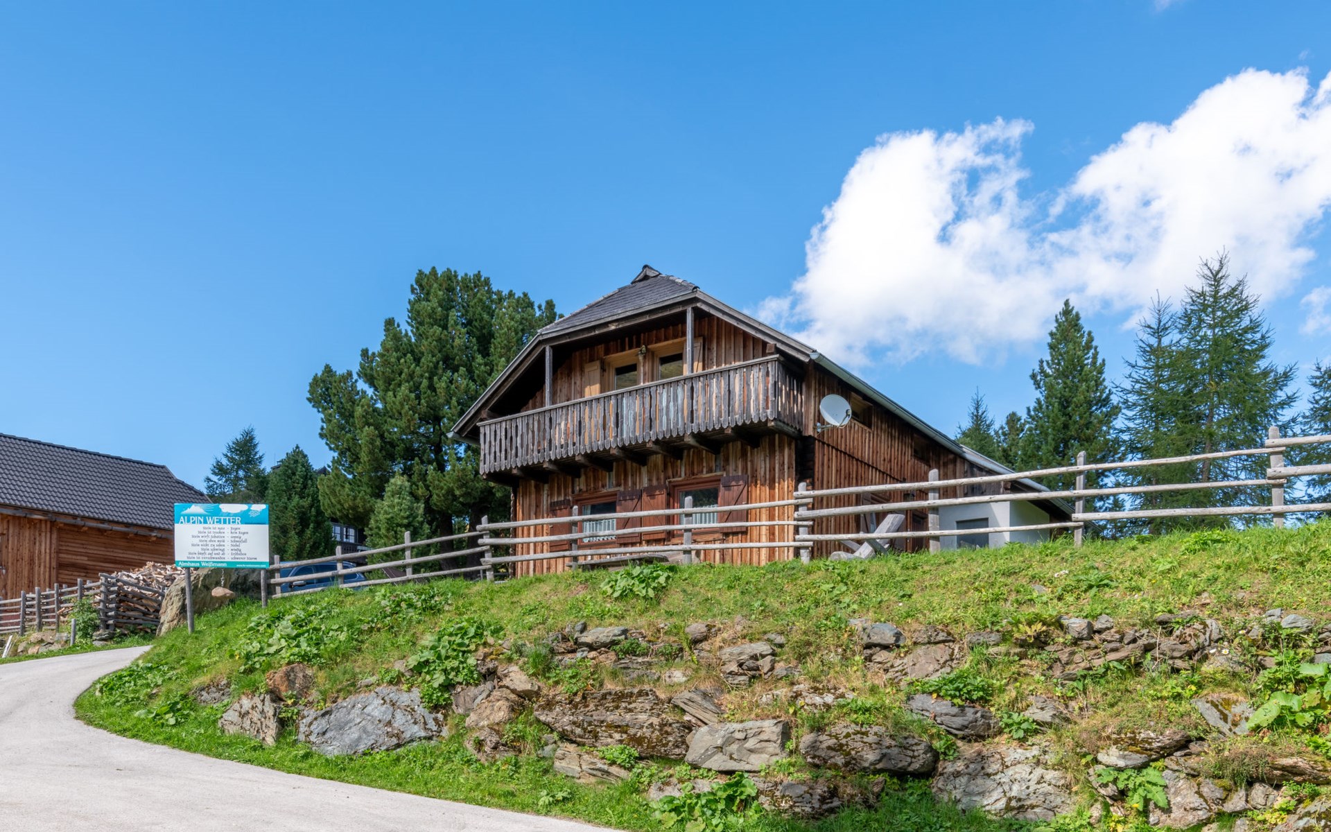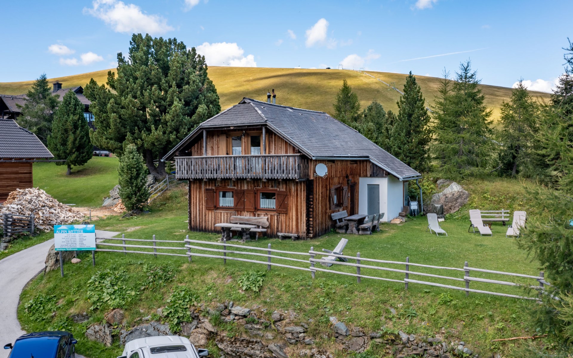 Falkertalm 9 km from Bad Kleinkirchheim: Cosy, comfortable cottage "Weissmann", 1'860 m a.s.l., 2 storeys. In a central, quiet, sunny position, 100 m from the lake, directly by the skiing area, in the countryside. Private: property 1'000 m2, garden, lawn for sunbathing. Terrace. In the house: central heating system. Motor access to the house. In Winter: please take snow chains. Parking at the house. Restaurant 400 m, bus stop "Ebene Reichenau Vorwald Mitte" 7.8 km, bathing lake 100 m. Golf course (18 hole) 4 km, mountain railway, ski lift 400 m, skisport facilities 12 km, cross country ski track 300 m, ice rink 200 m. Well-known ski regions can easily be reached: Bad Kleinkirchheim 12 km. The house heating is generated by a pellet boiler.