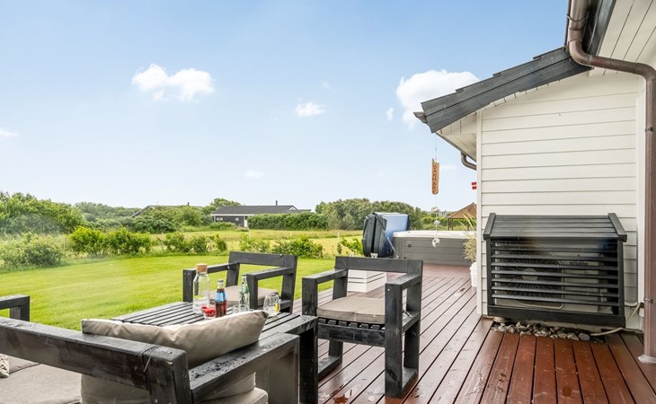 Single-family house, built in 2009. 2 km from the sea. Private: natural state property 900 m2. Outdoor shower, terrace (100 m2), barbecue. In the house: sauna, washing machine, tumble dryer. Parking at the house. E-charging station. Grocery 990 m. The owner does not accept any youth groups.