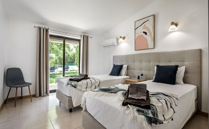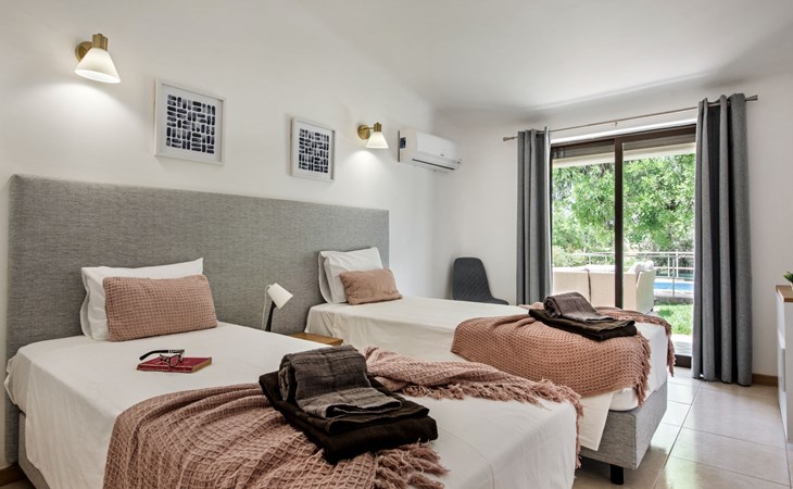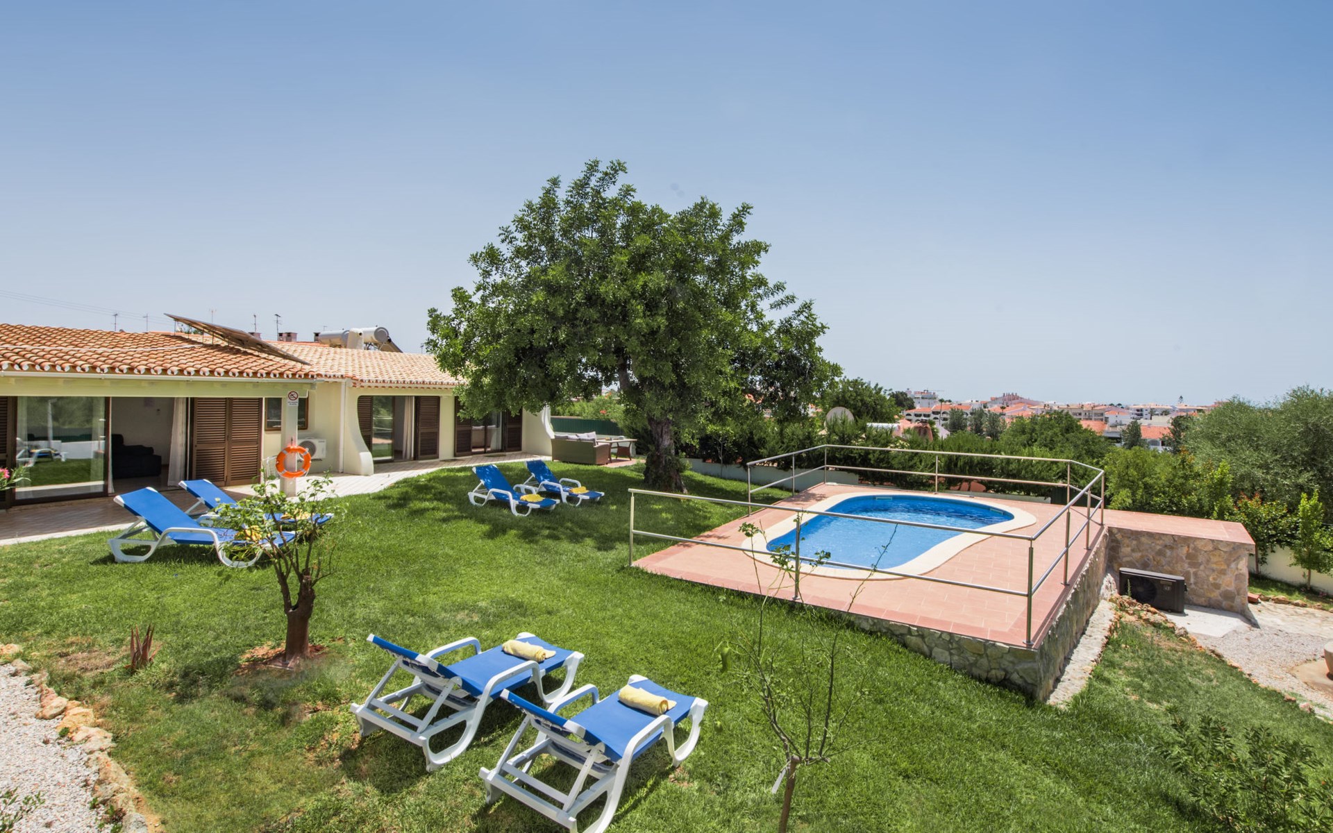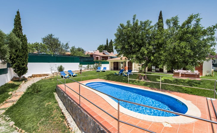 Cosy, comfortable villa "Jenny - VIP Properties". Outside the resort, 2.2 km from the centre of Albufeira, residential area (villas), 1.8 km from the sea. Private: swimming pool angular (4 x 8 m, depth 90 - 180 cm, seasonal availability: 01.Jan. - 31.Dec.). In the house: WiFi, air conditioning, washing machine. Parking at the house. Shop 350 m, grocery 650 m, supermarket 350 m, shopping centre 1.4 km, restaurant 650 m, bar 1.7 km, bakery 350 m, café 750 m, bus stop 400 m, sandy beach "Praia de Albufeira" 1.7 km. Marina 5.1 km, golf course (18 hole) 7.7 km, surf school 9.5 km, tennis 4.9 km. Nearby attractions: Zoomarine 11 km, Aqualand 18 km, Krazy World 16 km, Sand City 22 km, Algarve Shopping 11 km, Faro Airport 48 km. Hiking paths: Lagoa dos Salgados 14 km. Please note: car recommended. Suitable for families. Loading and unloading of baggage is possible at the holiday house. Young groups under 25 y.o. will be charged an extra deposit per person on spot. The pool heating service (20ºC-22ºC) must be informed to the KH one week before of your arrival paid on spot. After 7 nights extra 50€ per day for pool heating.
