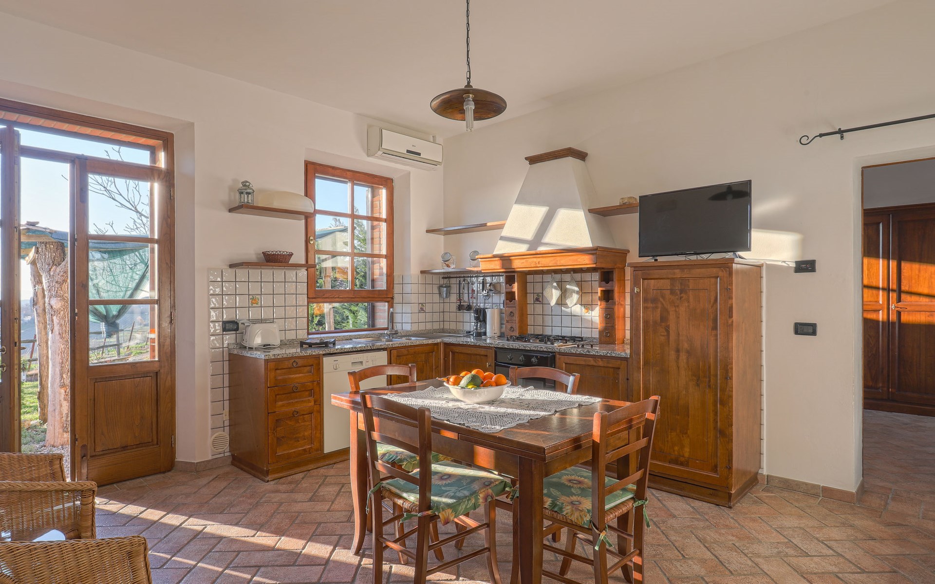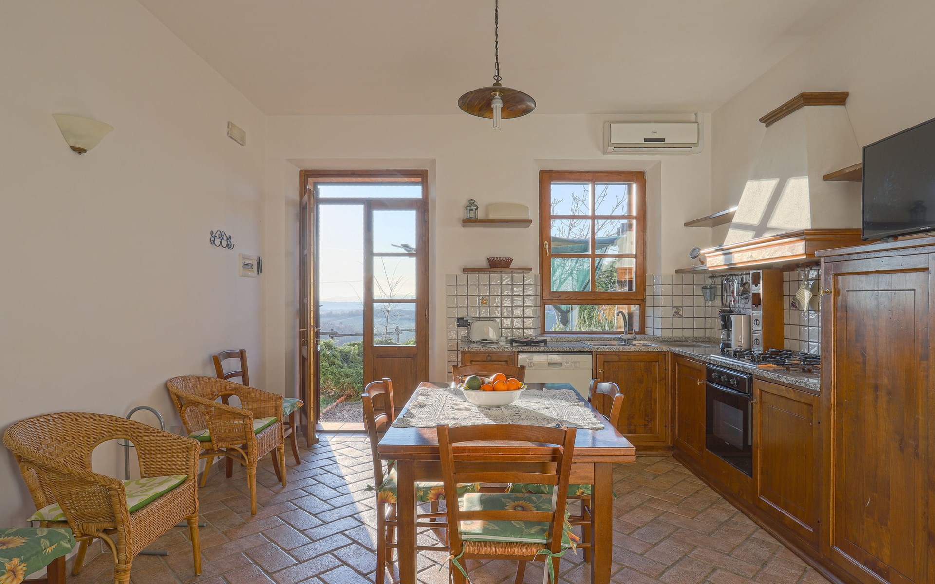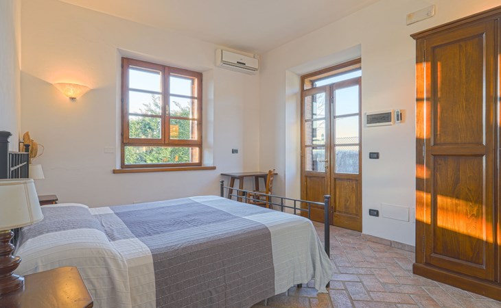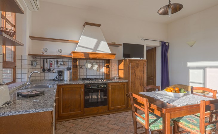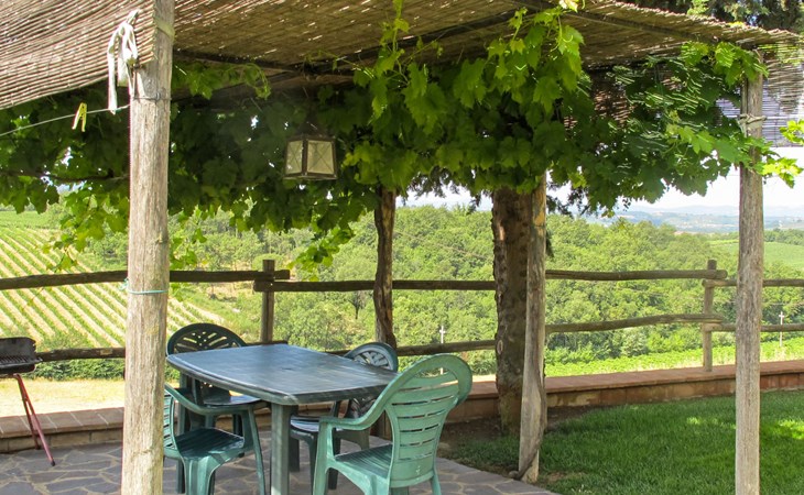 Country house "Cignanbianco", surrounded by fields and vineyards. 3 houses in the residence. 7 apartments in the residence. 5 km from the centre of Castellina in Chianti, 6 km from the centre of Castellina Scalo, 27 km from the centre of Siena, in a secluded, sunny position. For shared use: property 30 ha with plants and trees, natural garden, swimming pool (12 x 6 m, seasonal availability: 02.May. - 03.Oct.). Barbecue, pool maintenance by the owner/gardener. In the house: washing machine (for shared use). 1 km long motor access (via unmade road). Parking on the premises. Shop 5 km, grocery 5 km, supermarket 5 km, restaurant 1.7 km, bicycle rental 5 km, bus stop "Castellina Scalo" 6 km, railway station "Castellina Scalo" 6 km, sandy beach "Cecina Mare" 83 km, indoor swimming pool 15 km. Nearby attractions: Moneriggioni 10 km, San Gimignano 29 km, San Galgano 50 km, Volterra 52 km, Montalcino 65 km. Please note: baby equipment (included). Groups of teenagers on request only. Local sale of farm products. The owner lives on the same property.