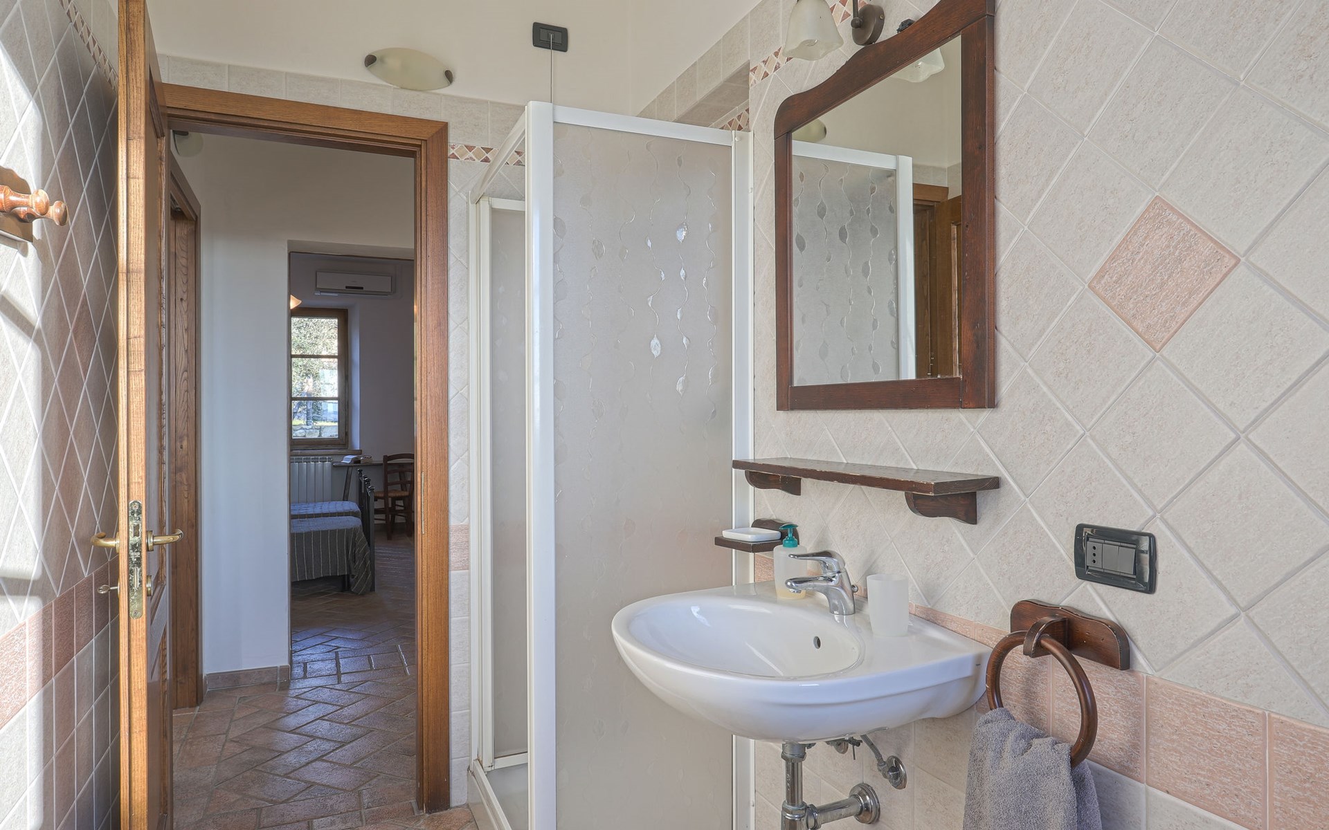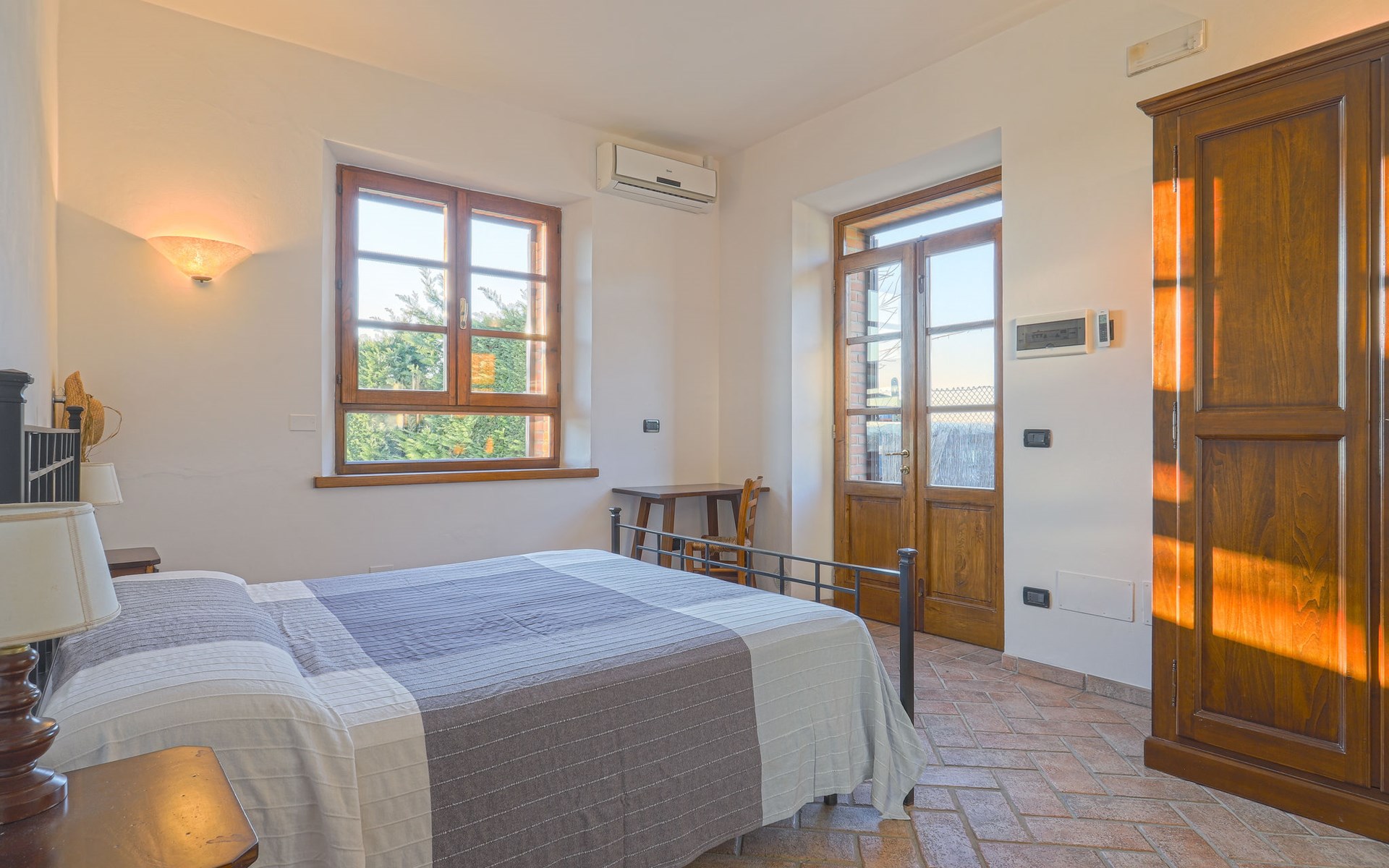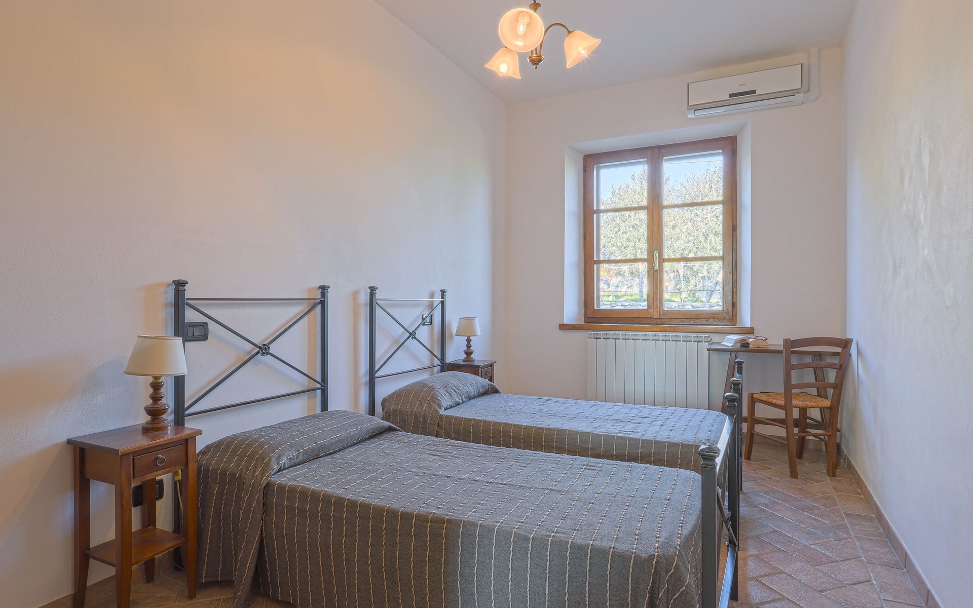 Country house "Cignanbianco", surrounded by fields and vineyards. 3 houses in the residence. 7 apartments in the residence. 5 km from the centre of Castellina in Chianti, 6 km from the centre of Castellina Scalo, 27 km from the centre of Siena, in a secluded, sunny position. For shared use: property 30 ha with plants and trees, natural garden, swimming pool (12 x 6 m, seasonal availability: 02.May. - 03.Oct.). Barbecue, pool maintenance by the owner/gardener. In the house: washing machine (for shared use). 1 km long motor access (via unmade road). Parking on the premises. Shop 5 km, grocery 5 km, supermarket 5 km, restaurant 1.7 km, bicycle rental 5 km, bus stop "Castellina Scalo" 6 km, railway station "Castellina Scalo" 6 km, sandy beach "Cecina Mare" 83 km, indoor swimming pool 15 km. Nearby attractions: Moneriggioni 10 km, San Gimignano 29 km, San Galgano 50 km, Volterra 52 km, Montalcino 65 km. Please note: baby equipment (included). Groups of teenagers on request only. Local sale of farm products. The owner lives on the same property.