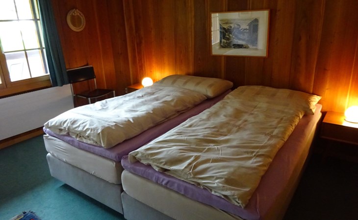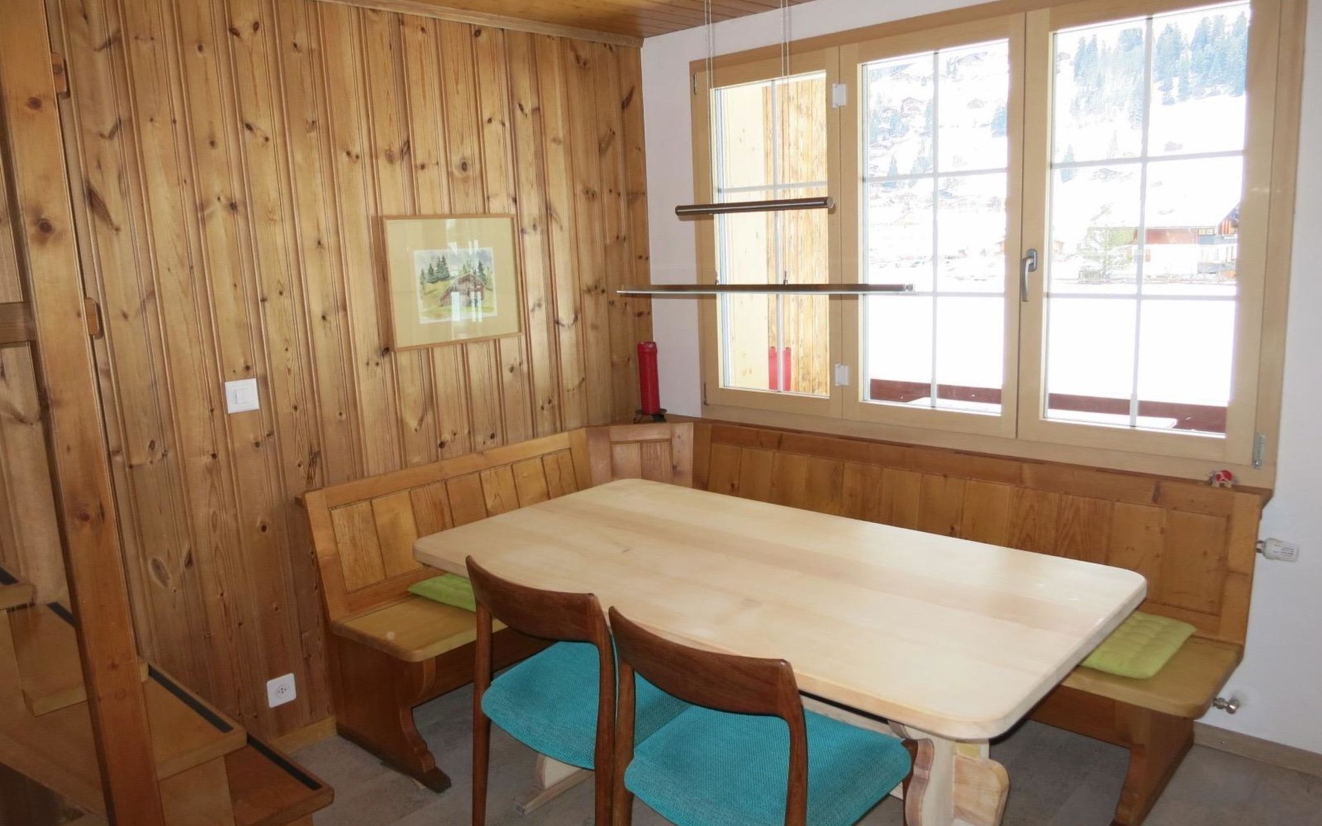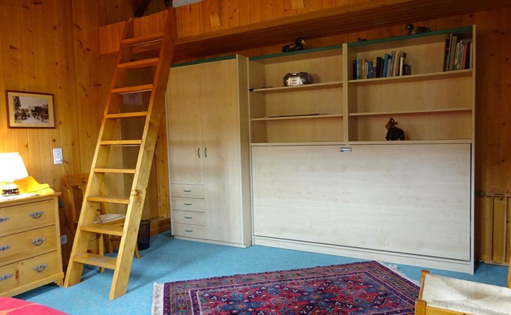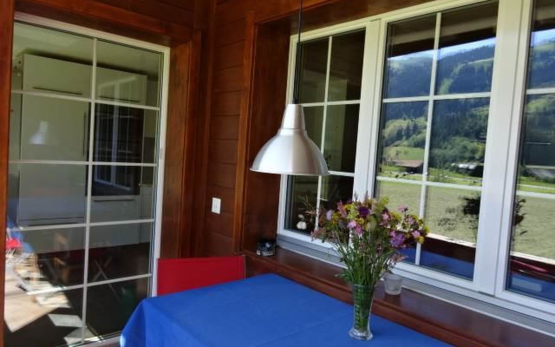 Three spacious rooms are stylishly and attractively furnished and invite you to stay. There is a double bedroom with box spring beds, 2 single beds and a cupboard bed in another room on the first floor, as well as 2 emergency beds (mattresses) on the gallery. So small groups of up to 7 people are also welcome. Public transport included in the Simmental and Saanenland with the SIMMENTAL CARD: Overnight guests in the Lenk-Simmental holiday region travel free of charge on public transport for excursions with a valid guest card.