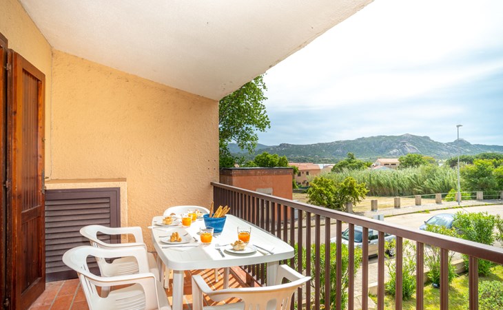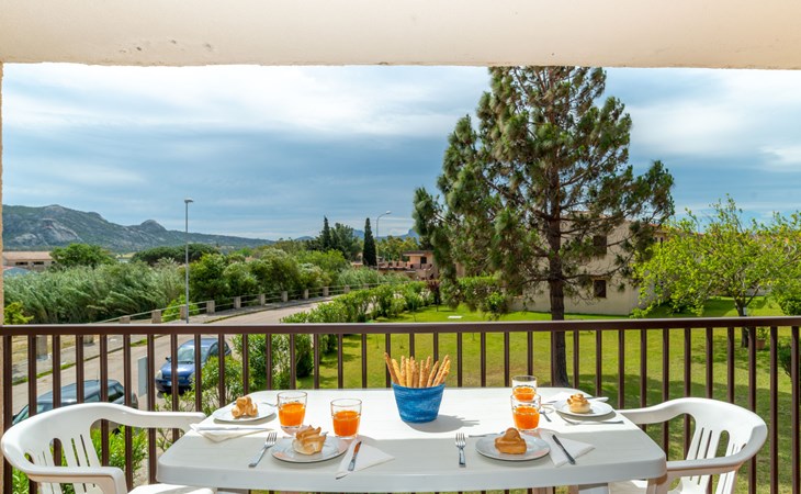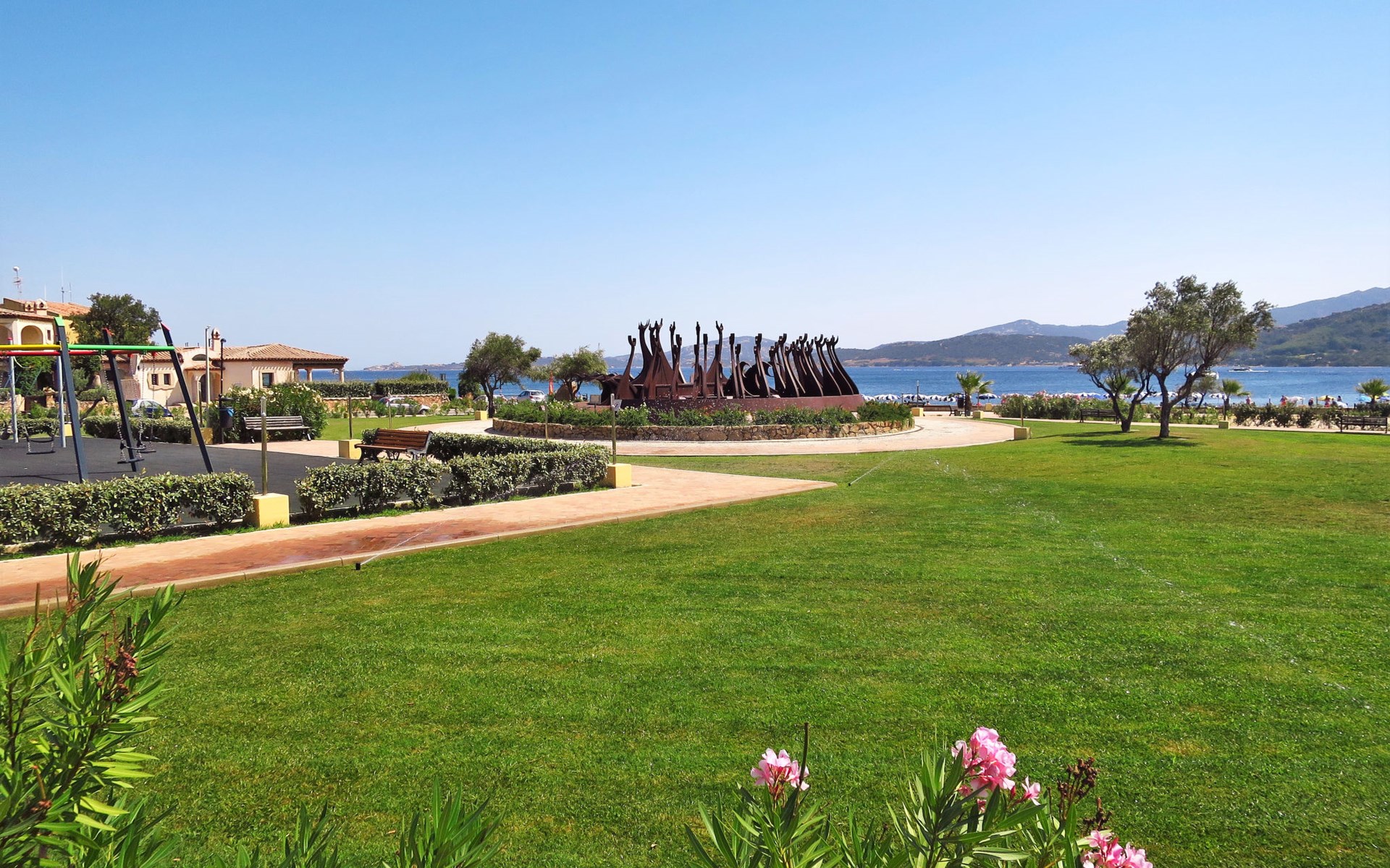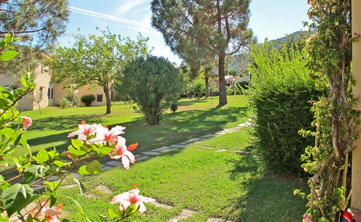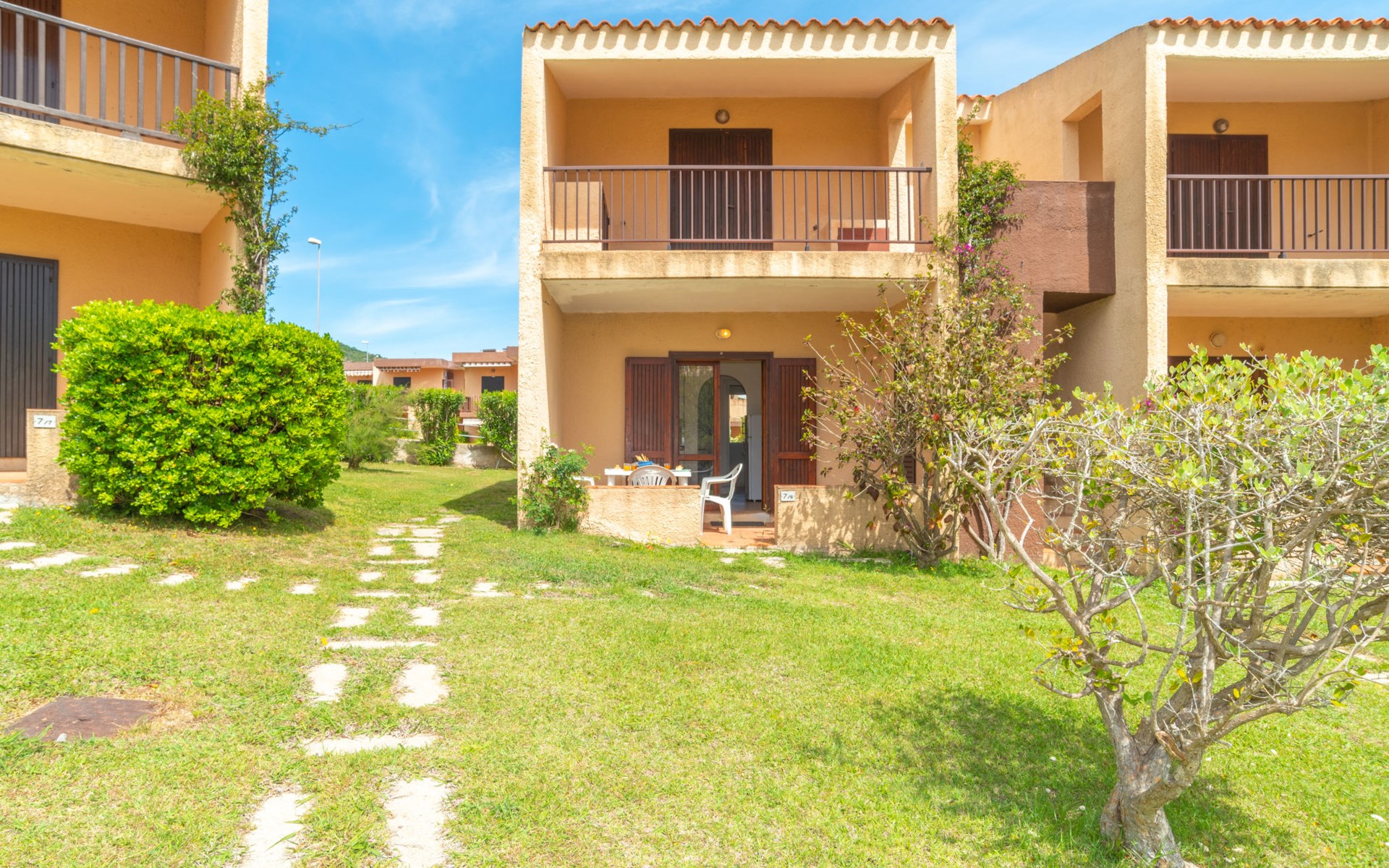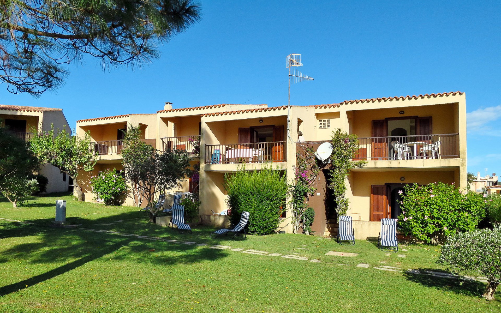 Residence "Residenza Mediterranea", 2 storeys. 100 apartments in the residence. 250 m from the centre of Cannigione, 15 km from the centre of Porto Cervo, 800 m from the sea. For shared use: property 20'000 m2, garden (not fenced) with trees, meadow. Tennis (extra). Stepped path to the house. Parking at the house at 50 m. Supermarket 300 m, bus stop 1 km, sandy beach 800 m. Tennis 200 m. Nearby attractions: Arzachena 7.5 km, Baja Sardinia 11 km, Palau 15 km, Olbia 27 km. Please note: car recommended. The photograph shows a typical example. Access to the apartments on the first floor via external staircase.