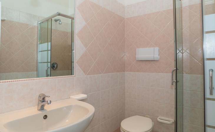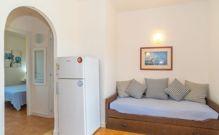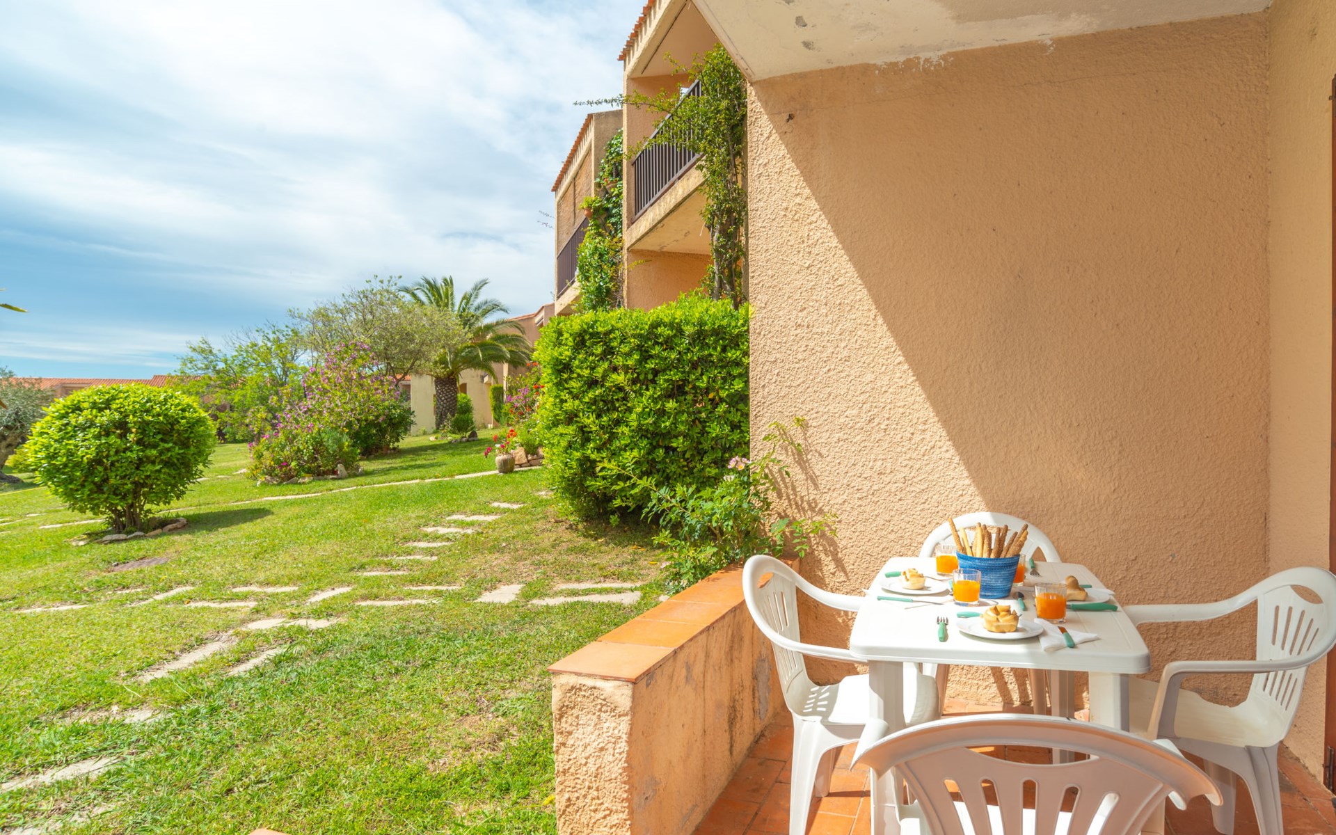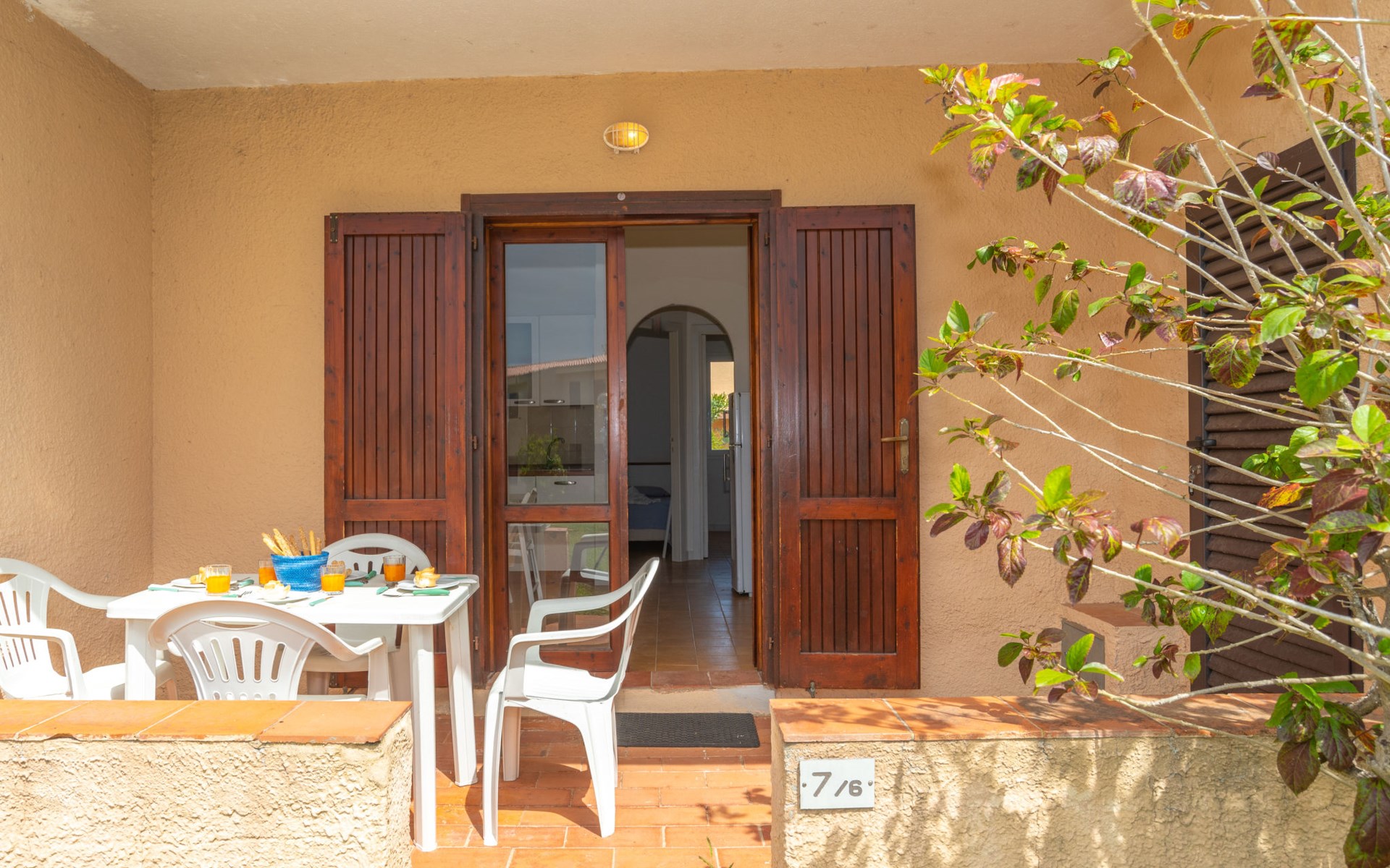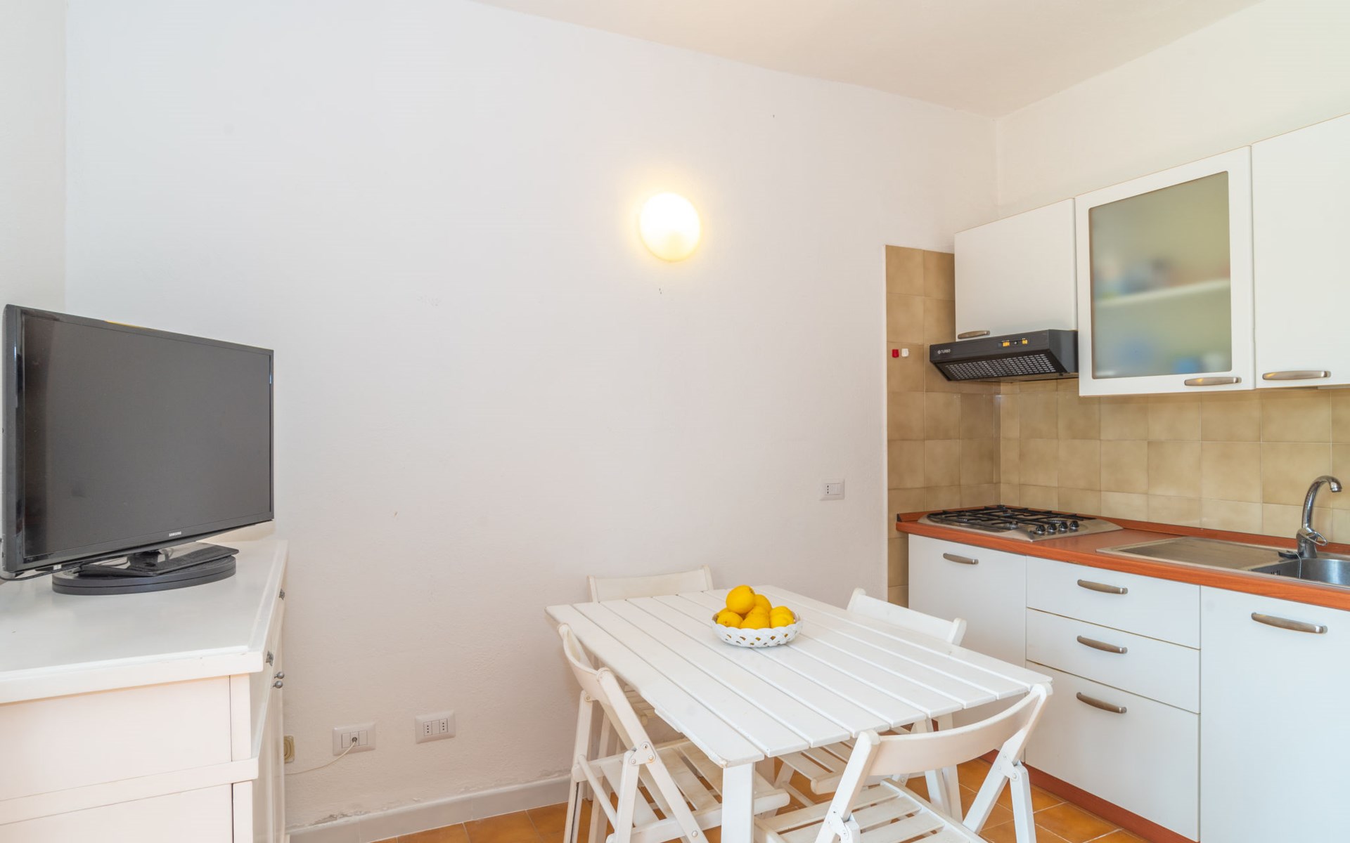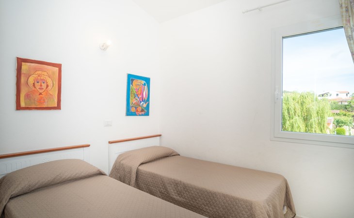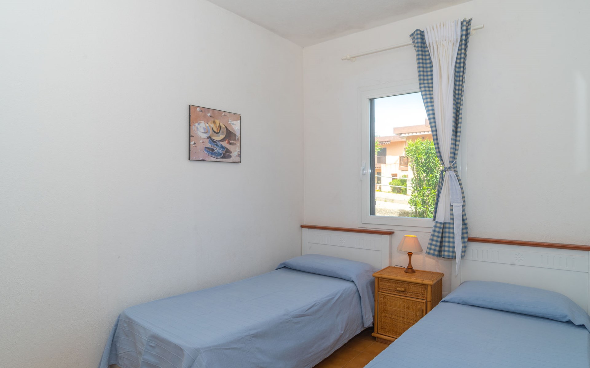 Residence "Residenza Mediterranea", 2 storeys. 100 apartments in the residence. 250 m from the centre of Cannigione, 15 km from the centre of Porto Cervo, 800 m from the sea. For shared use: property 20'000 m2, garden (not fenced) with trees, meadow. Tennis (extra). Stepped path to the house. Parking at the house at 50 m. Supermarket 300 m, bus stop 1 km, sandy beach 800 m. Tennis 200 m. Nearby attractions: Arzachena 7.5 km, Baja Sardinia 11 km, Palau 15 km, Olbia 27 km. Please note: car recommended. The photograph shows a typical example. Access to the apartments on the first floor via external staircase.