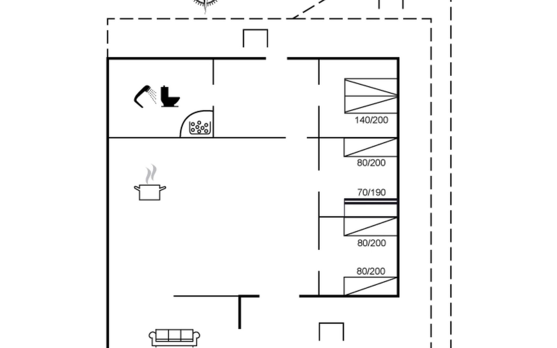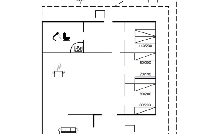 Single-family house, built in 1975. 390 m from the sea. Private: property 1'400 m2, well-kept garden. Barbecue (swing). In the house: washing machine, tumble dryer. Parking at the house. Grocery 2 km. The owner does not accept any youth groups.