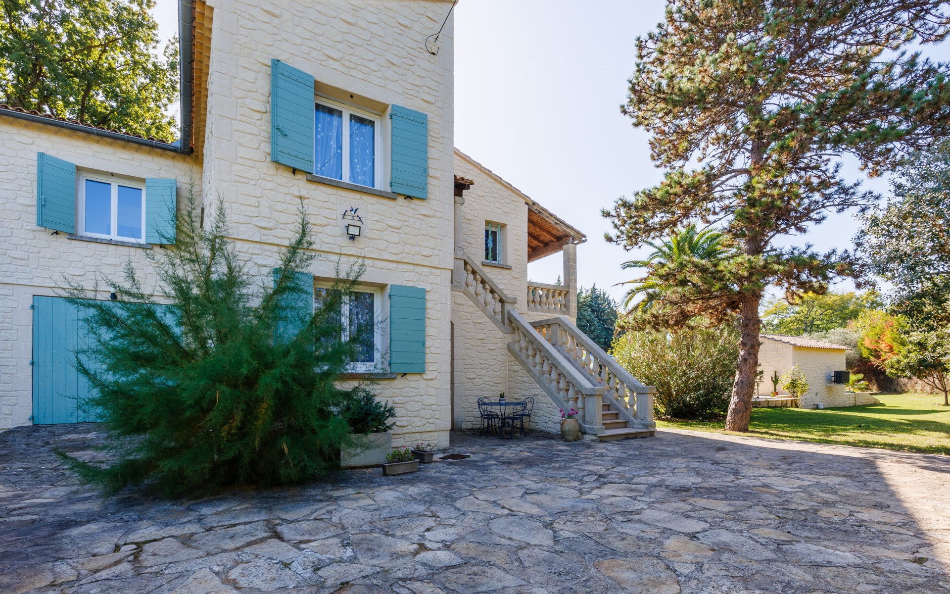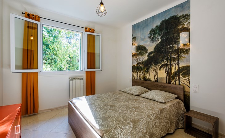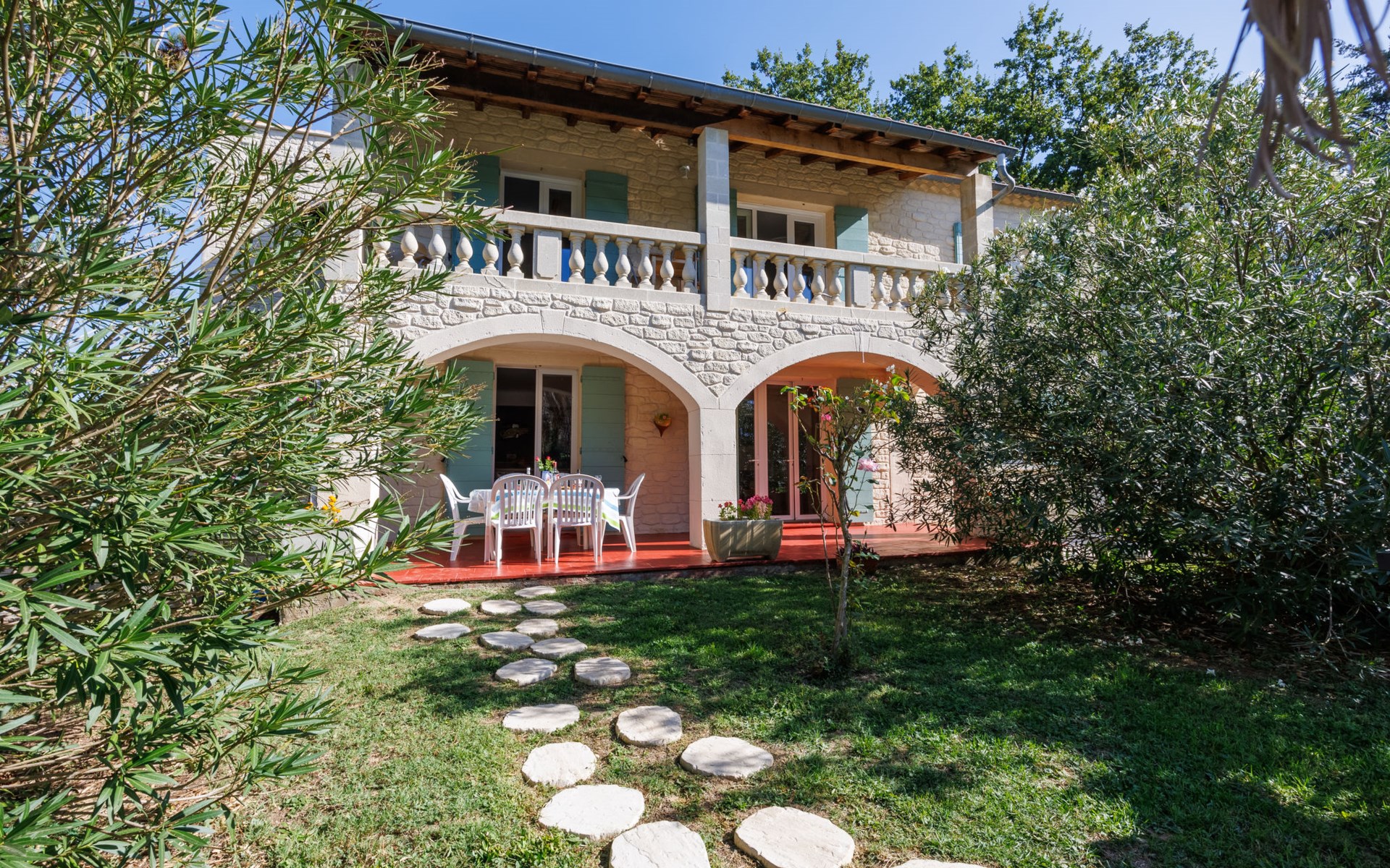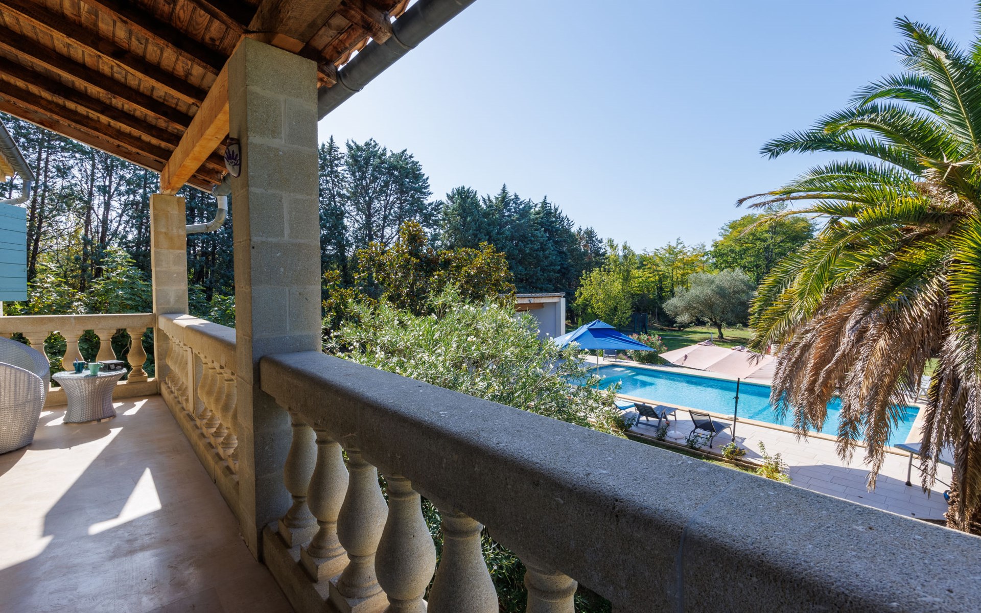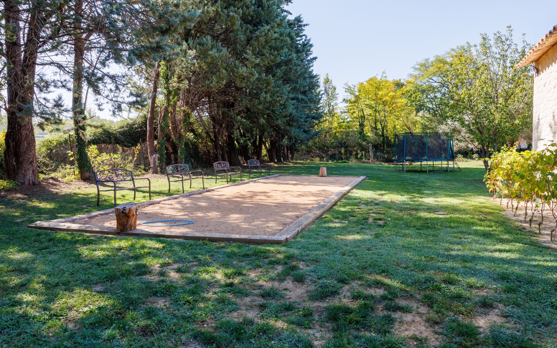 Uzès: Beautiful single-family house "L'Aouzet", 2 storeys, surrounded by trees. On the outskirts, 3 km from the centre of d'Uzès, in a secluded, quiet position, 73 km from the sea, 10 km from the lake, south facing position. Private: well-kept garden 3'000 m2 (fenced) with lawn and wildlife garden, swimming pool angular, heated, with privacy (12 x 6 m, depth 100 - 190 cm, seasonal availability: 01.May. - 15.Oct.) with alarm system. Outdoor shower, pool house, boules, badminton, garden furniture, barbecue, pool maintenance by the owner/gardener. In the house: table tennis, table football, trampoline. Parking (for 3 cars). Shop 3 km, grocery 3 km, supermarket 3 km, bakery 3 km, bus stop "Mairie" 1.5 km, bathing lake "Lac de la Bouscarasse" 10 km. Sports harbour 36 km, golf course (9 hole) 6 km, tennis 3 km, riding stable 15 km. Nearby attractions: Arènes de Nîmes 27 km, Vignobles de Tavel 24 km, Le Pont du Gard 15 km, Palais des Papes d'Avignon 40 km, Musée 1900 6 km, Musée du Bonbon 5 km. Well-known lakes can easily be reached: Lac Dupuy 10 km. Hiking paths: Sentier des Capitelles 2.5 km, La Vallée de l'Eure à Uzès 1.4 km, Le Belvédère des Garrigues 1.5 km. Please note: baby equipment (included).