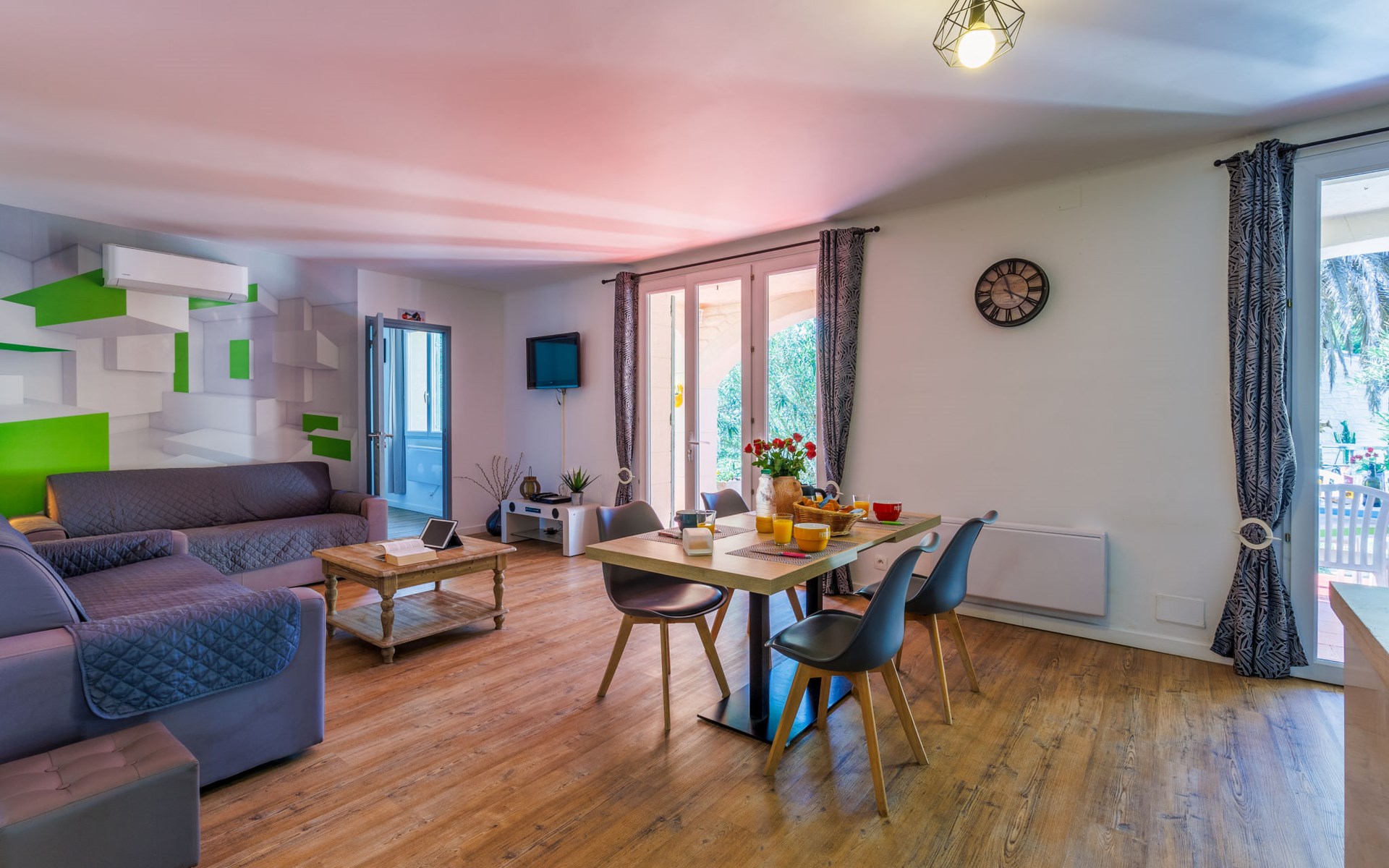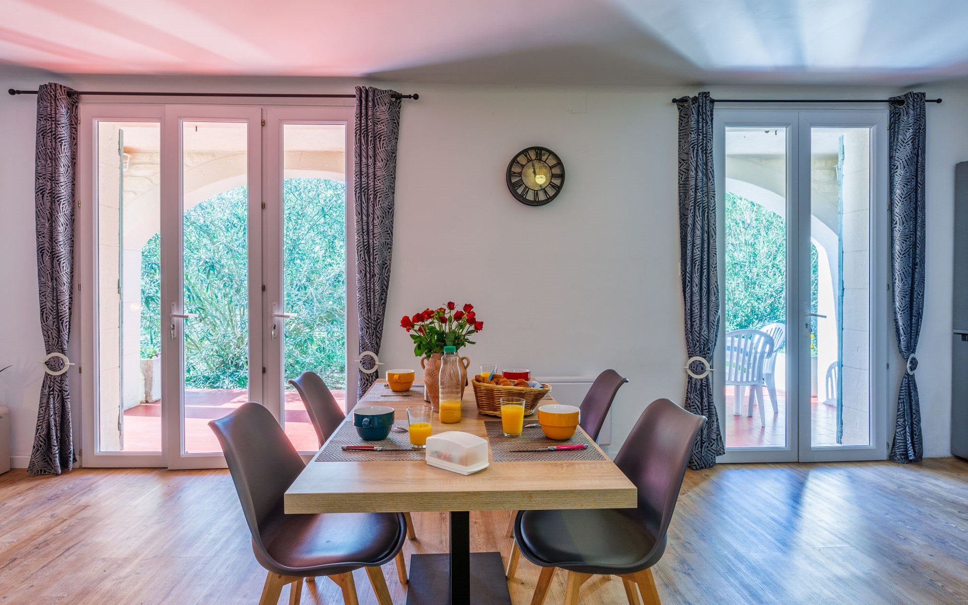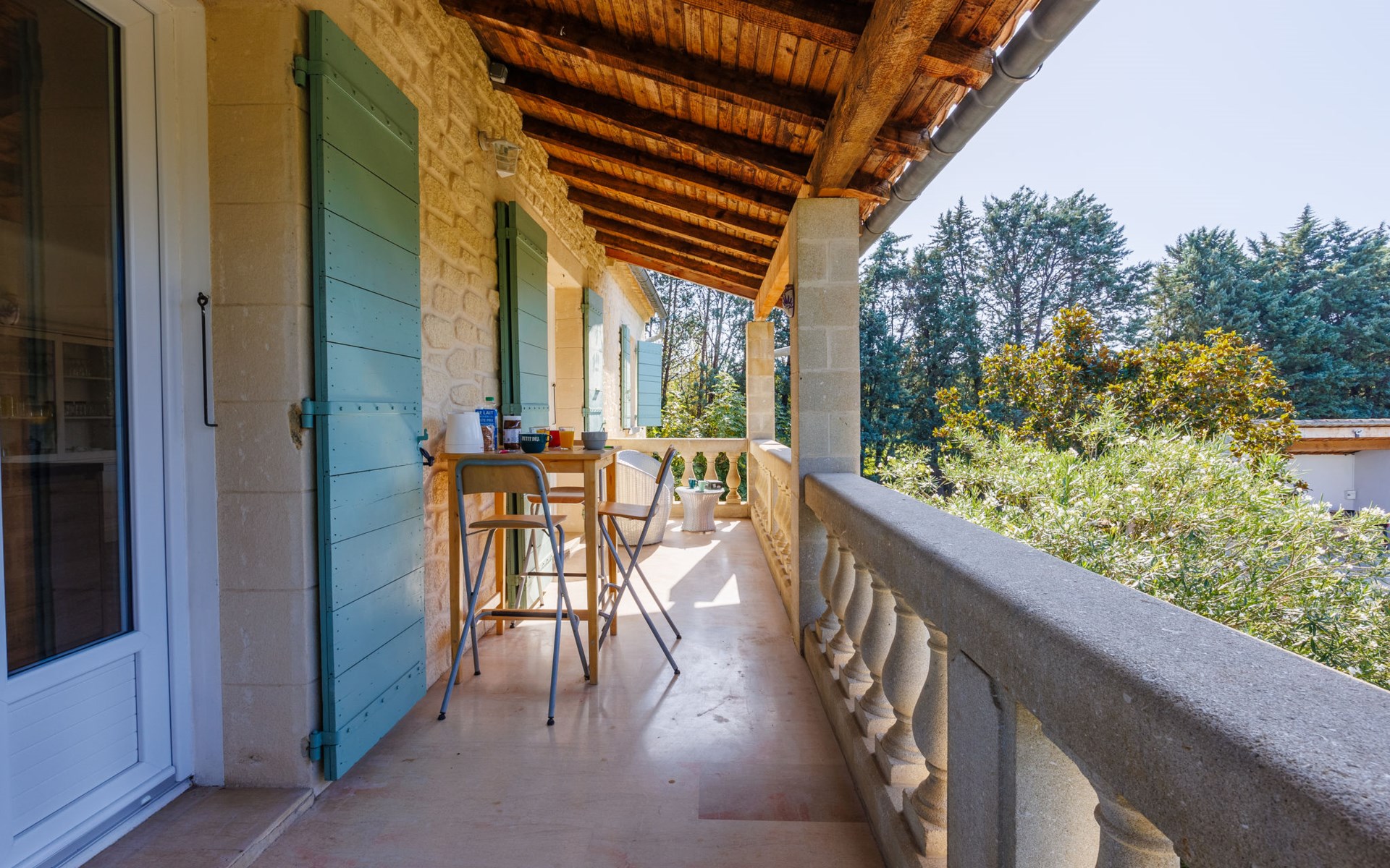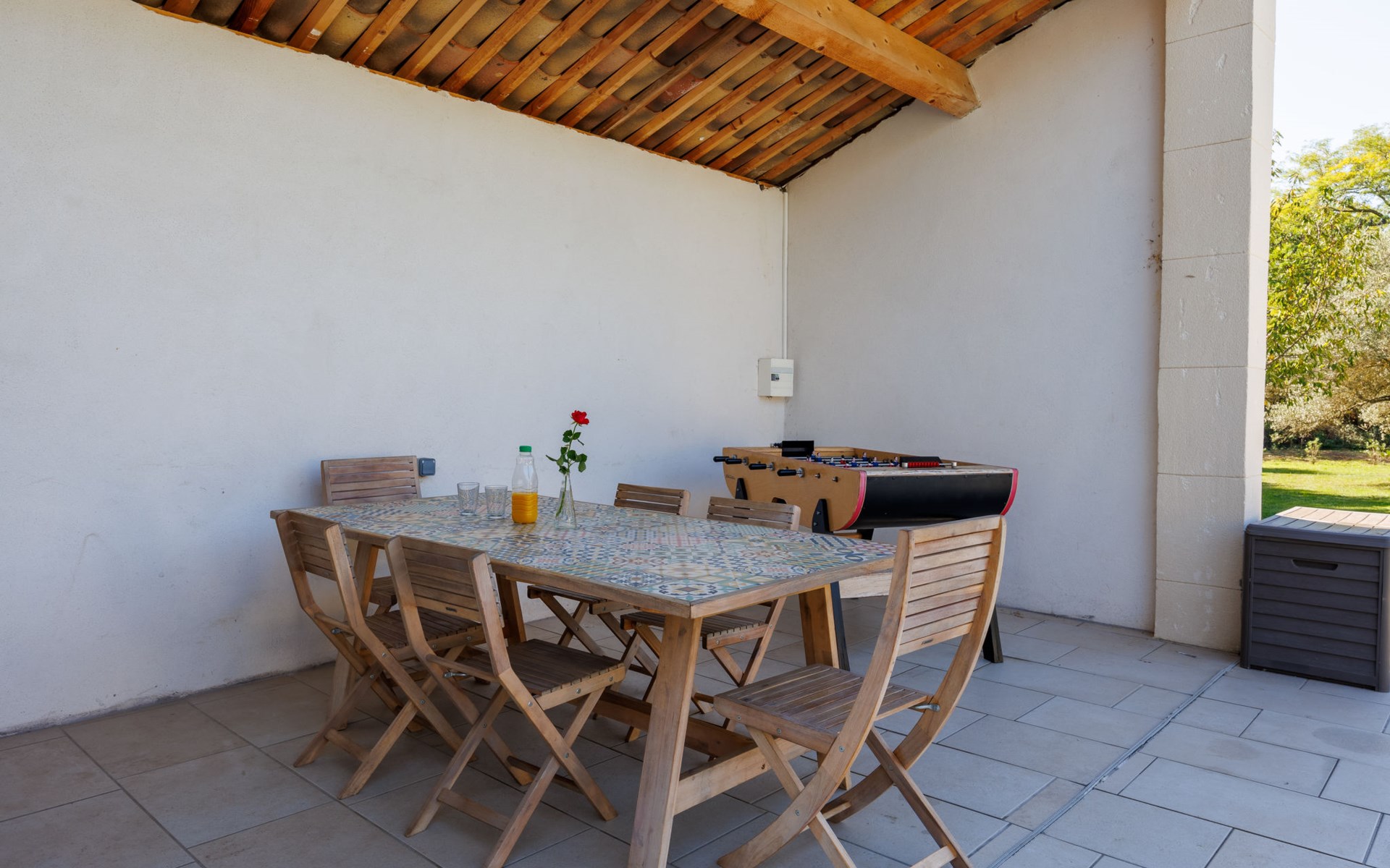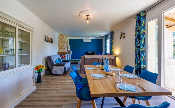 Uzès: Beautiful single-family house "L'Aouzet", 2 storeys, surrounded by trees. On the outskirts, 3 km from the centre of d'Uzès, in a secluded, quiet position, 73 km from the sea, 10 km from the lake, south facing position. Private: well-kept garden 3'000 m2 (fenced) with lawn and wildlife garden, swimming pool angular, heated, with privacy (12 x 6 m, depth 100 - 190 cm, seasonal availability: 01.May. - 15.Oct.) with alarm system. Outdoor shower, pool house, boules, badminton, garden furniture, barbecue, pool maintenance by the owner/gardener. In the house: table tennis, table football, trampoline. Parking (for 3 cars). Shop 3 km, grocery 3 km, supermarket 3 km, bakery 3 km, bus stop "Mairie" 1.5 km, bathing lake "Lac de la Bouscarasse" 10 km. Sports harbour 36 km, golf course (9 hole) 6 km, tennis 3 km, riding stable 15 km. Nearby attractions: Arènes de Nîmes 27 km, Vignobles de Tavel 24 km, Le Pont du Gard 15 km, Palais des Papes d'Avignon 40 km, Musée 1900 6 km, Musée du Bonbon 5 km. Well-known lakes can easily be reached: Lac Dupuy 10 km. Hiking paths: Sentier des Capitelles 2.5 km, La Vallée de l'Eure à Uzès 1.4 km, Le Belvédère des Garrigues 1.5 km. Please note: baby equipment (included).
