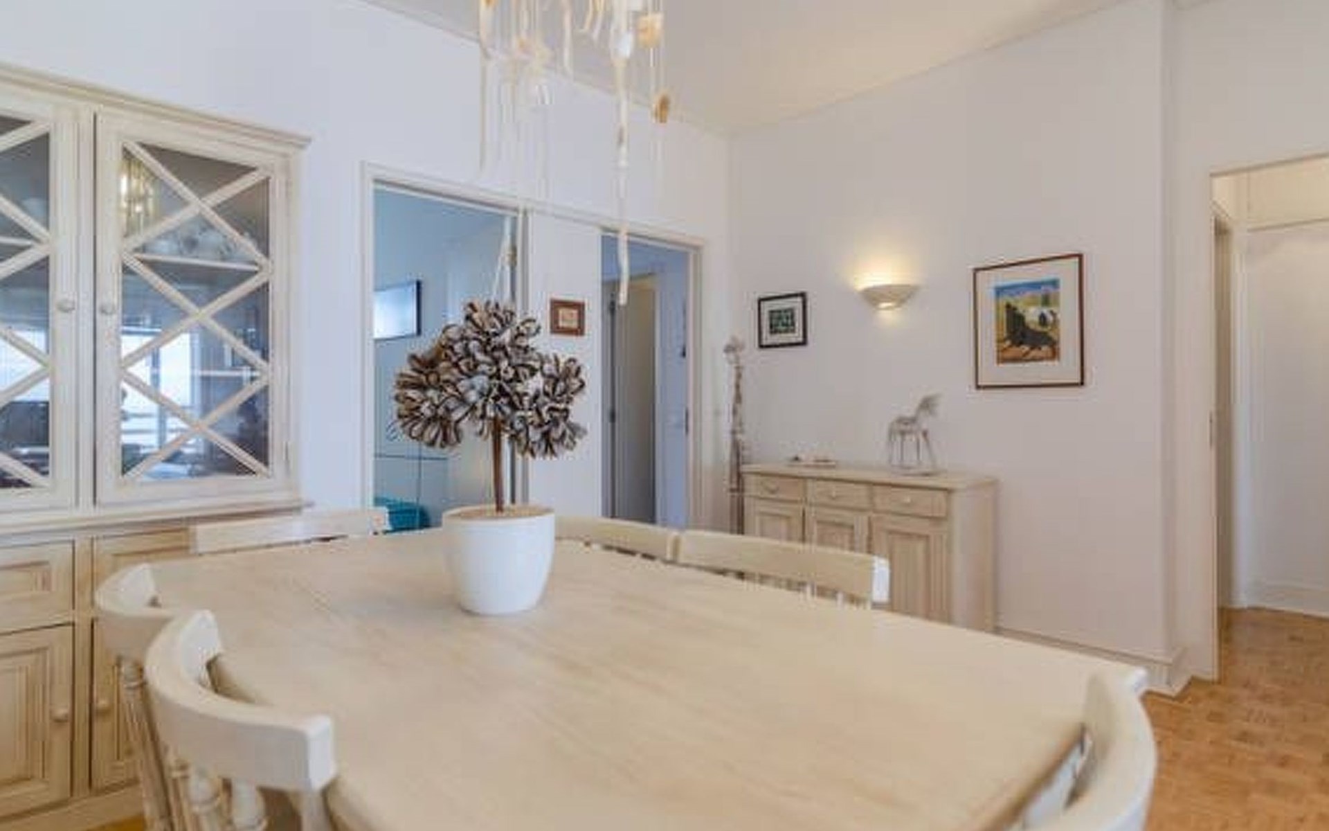 This bright and airy, modern furnished holiday apartment is located on the top floor of the seven-storey building with elevators.