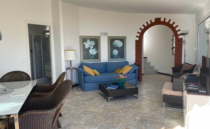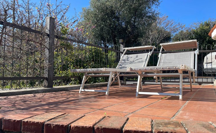 The site is enclosed and features a little Mediterranean garden. From the sunny terrace, furnished with a table and chairs, you can enjoy a wonderful view of the sea. You can end the day here under a starry sky with a glass of fine wine. Owing to the grill area, grill evenings are possible. A car parking space is available.