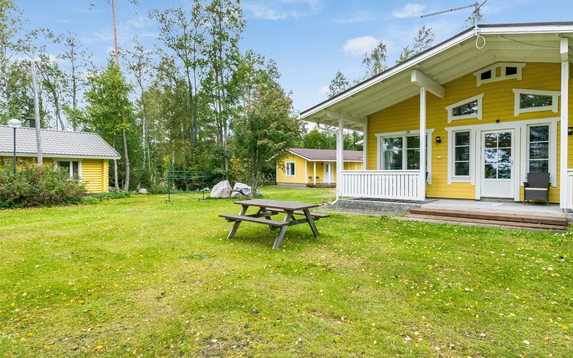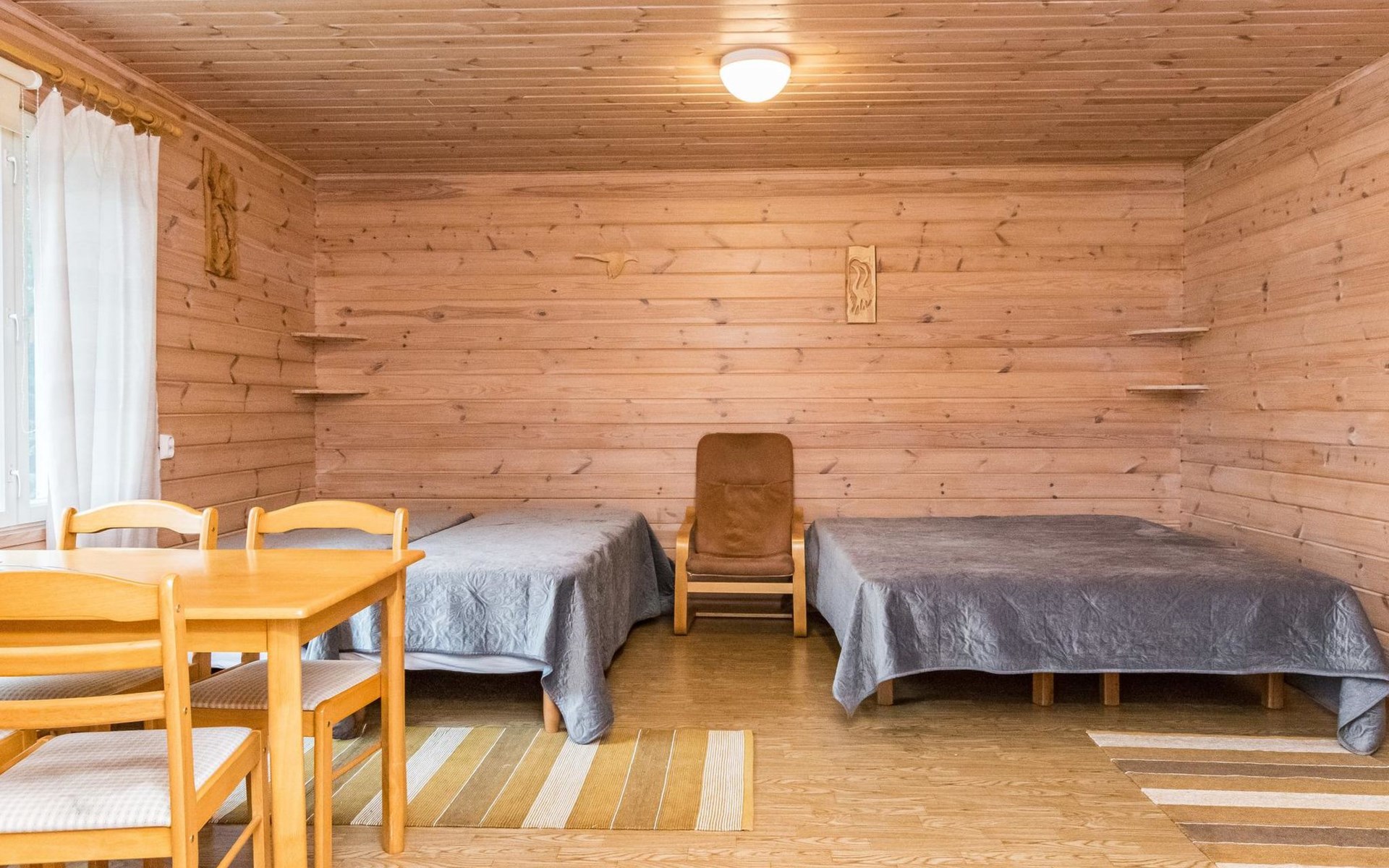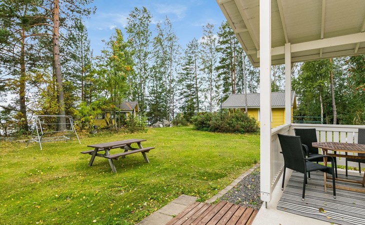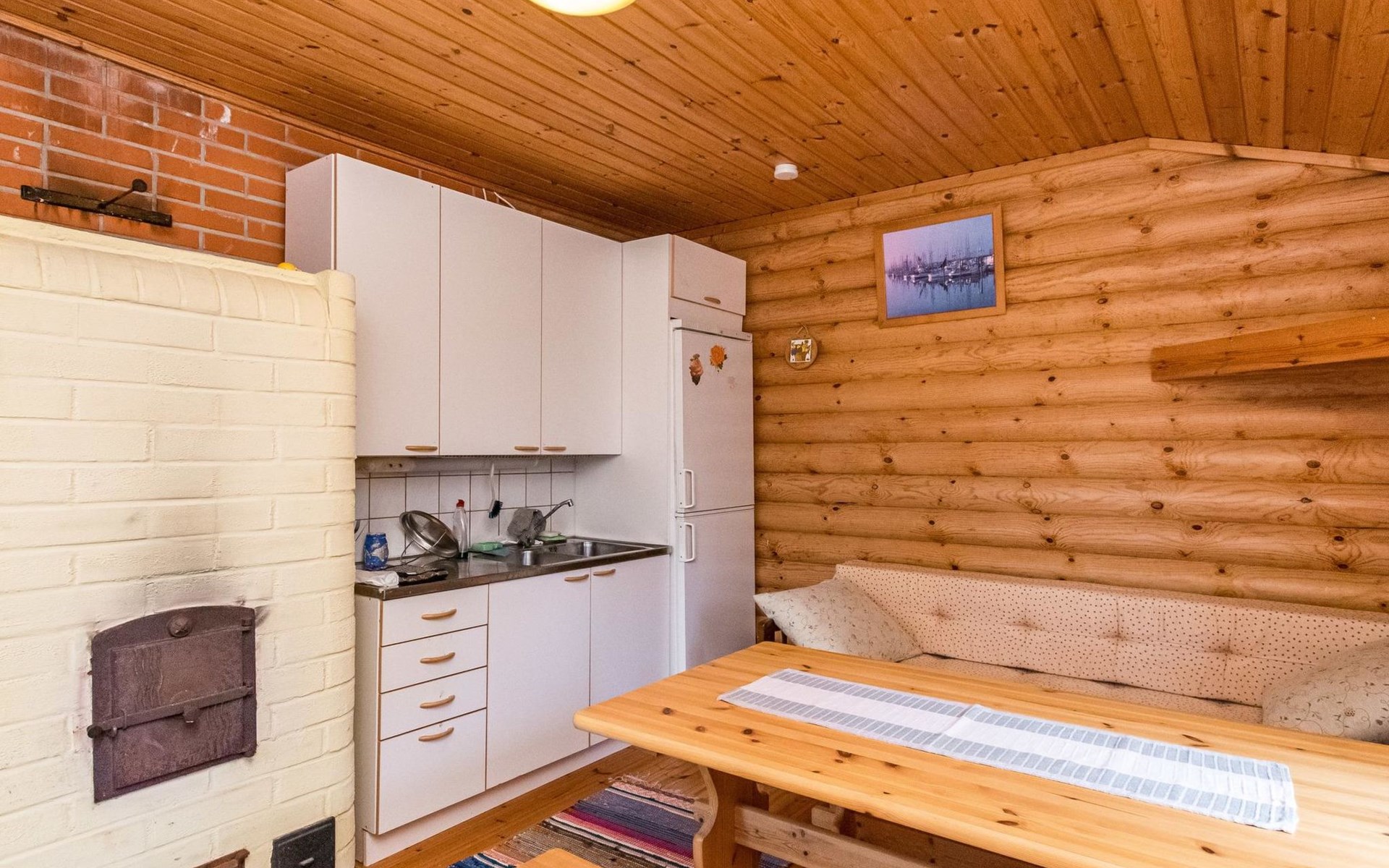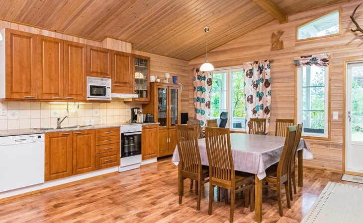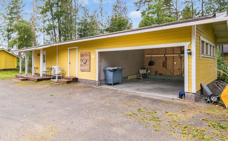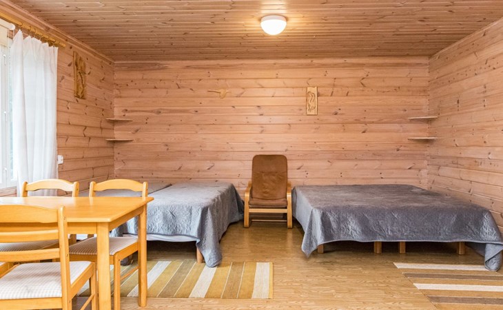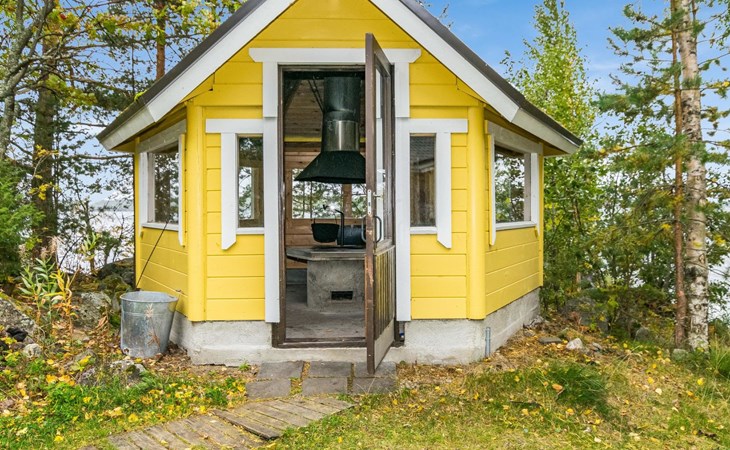 In all year round available outbuilding, in which beds for 3 persons, electric heating. Additionally lakeshore sauna for summer use only, with wood-fired stove and room with fireplace.