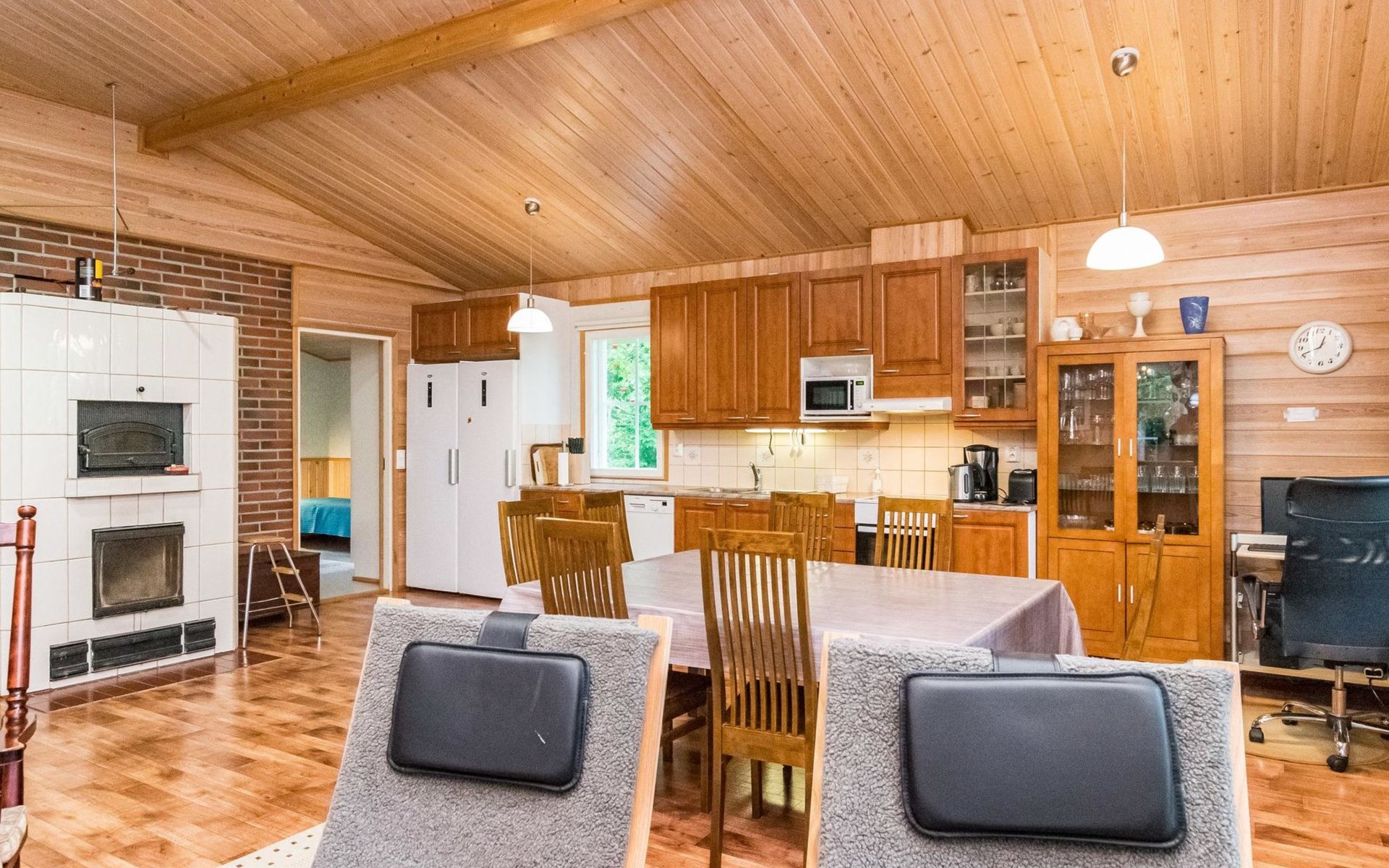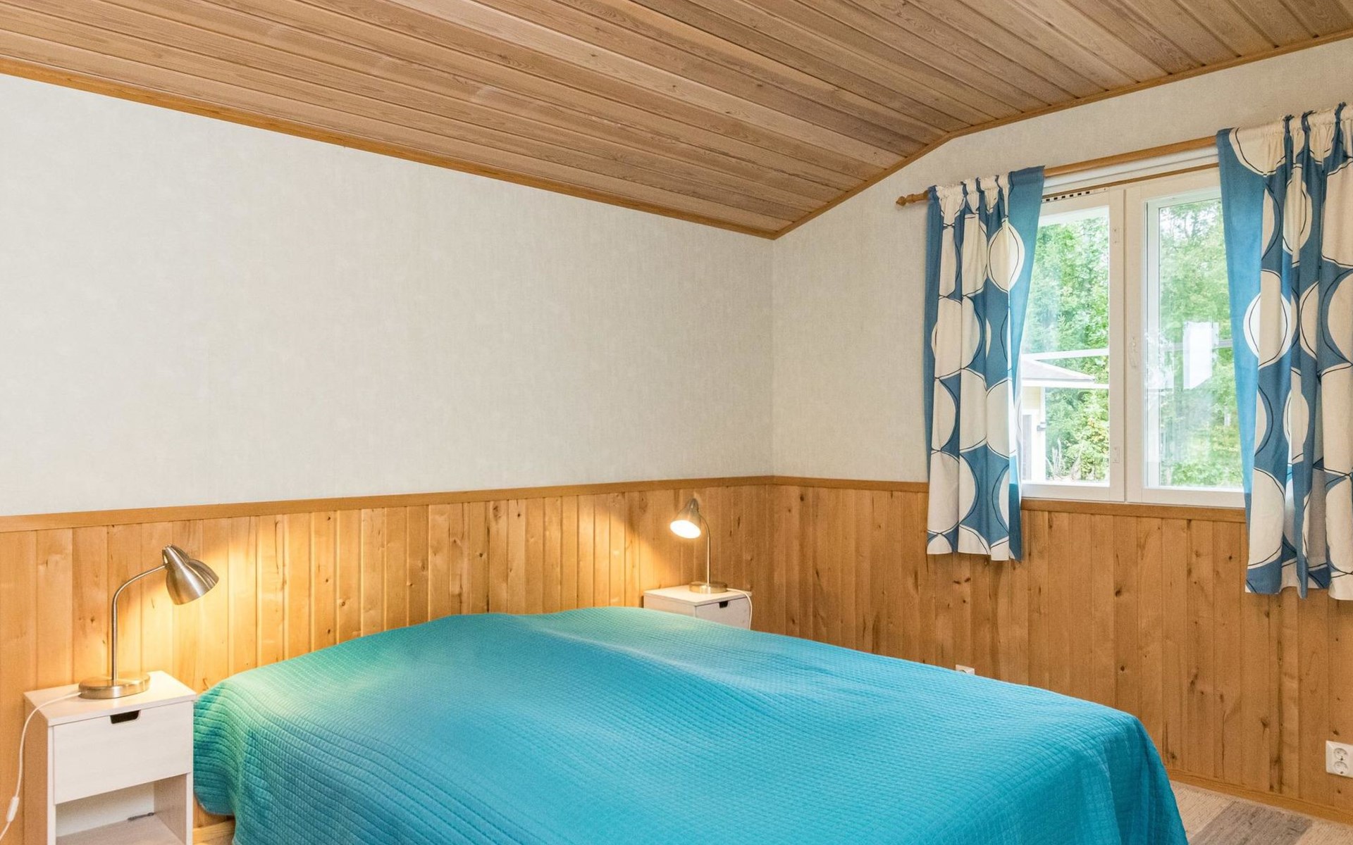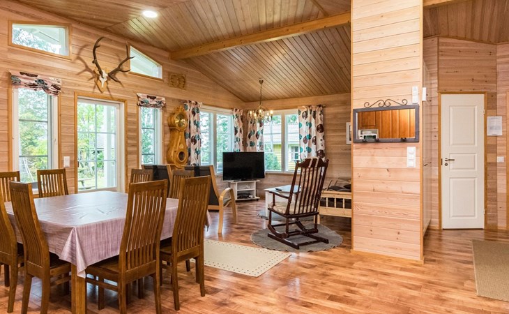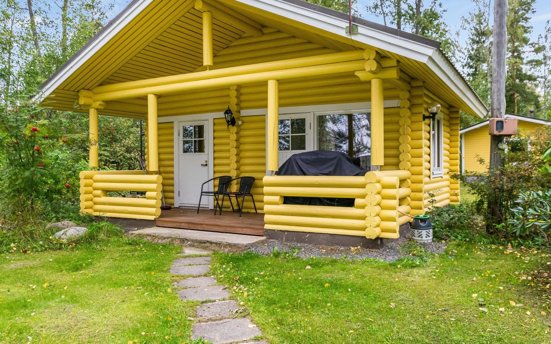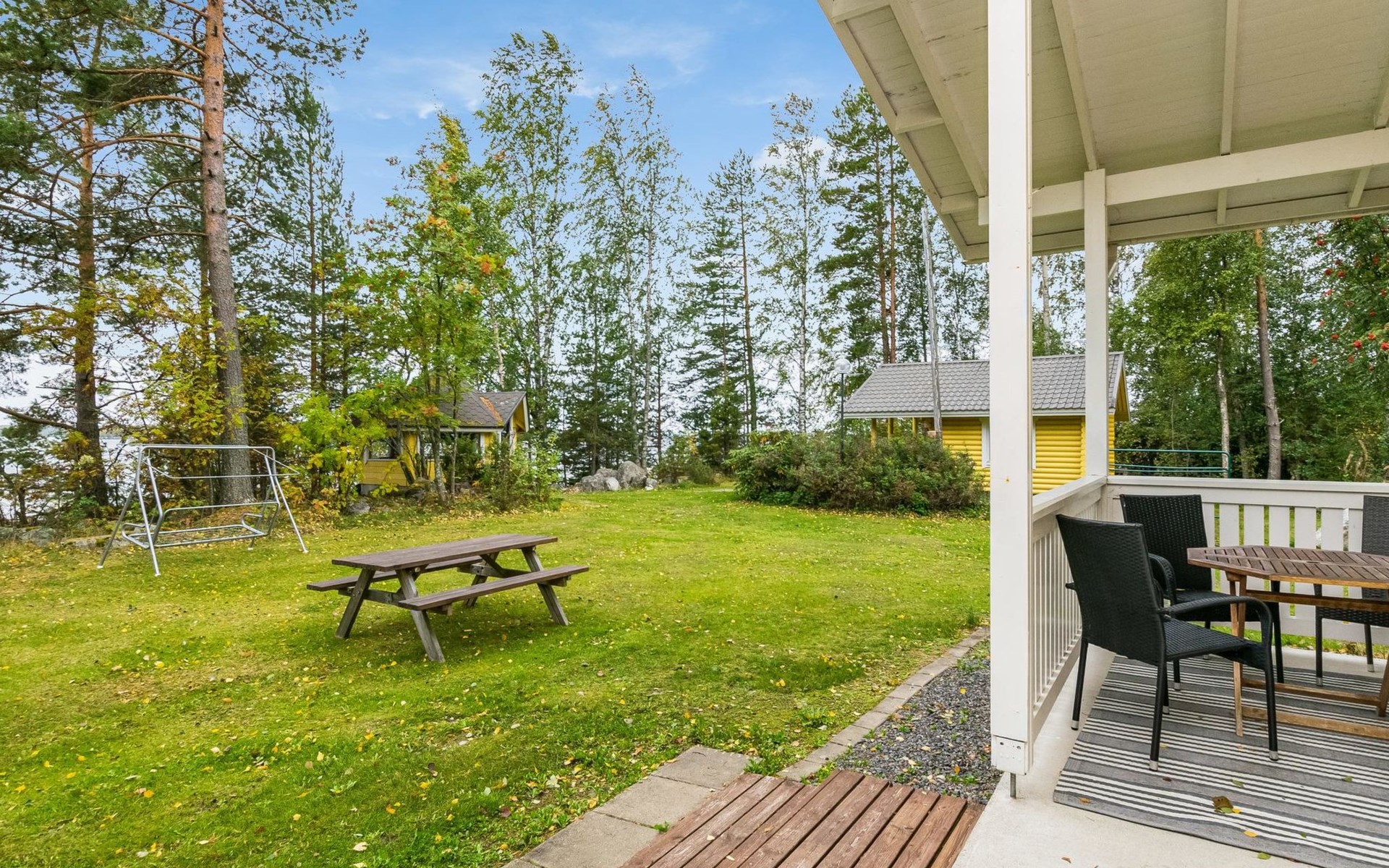 In all year round available outbuilding, in which beds for 3 persons, electric heating. Additionally lakeshore sauna for summer use only, with wood-fired stove and room with fireplace.