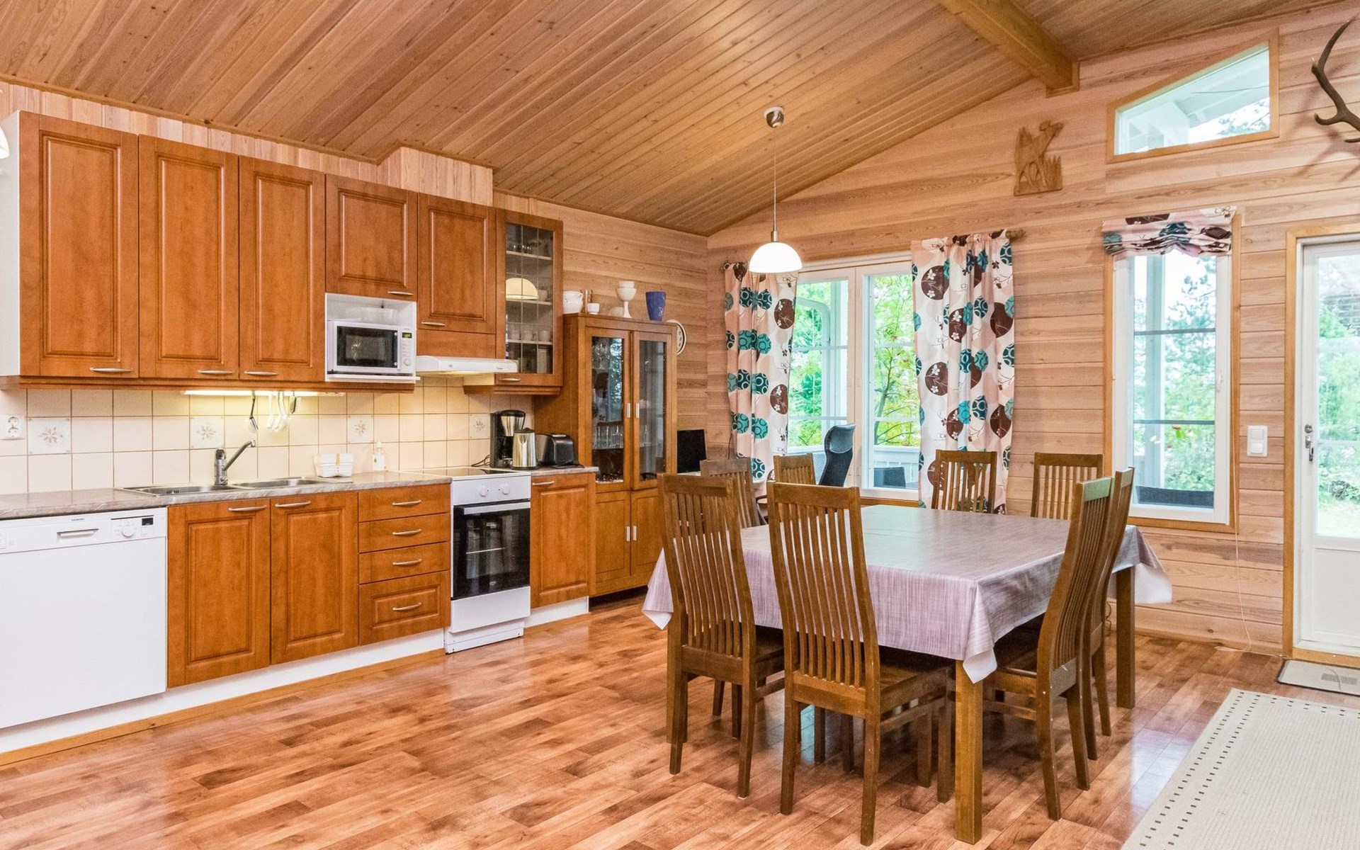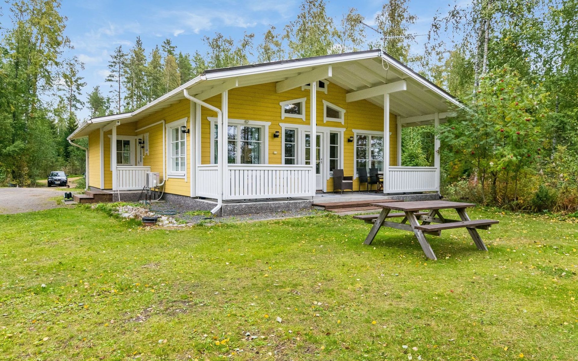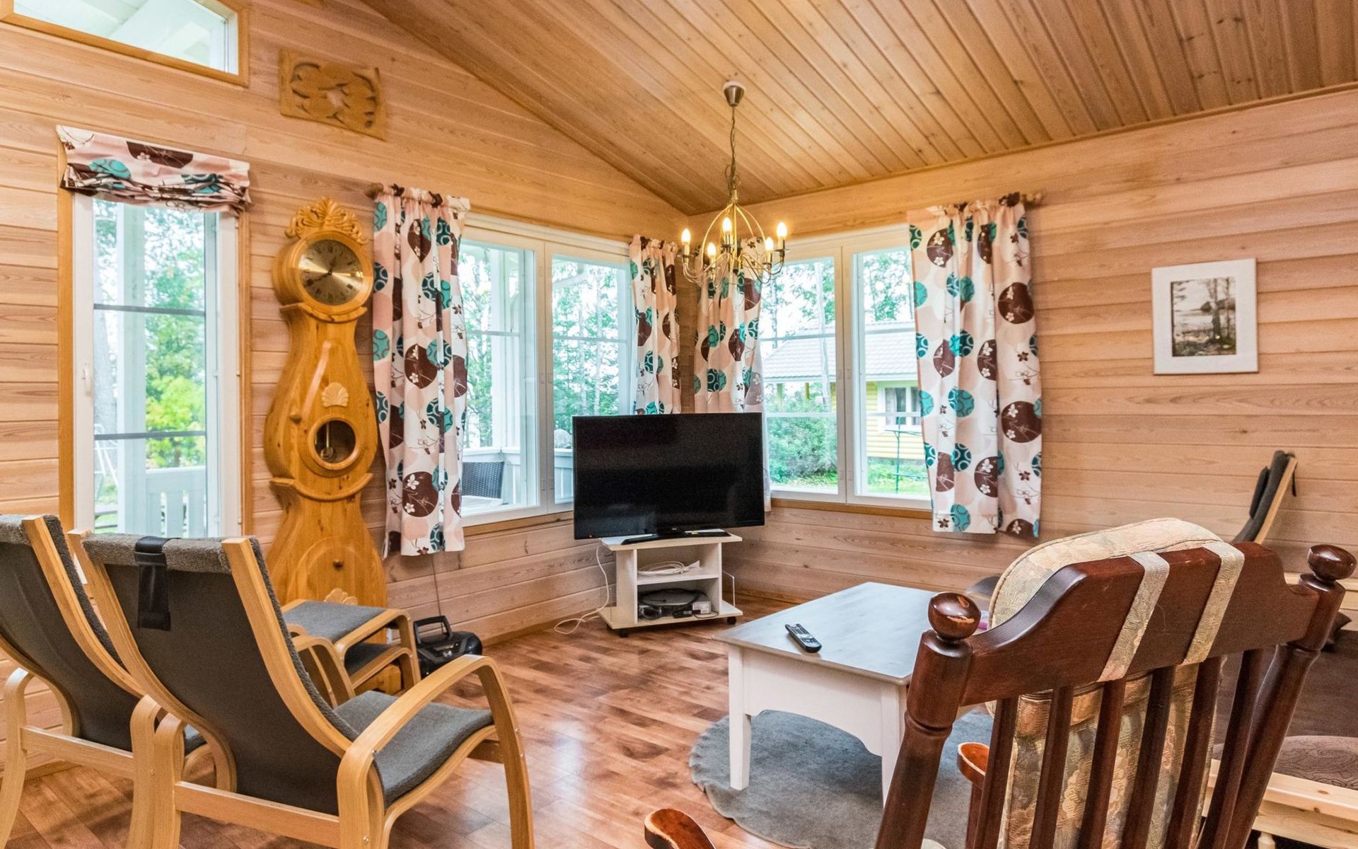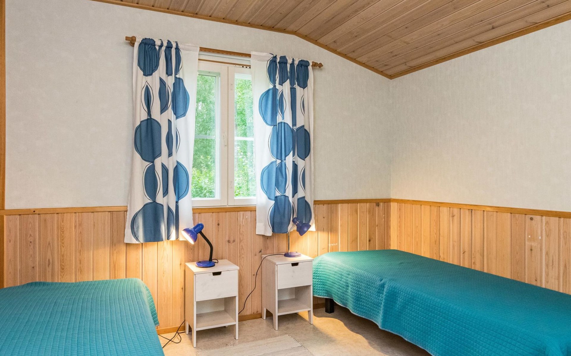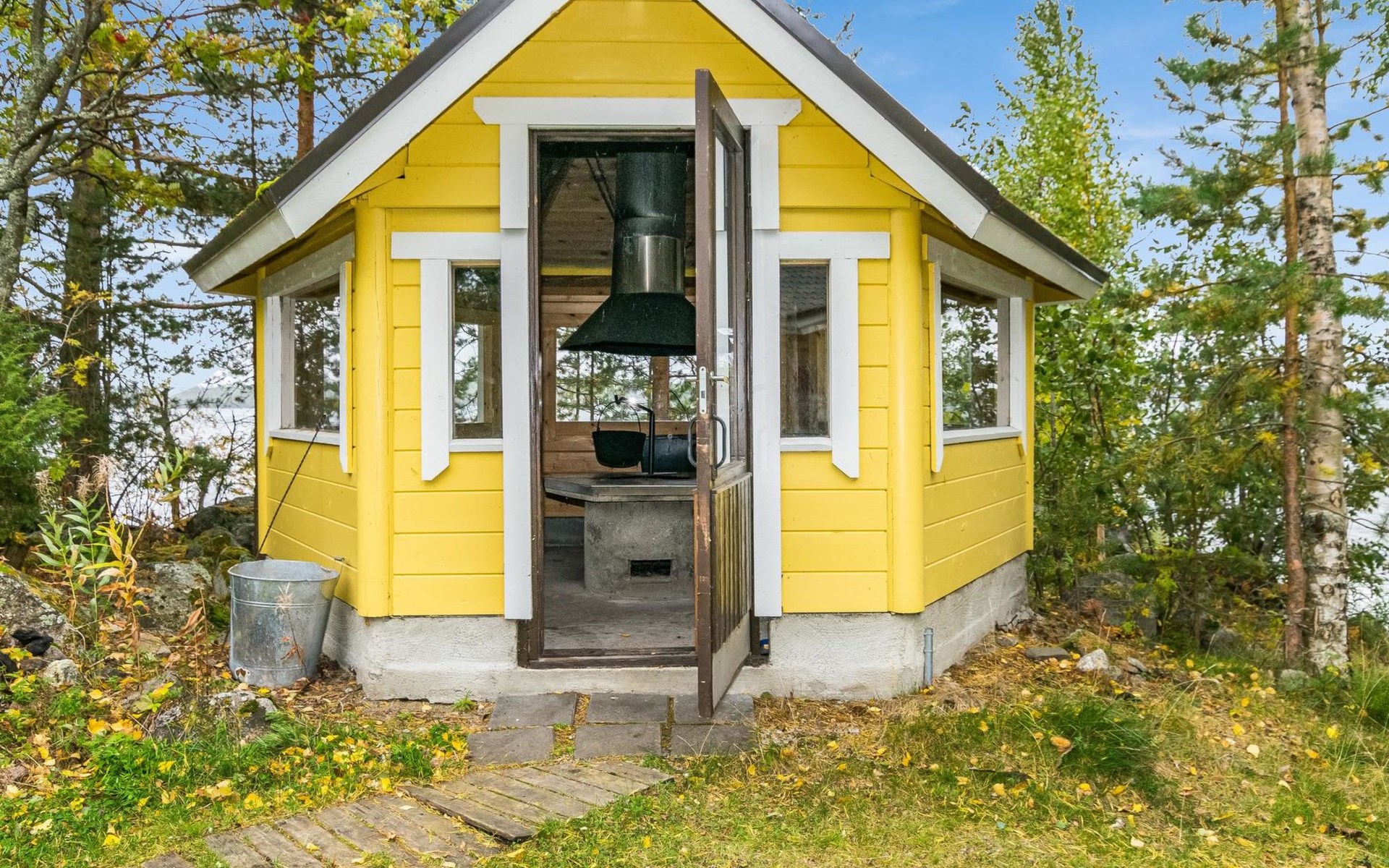 In all year round available outbuilding, in which beds for 3 persons, electric heating. Additionally lakeshore sauna for summer use only, with wood-fired stove and room with fireplace.