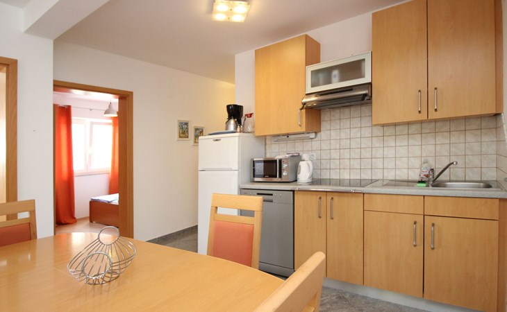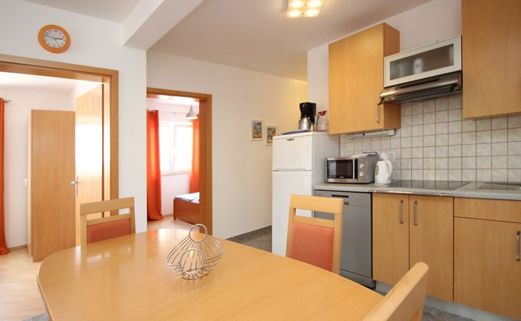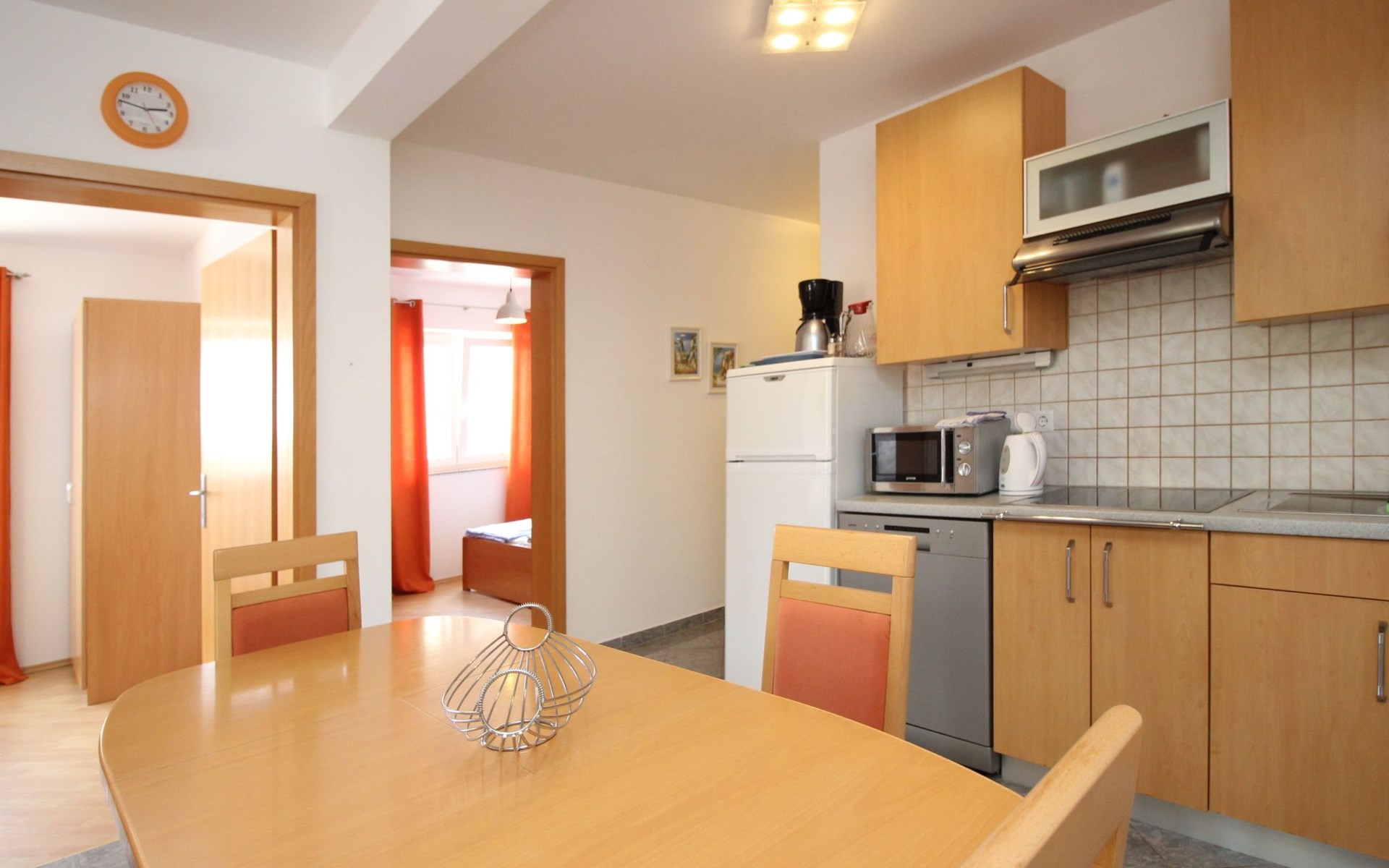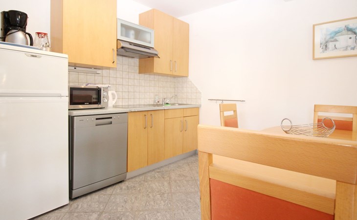 Kitchen : kitchenette, crockery, cooking pots, cutlery, etc. available, dish towels available, electric cooker, number of hotplates: 4, fridge with freezer compartment, coffee machine, dishwasher, kettle, microwave