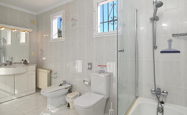 The holiday home has 5 bedrooms and 3 bathrooms, spread over 2 levels. The accommodation offers a garden with gravel and trees, a beautiful pool and a view of the mountains. Its comfort and the vicinity of the beach, places to shop, sports activities, places to go out, sights and culture make this a fine holiday home to spend your holidays in Spain with family or friends.