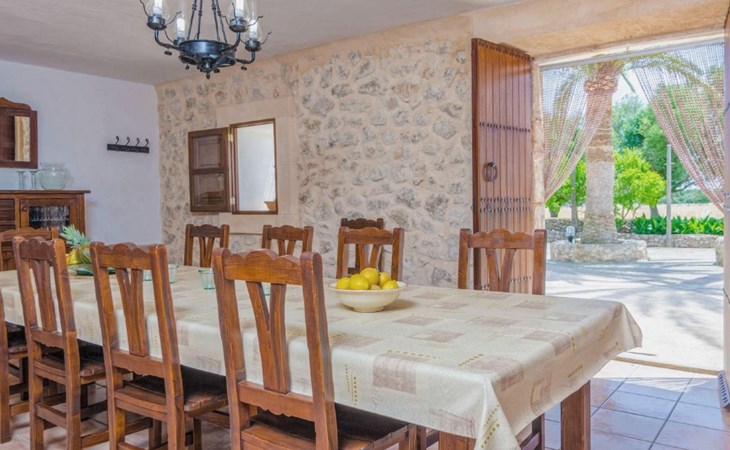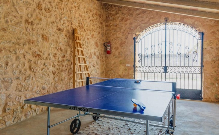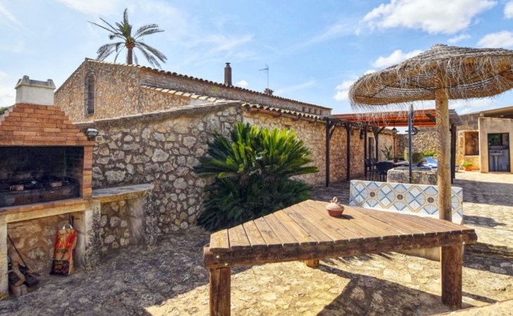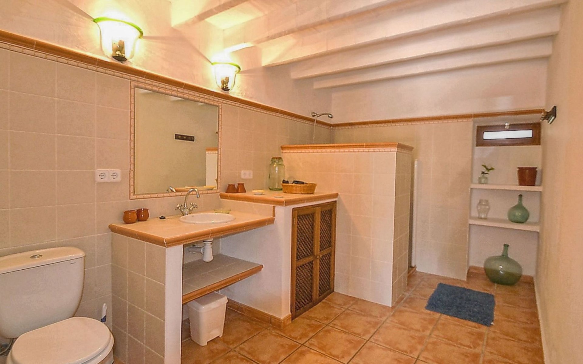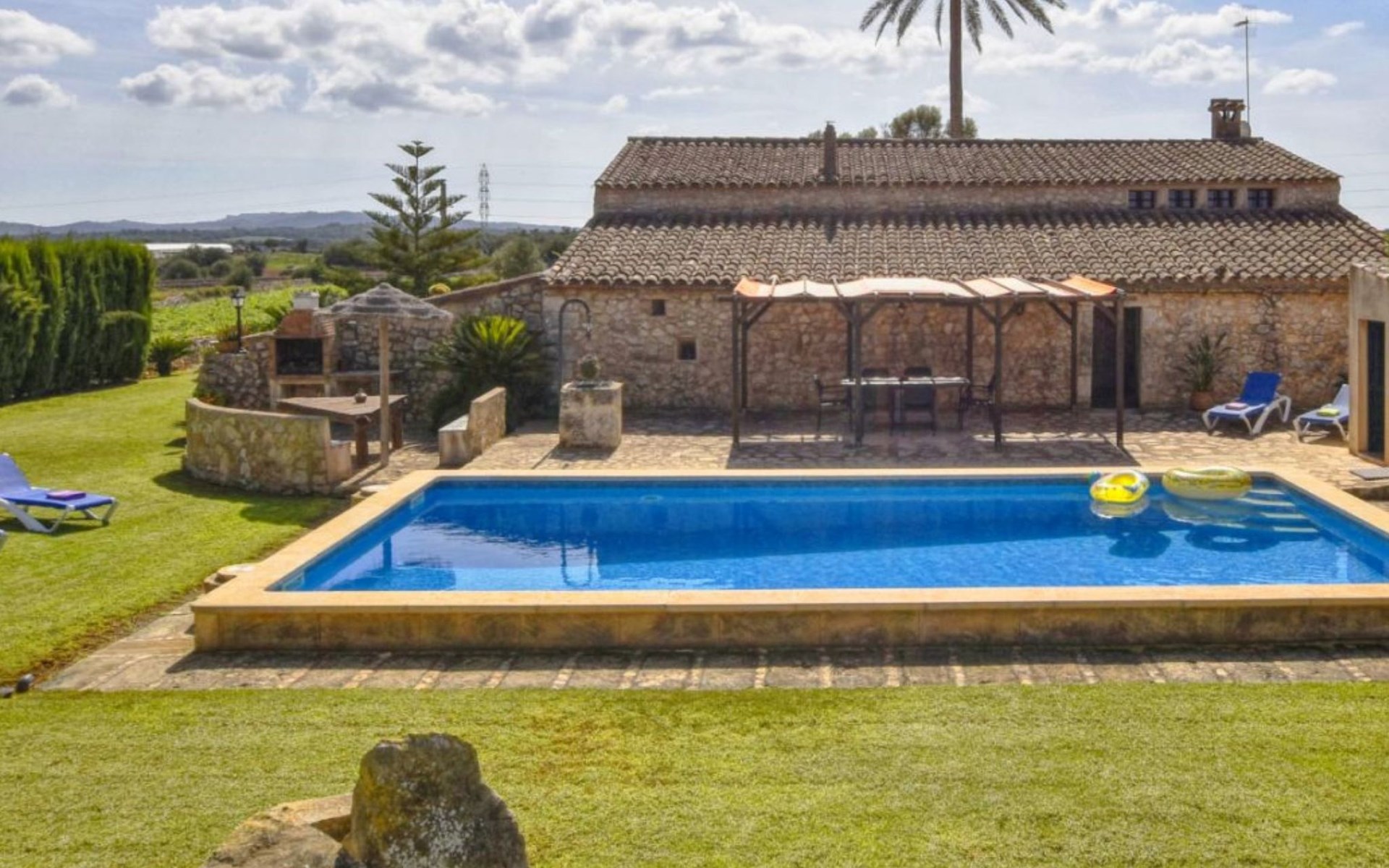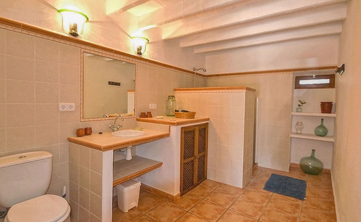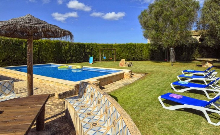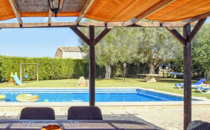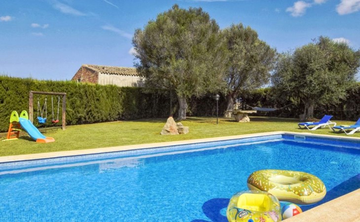 Vilafranca: Large, rustic, simple farm estate "Albadallet", 2 storeys, surrounded by trees and fields. Outside the resort Vilafranca, in a quiet, sunny position, 23 km from the sea, 23 km from the beach, in the countryside. Private: natural state property, beautiful garden to relax, swimming pool angular (5 x 10 m, depth 130 - 210 cm, seasonal availability: 01.Mar. - 31.Oct.). Outdoor shower, table tennis, patio, pergola, garden furniture, barbecue, children's playground. In the house: internet access, WiFi, washing machine. Parking at the house on the premises. Shop 1 km, supermarket 1 km, restaurant 2 km, bar 1 km, café 1 km, pub garden 1 km, bus stop "Vilafranca 1 (65002)" 5.6 km, railway station "Manacor" 5 m, sandy beach "Porto Cristo" 23 km. Please note: car recommended. Suitable for families, suitable for seniors baby equipment (included). Object suitable for 8 adults groups of teenagers on request only. Loading and unloading of baggage is possible at the holiday house. Airfield 31 km from the property.