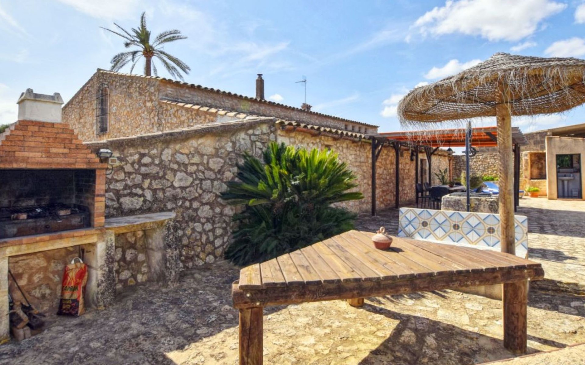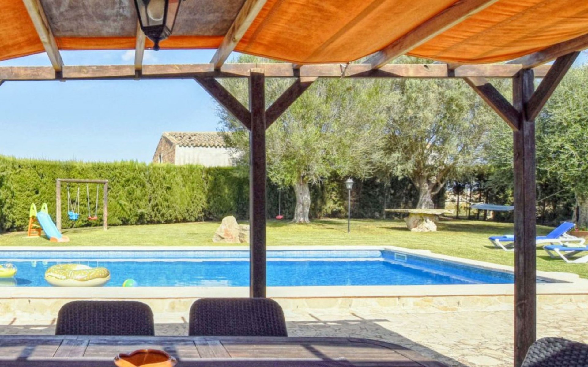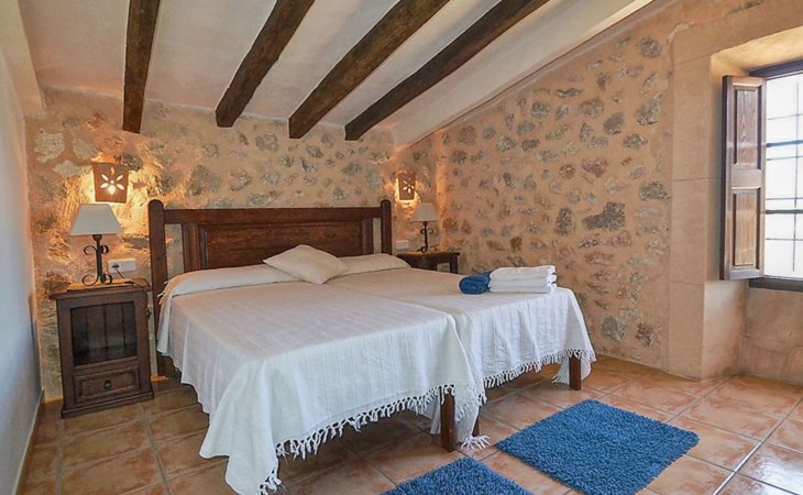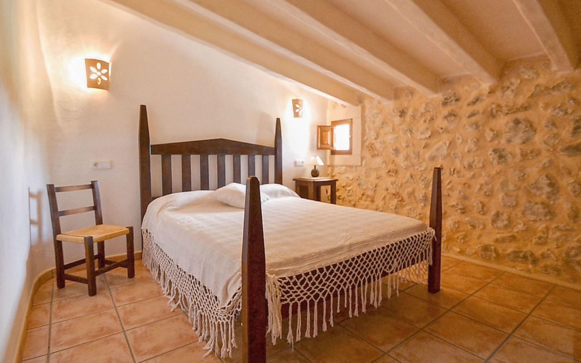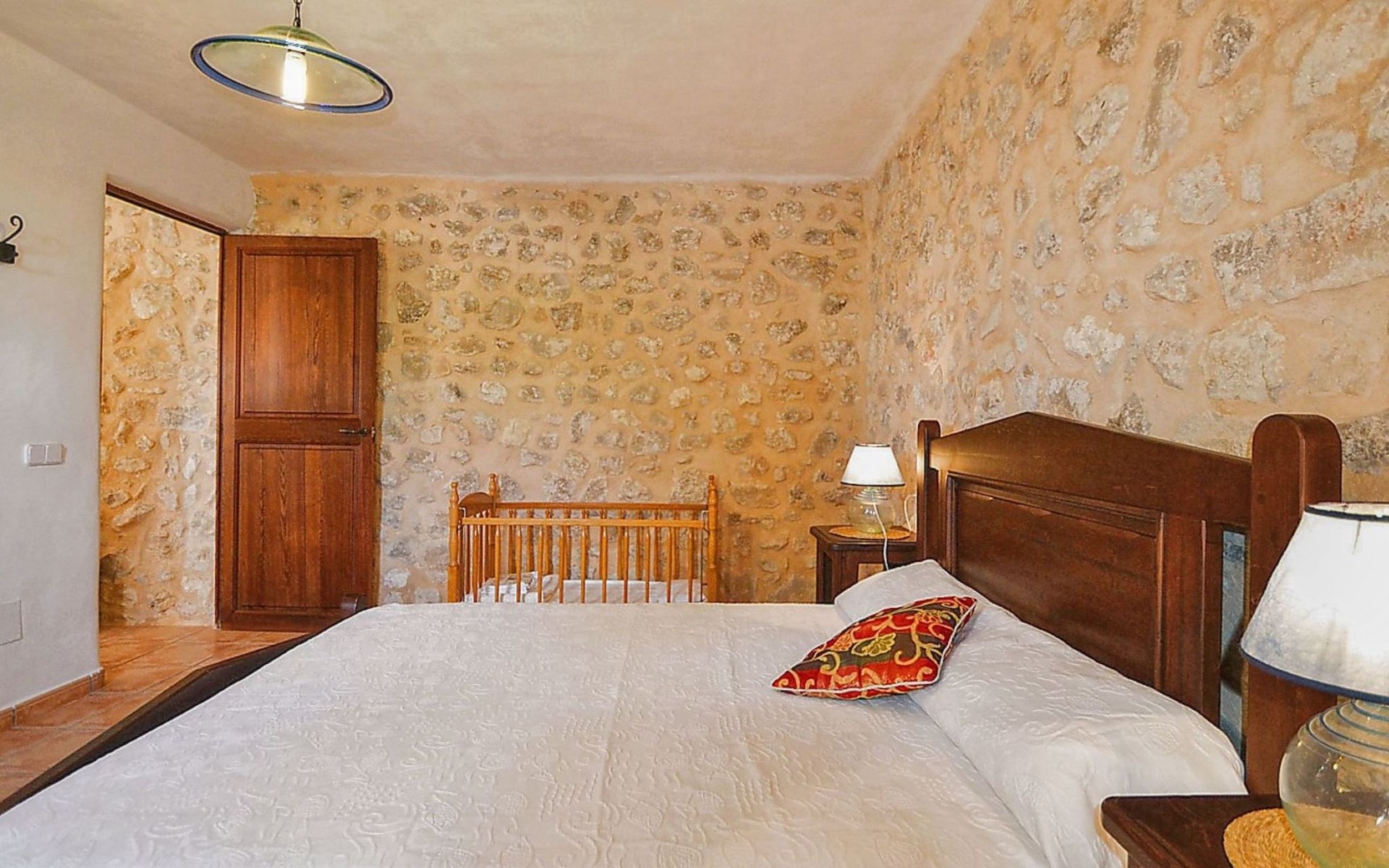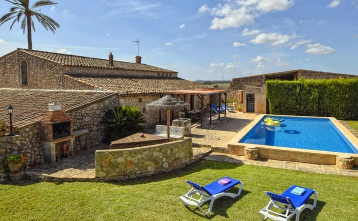 Vilafranca: Large, rustic, simple farm estate "Albadallet", 2 storeys, surrounded by trees and fields. Outside the resort Vilafranca, in a quiet, sunny position, 23 km from the sea, 23 km from the beach, in the countryside. Private: natural state property, beautiful garden to relax, swimming pool angular (5 x 10 m, depth 130 - 210 cm, seasonal availability: 01.Mar. - 31.Oct.). Outdoor shower, table tennis, patio, pergola, garden furniture, barbecue, children's playground. In the house: internet access, WiFi, washing machine. Parking at the house on the premises. Shop 1 km, supermarket 1 km, restaurant 2 km, bar 1 km, café 1 km, pub garden 1 km, bus stop "Vilafranca 1 (65002)" 5.6 km, railway station "Manacor" 5 m, sandy beach "Porto Cristo" 23 km. Please note: car recommended. Suitable for families, suitable for seniors baby equipment (included). Object suitable for 8 adults groups of teenagers on request only. Loading and unloading of baggage is possible at the holiday house. Airfield 31 km from the property.