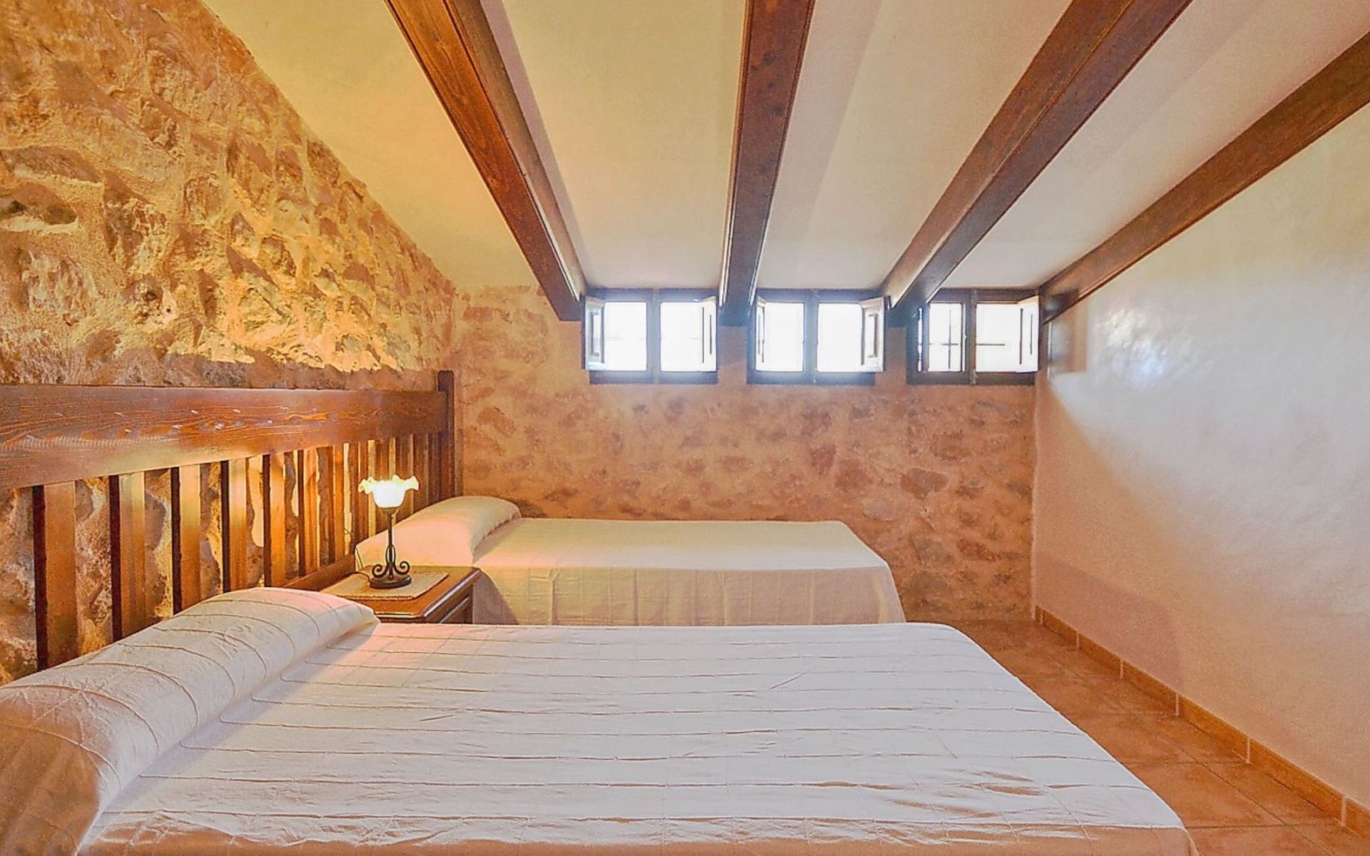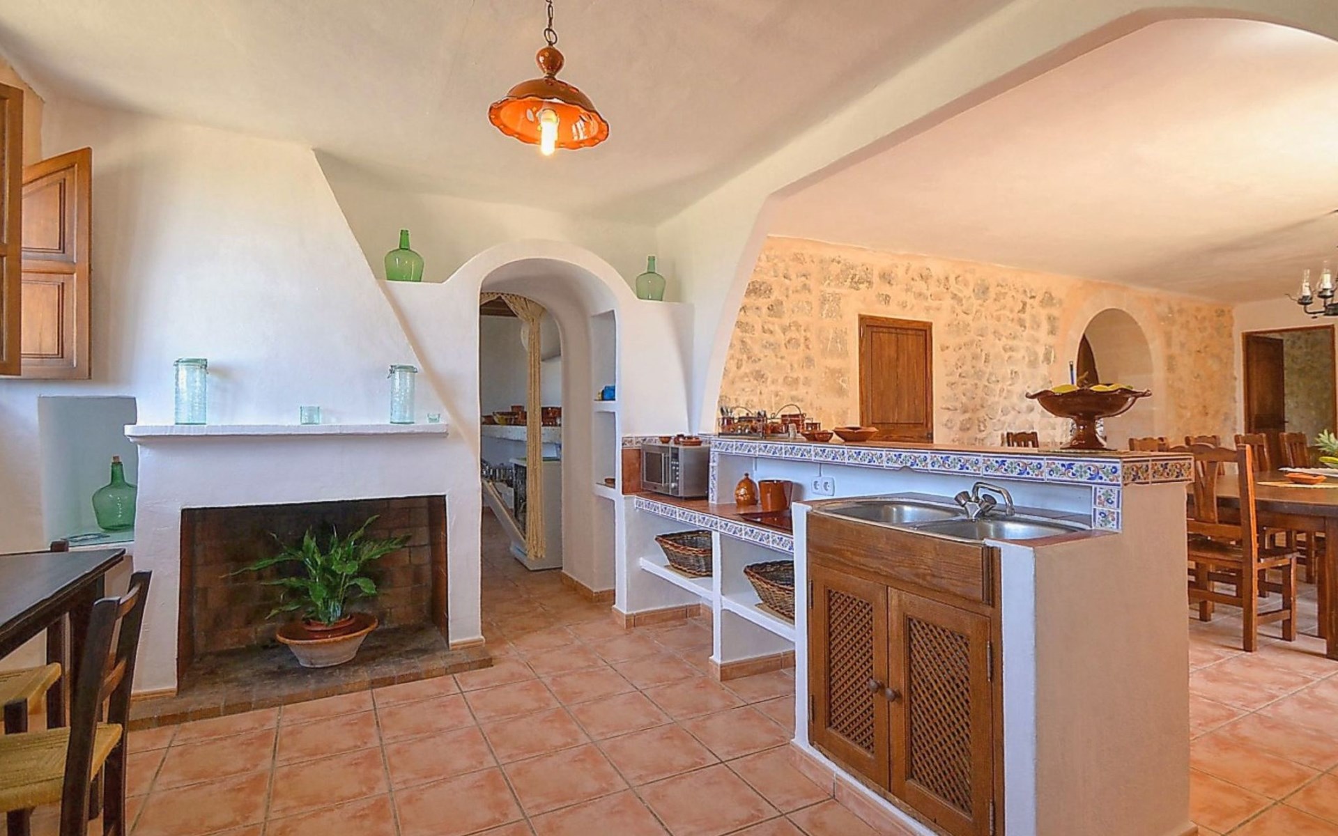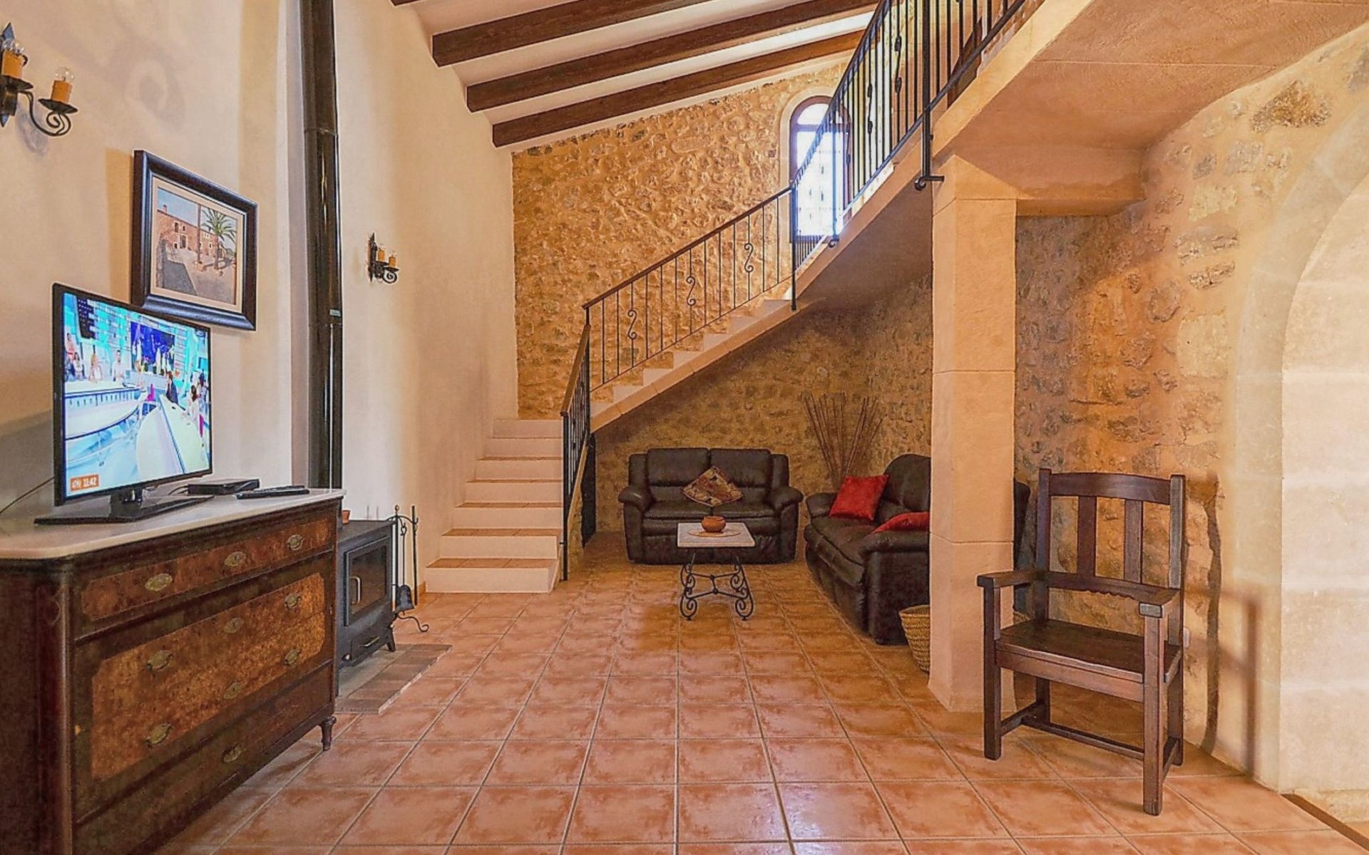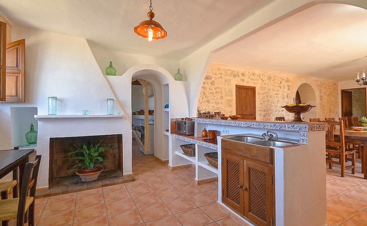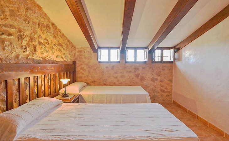 Vilafranca: Large, rustic, simple farm estate "Albadallet", 2 storeys, surrounded by trees and fields. Outside the resort Vilafranca, in a quiet, sunny position, 23 km from the sea, 23 km from the beach, in the countryside. Private: natural state property, beautiful garden to relax, swimming pool angular (5 x 10 m, depth 130 - 210 cm, seasonal availability: 01.Mar. - 31.Oct.). Outdoor shower, table tennis, patio, pergola, garden furniture, barbecue, children's playground. In the house: internet access, WiFi, washing machine. Parking at the house on the premises. Shop 1 km, supermarket 1 km, restaurant 2 km, bar 1 km, café 1 km, pub garden 1 km, bus stop "Vilafranca 1 (65002)" 5.6 km, railway station "Manacor" 5 m, sandy beach "Porto Cristo" 23 km. Please note: car recommended. Suitable for families, suitable for seniors baby equipment (included). Object suitable for 8 adults groups of teenagers on request only. Loading and unloading of baggage is possible at the holiday house. Airfield 31 km from the property.