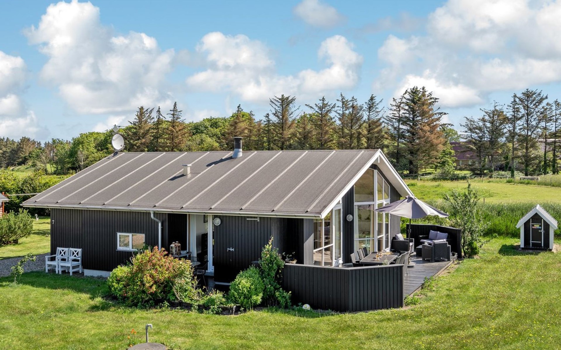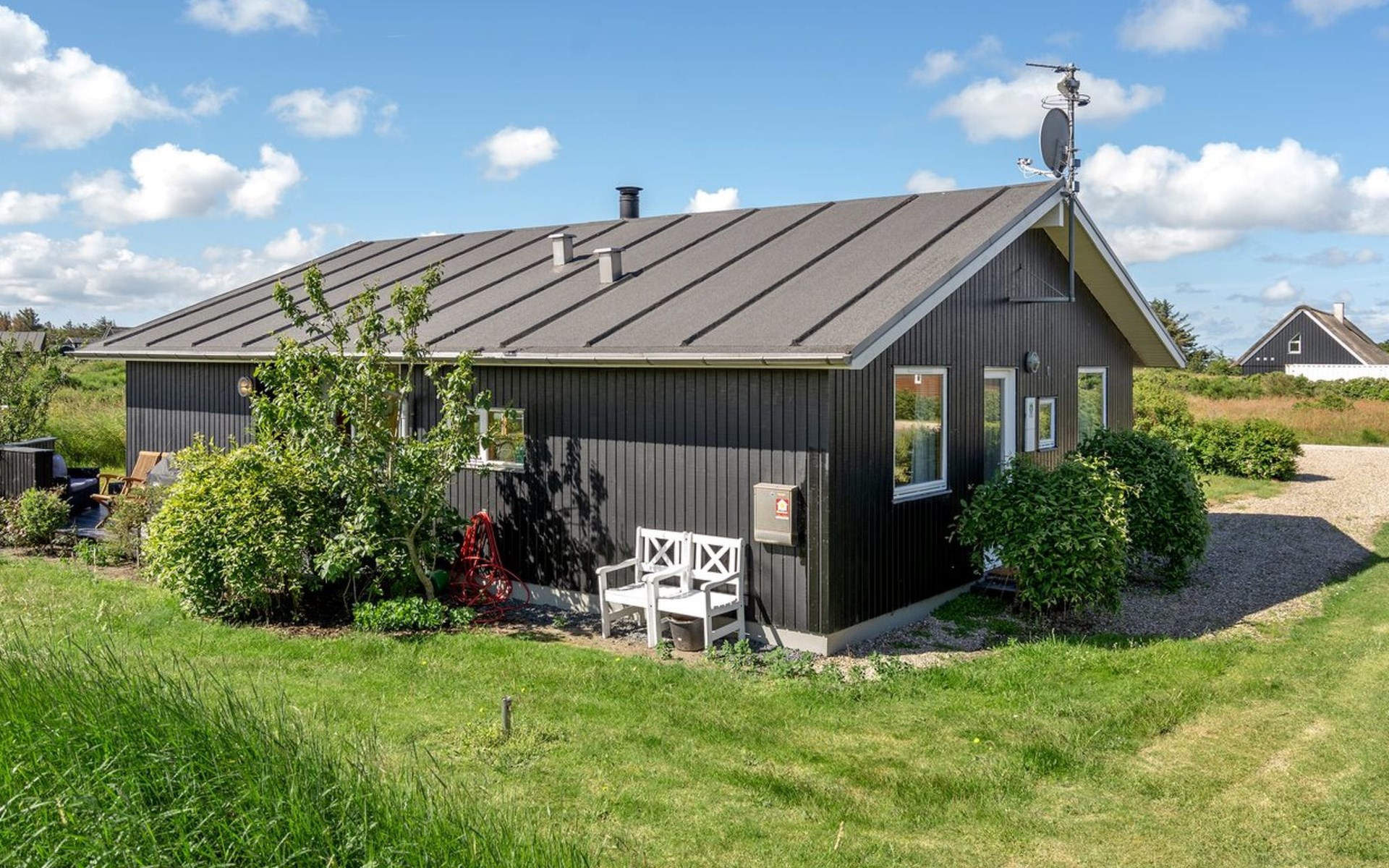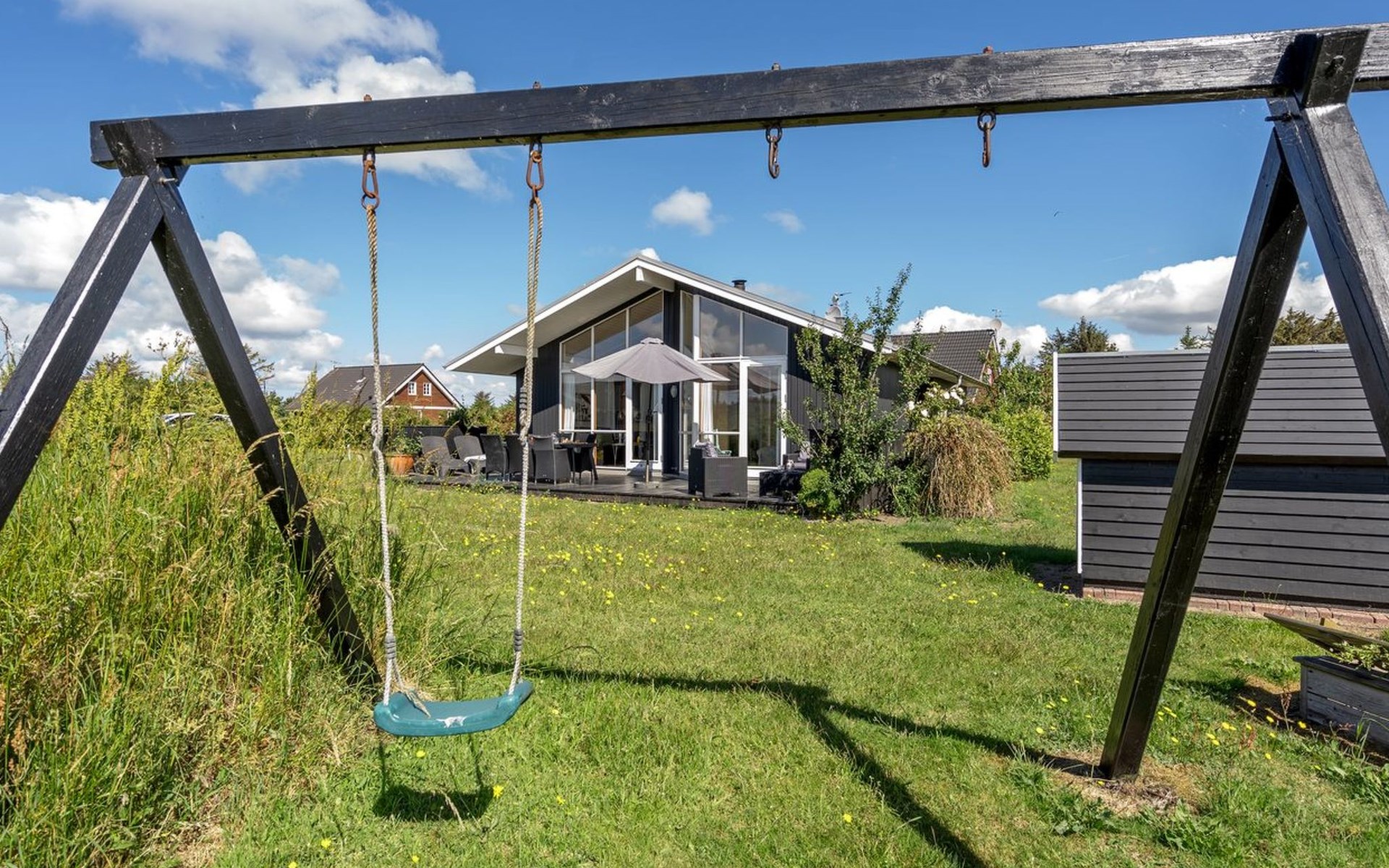 Single-family house, built in 2007. Private: natural state property 1'200 m2. Terrace (80 m2), children's playground (swing). In the house: sauna, washing machine, tumble dryer. Parking at the house. Grocery 4 km. The owner does not accept any youth groups.