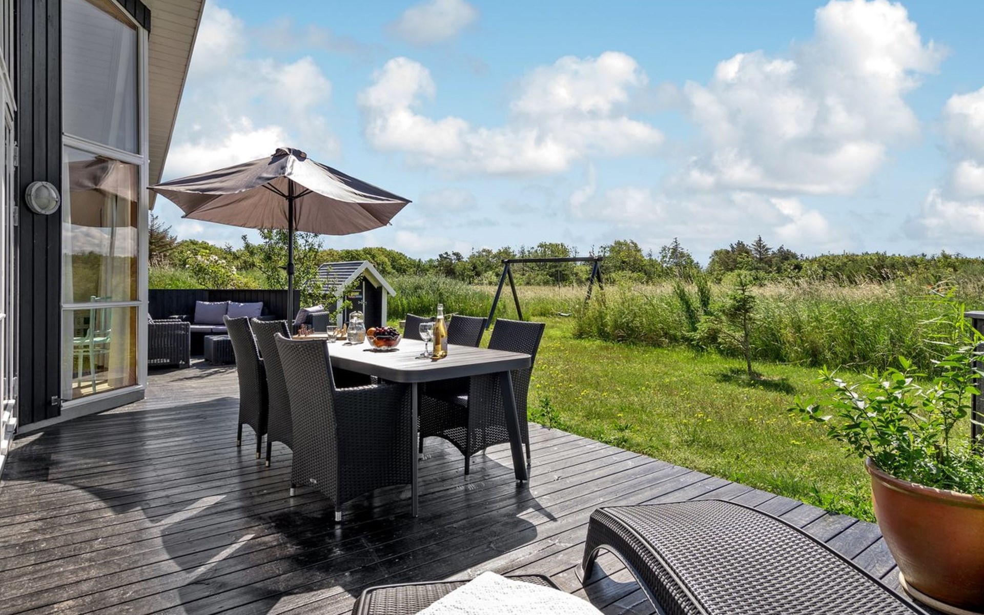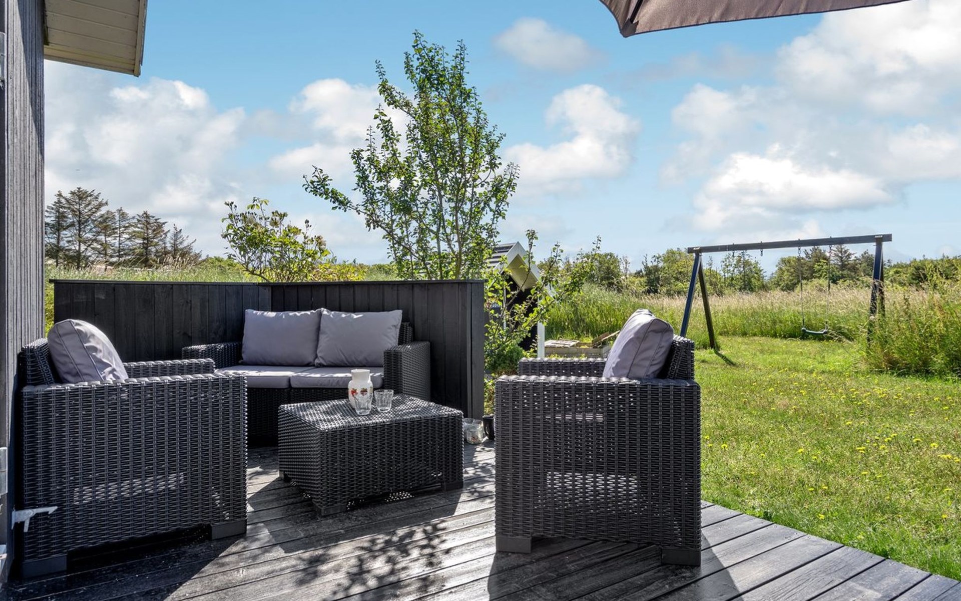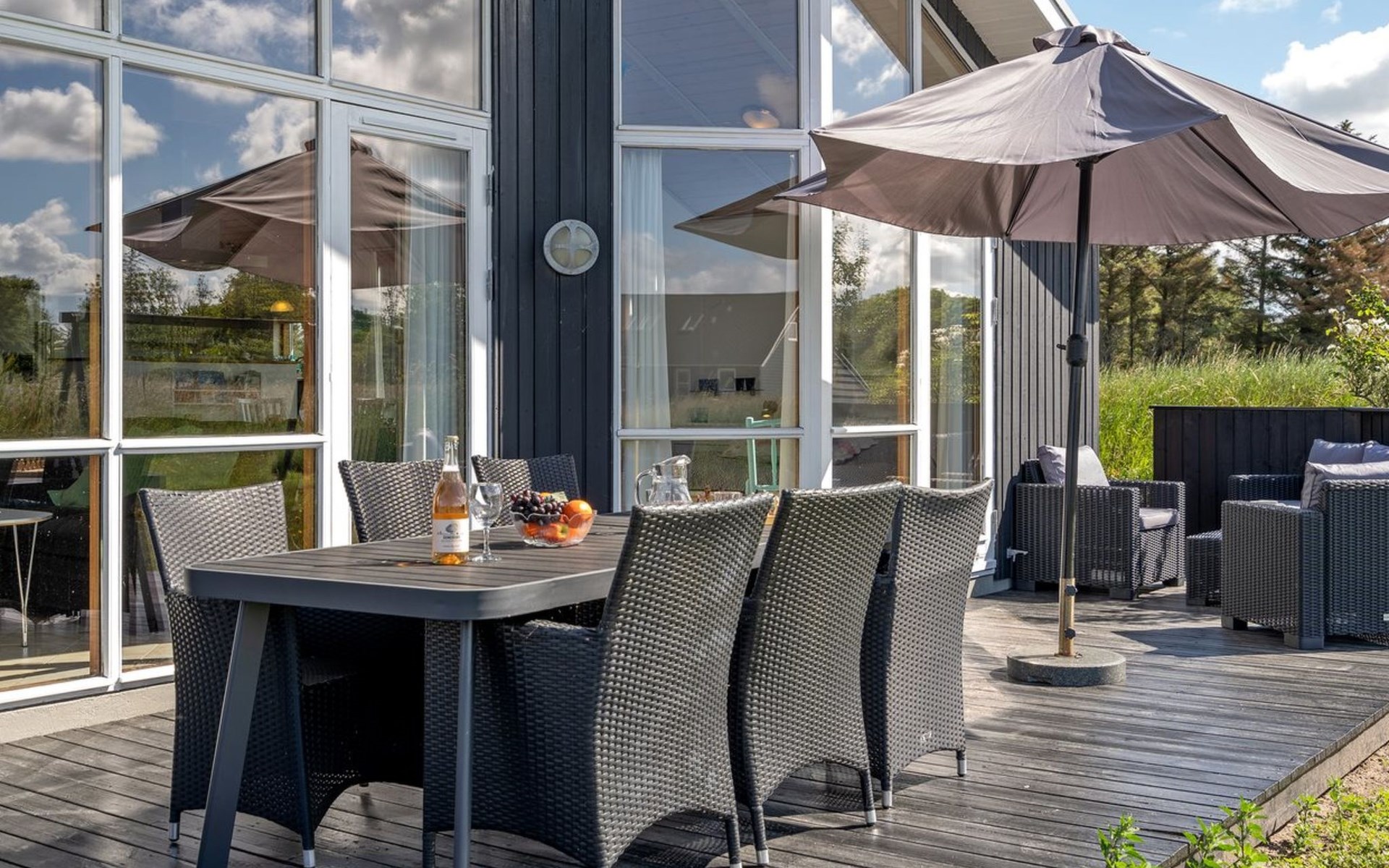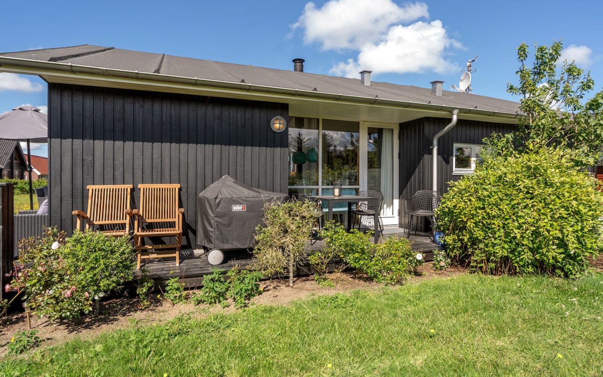 Single-family house, built in 2007. Private: natural state property 1'200 m2. Terrace (80 m2), children's playground (swing). In the house: sauna, washing machine, tumble dryer. Parking at the house. Grocery 4 km. The owner does not accept any youth groups.