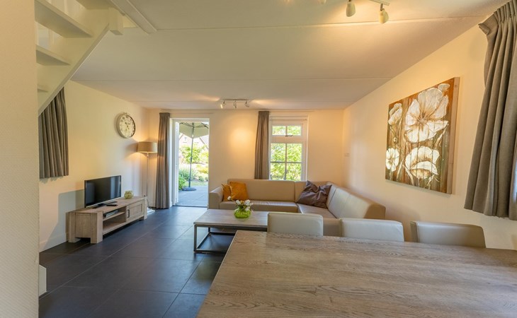 Chateau 6 is a wonderfully luxurious, detached stone bungalow that can accommodate 6 people. In the living room you will find a sitting area with television and a separate dining area. The open kitchen is equipped with a dishwasher, microwave, kettle and coffeemaker. This bungalow has 3 bedrooms, 1 of which is downstairs and 2 upstairs. Each bedroom has 2 single beds. Downstairs is a bathroom with a walk-in shower, sink and toilet. Outside is a terrace with garden furniture. At this bungalow you can park 1 car and there is free wifi.