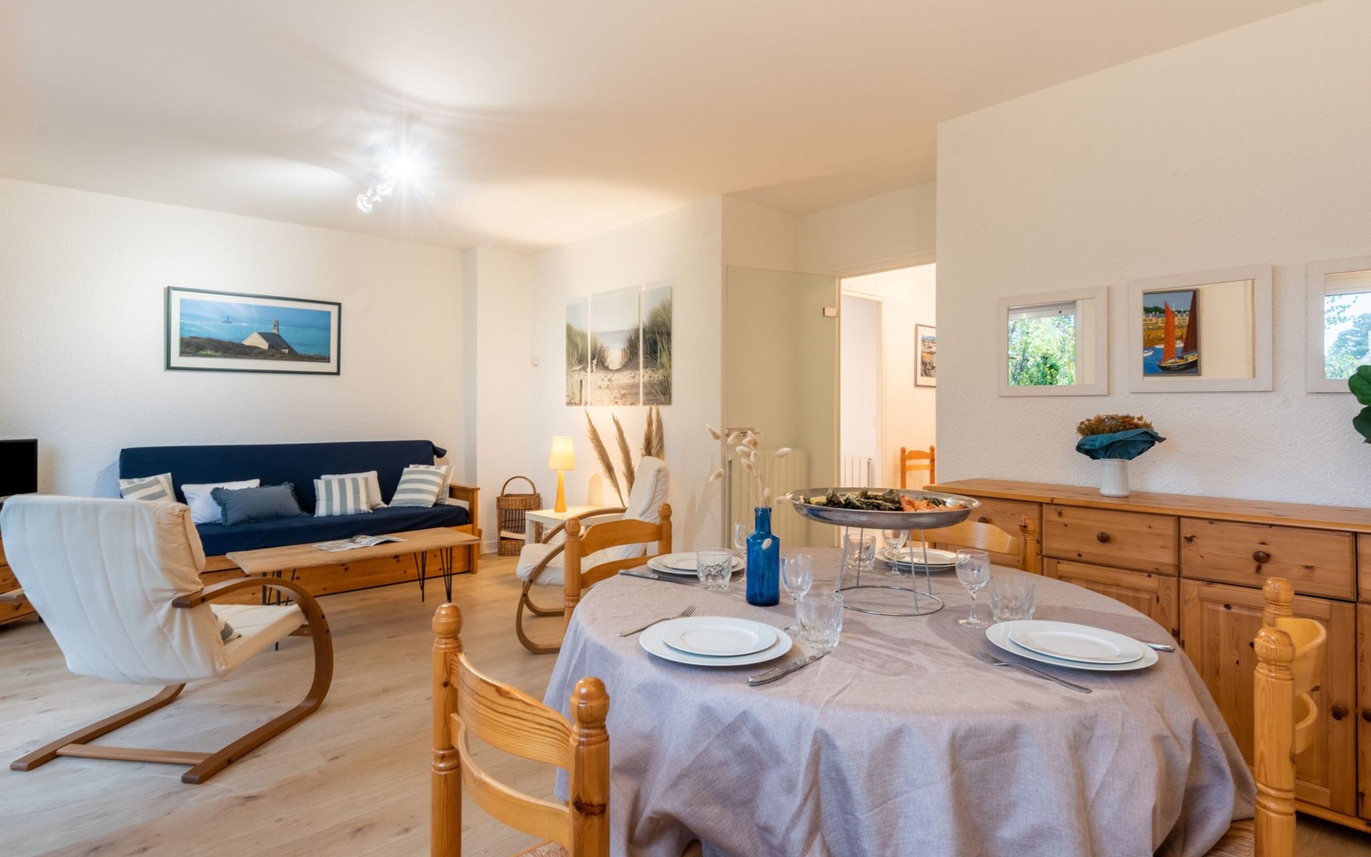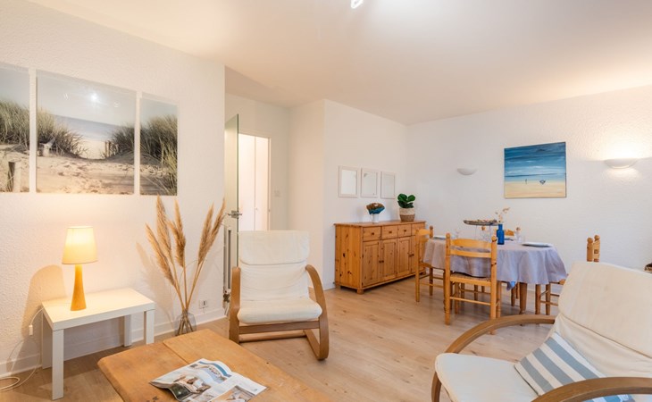 Residence "La Sauvagère", 2 storeys. On the outskirts, 500 m from the sea, from the beach, in a cul-de-sac. Shop 1.7 km, supermarket 150 m, restaurant 1.7 km, railway station "Auray" 17 km, sandy beach 500 m. Golf course (18 hole) 16 km, sailing school 4 km. Nearby attractions: Alignements de Carnac 4.6 km, La Trinité sur Mer 3 km, Presqu'Ile de Quiberon 16 km, Auray 16 km, Vannes 32 km, Lorient 53 km. Hiking paths: Le Golfe du Morbihan, Belle île en Mer, Houat, Hoedic.