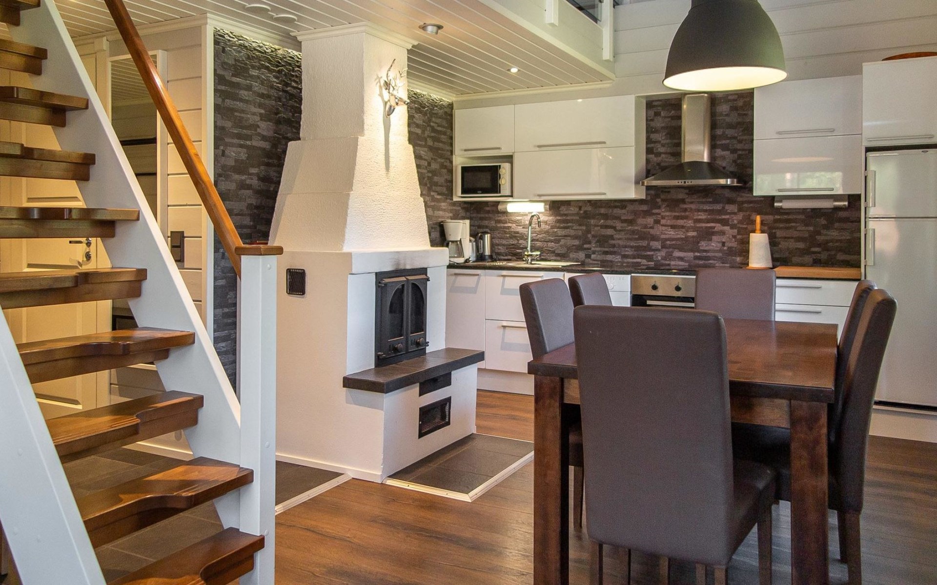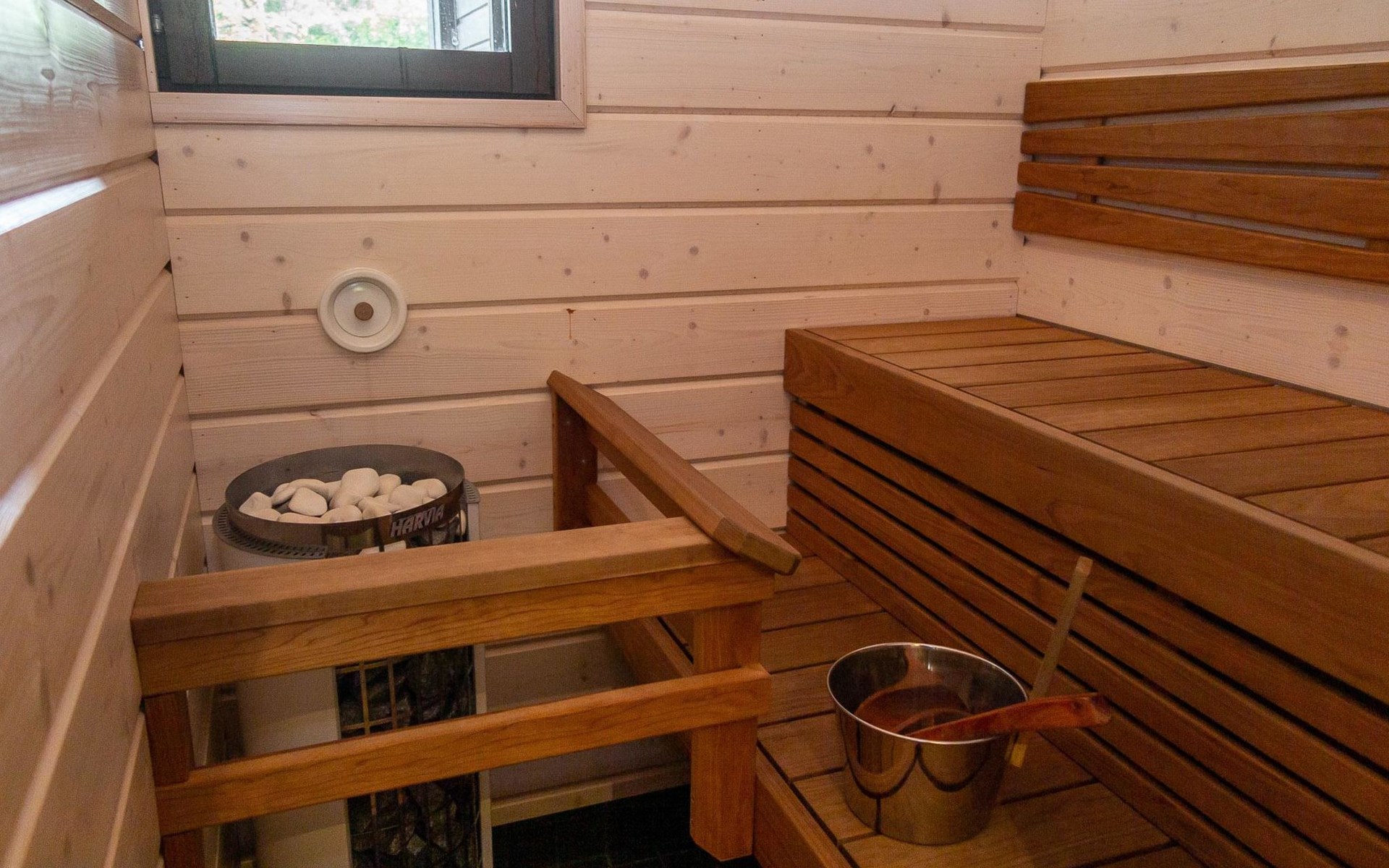 2013 throughly renovated one half of semi-detached house unit, kitchen-living room, bedroom with two beds, low loft 3 single beds (steep stairs to loft), washroom, sauna (electric stove). Holiday apartment is decorated with high-quality materials. This is a compact package in the heart of ski resort Tahko. All services are within walking distance; nearest skilift 400 m, hotel Tahkovuori 700 m, Tahko Spa 1.1 km, the nearest restaurant 400 m Golf 1.3 km (Old Course) and 6 km (New Course).
