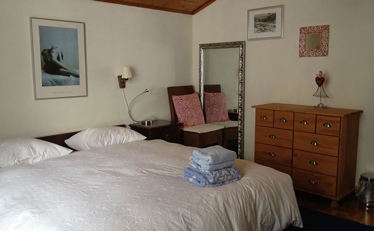 5-room-chalet: living room, kitchen, 2 double rooms with double beds (1 with additional babybed), 1 twin room, 1 small room with a divanbed, bath-toilet, extra toilet, east-facing balcony.
