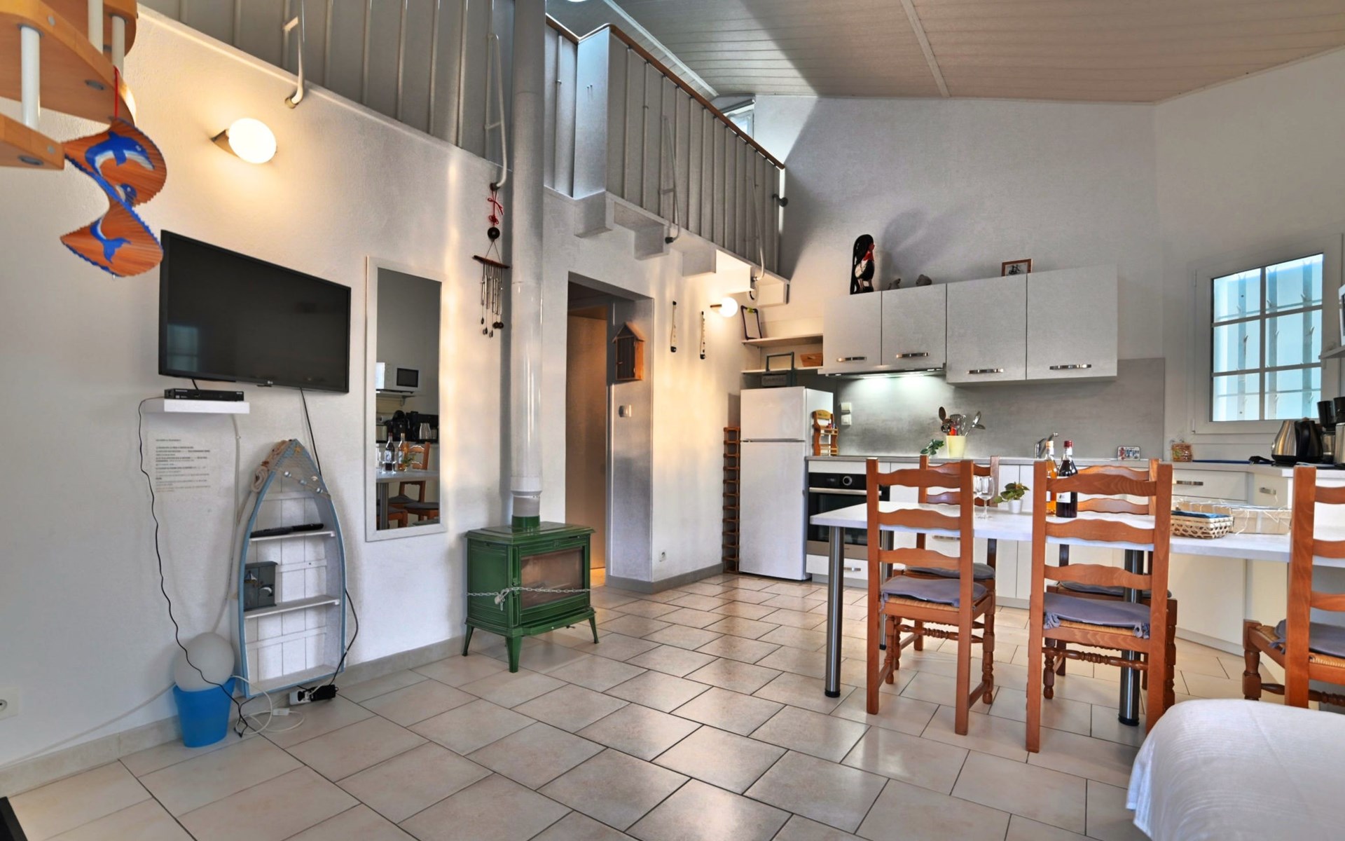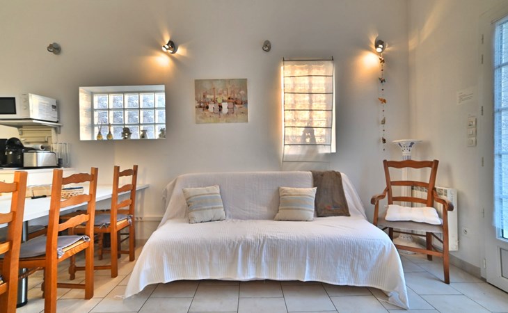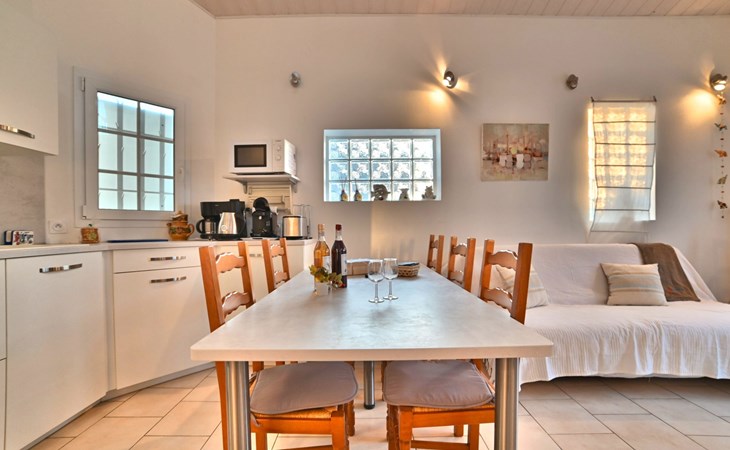 Small single-family house "Douce Alouette". In the resort 3 km from the centre of Dolus d'Oléron, in a quiet position, 300 m from the edge of the forest, 300 m from the sea, 300 m from the beach, in the countryside. Private: small garden (fenced). Outdoor shower. In the house: washing machine. Parking (for 2 cars) at the house. Supermarket 3 km, restaurant 3 km, bar 3 km, bakery 3 km, café 3 km, bicycle rental 3 km, bus stop "Gare routière (Dolus)" 3.5 km, railway station "Rochefort sur mer" 43 km, thermal baths "Thalasso" 14 km. Sports harbour 6 km, golf course (9 hole) 9 km, surf school 550 m. Nearby attractions: Iléo centre aquatique 4 km, Phare de Chassiron 22 km, Port de la Cotiniere 4 km, Corderie Royale Rochefort 42 km, La rochelle 75 km. Please note: car recommended. Suitable for families, baby equipment.