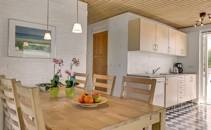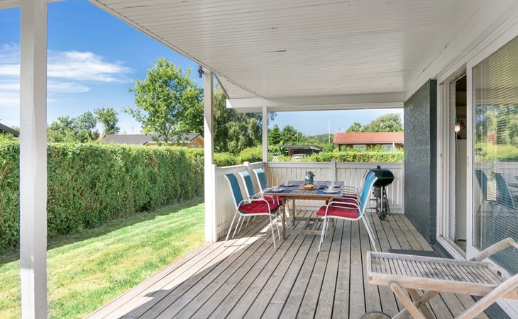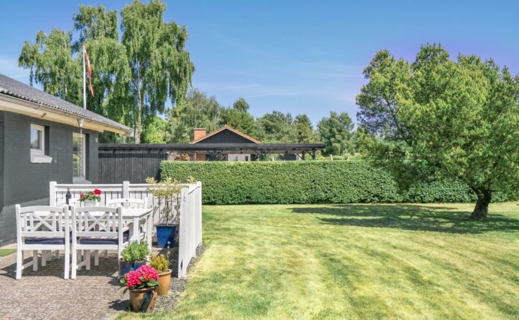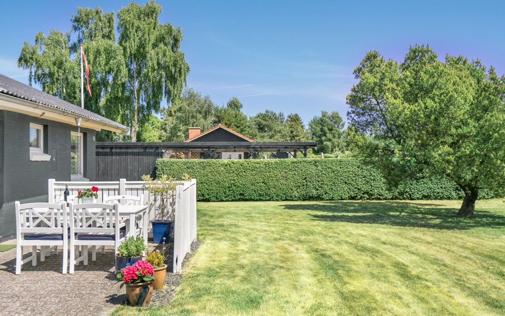 Single-family house, built in 1977. 300 m from the sea. Private: property 890 m2, well-kept garden. Terrace (30 m2), barbecue, fireplace, parking at the house. Grocery 300 m. Golf course 8 km. The owner does not accept any youth groups.