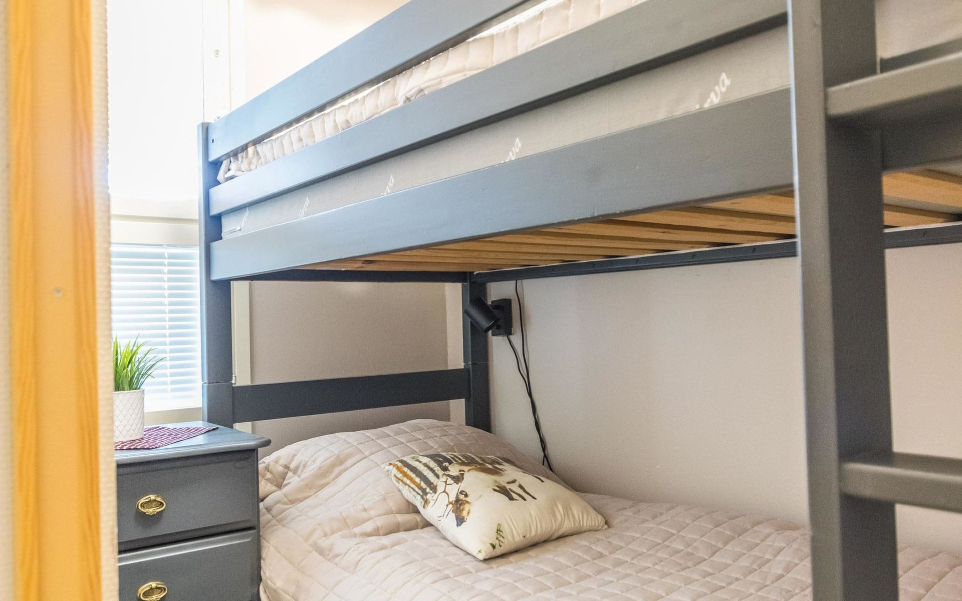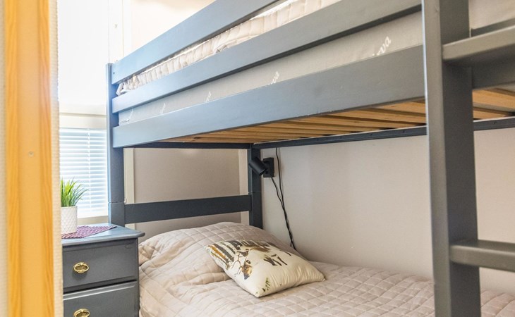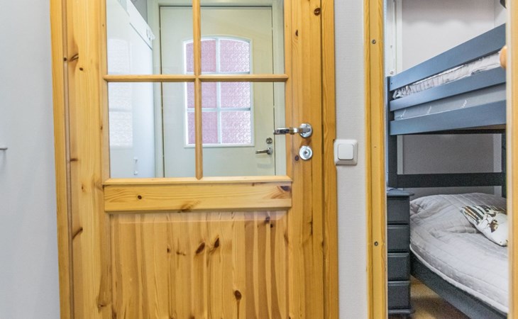 Restful sleep comes in the apartment's bedroom, which has two beds. There is a bunk bed in the alcove, which closes with a folding door.