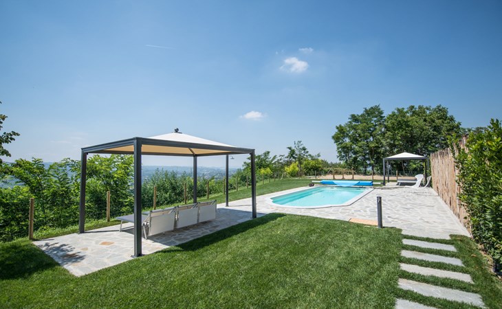 Very comfortable cottage "Cascina", from the 19th century, surrounded by fields and vineyards. 2 km from the centre of Costigliole d'Asti, on the outskirts, 15 km from the centre of Asti, 15 km from the centre of Alba, in an elevated position on top of a hill, 100 km from the sea. For shared use: property (fenced), garden with lawn and plants, meadow, swimming pool (10 x 4 m, depth 140 cm, seasonal availability: 28.Mar. - 31.Oct.) with salt-electrolysis pool-cleaning system. Outdoor shower, pergola, terrace, pool maintenance by the owner/gardener. Private: garden (fenced) with lawn and wildlife garden, parking at the house on the premises. Supermarket 2 km, bus stop 6.5 km, railway station "Asti" 15 km. Golf course (9 hole) 11 km. Please note: car recommended. The owner does not accept any youth groups.