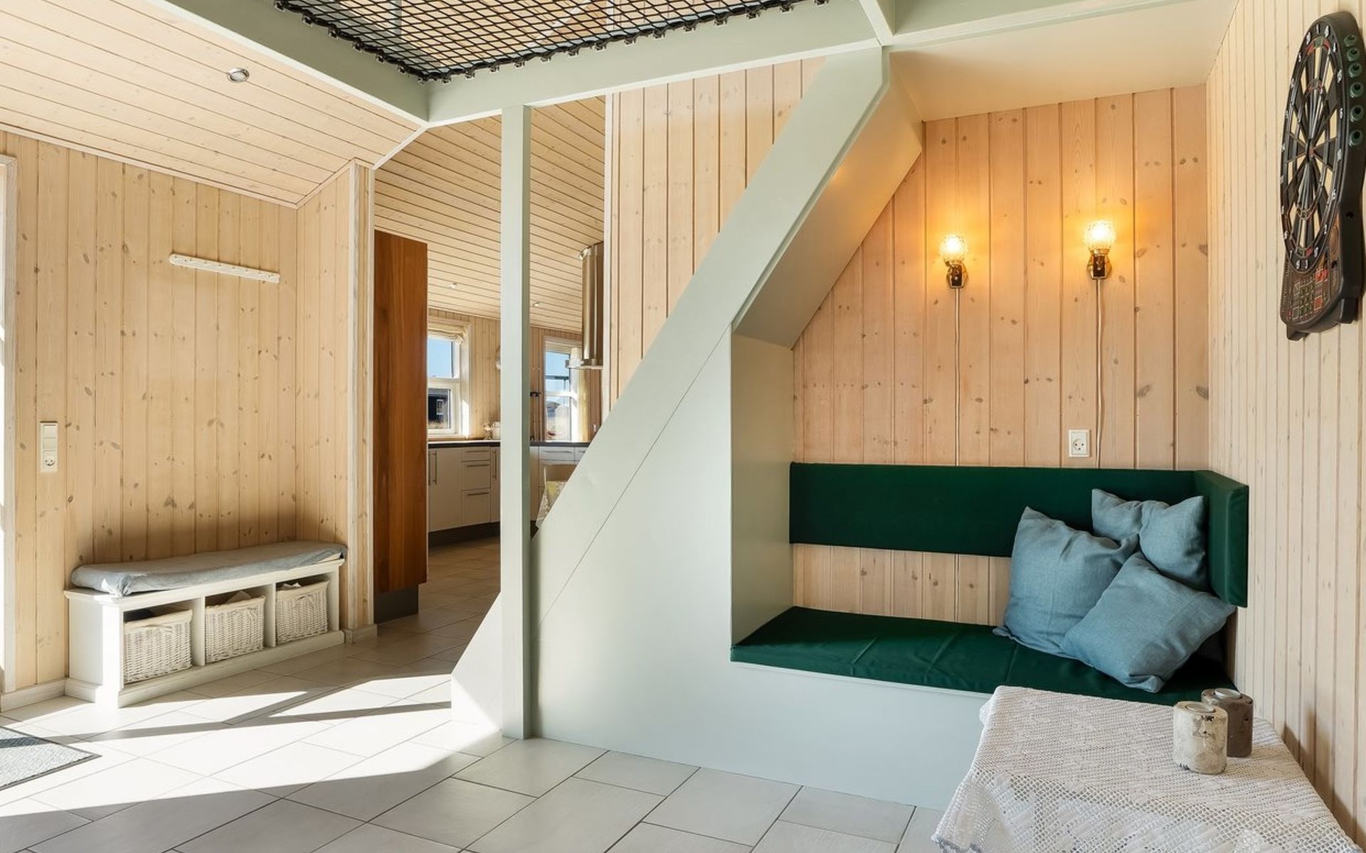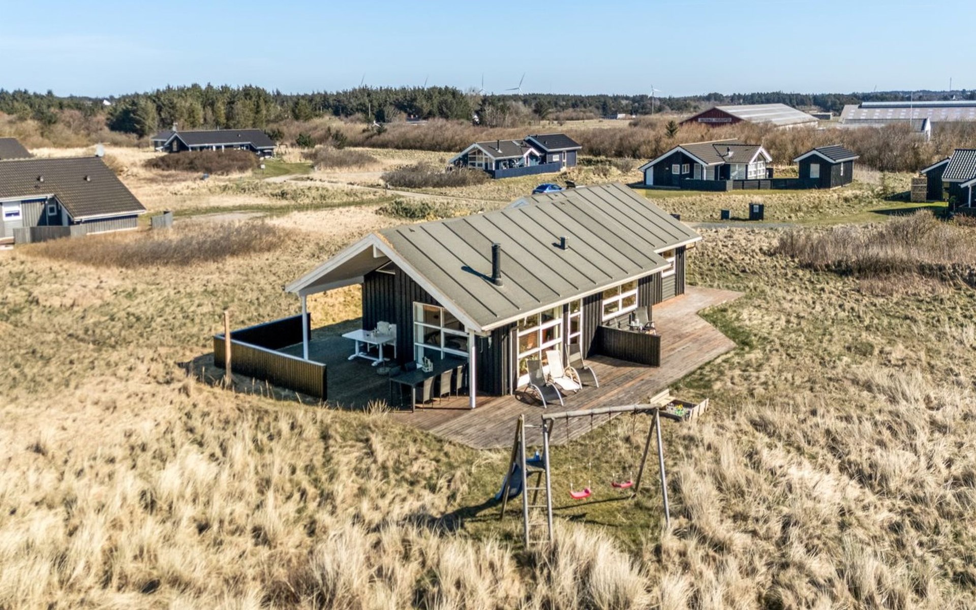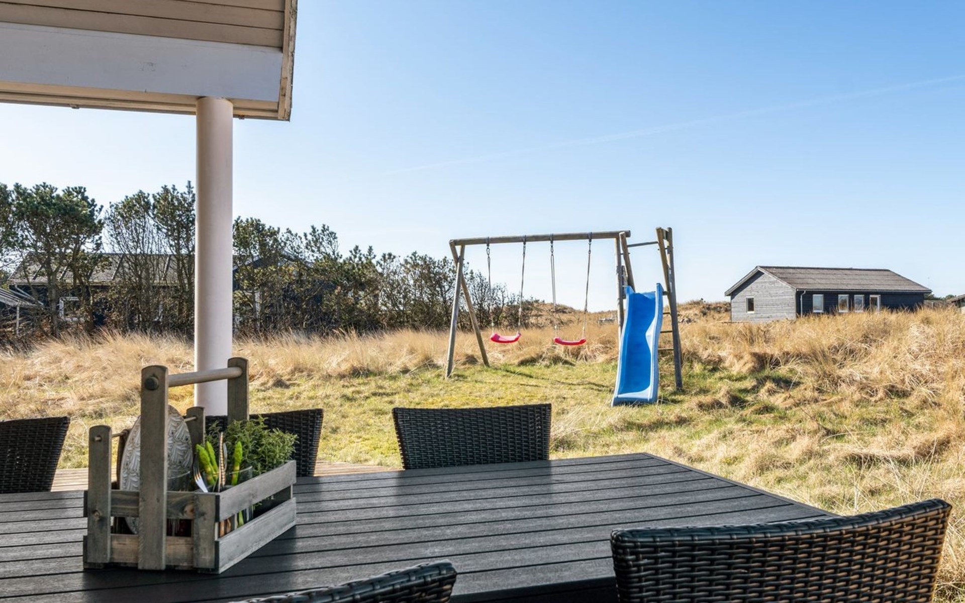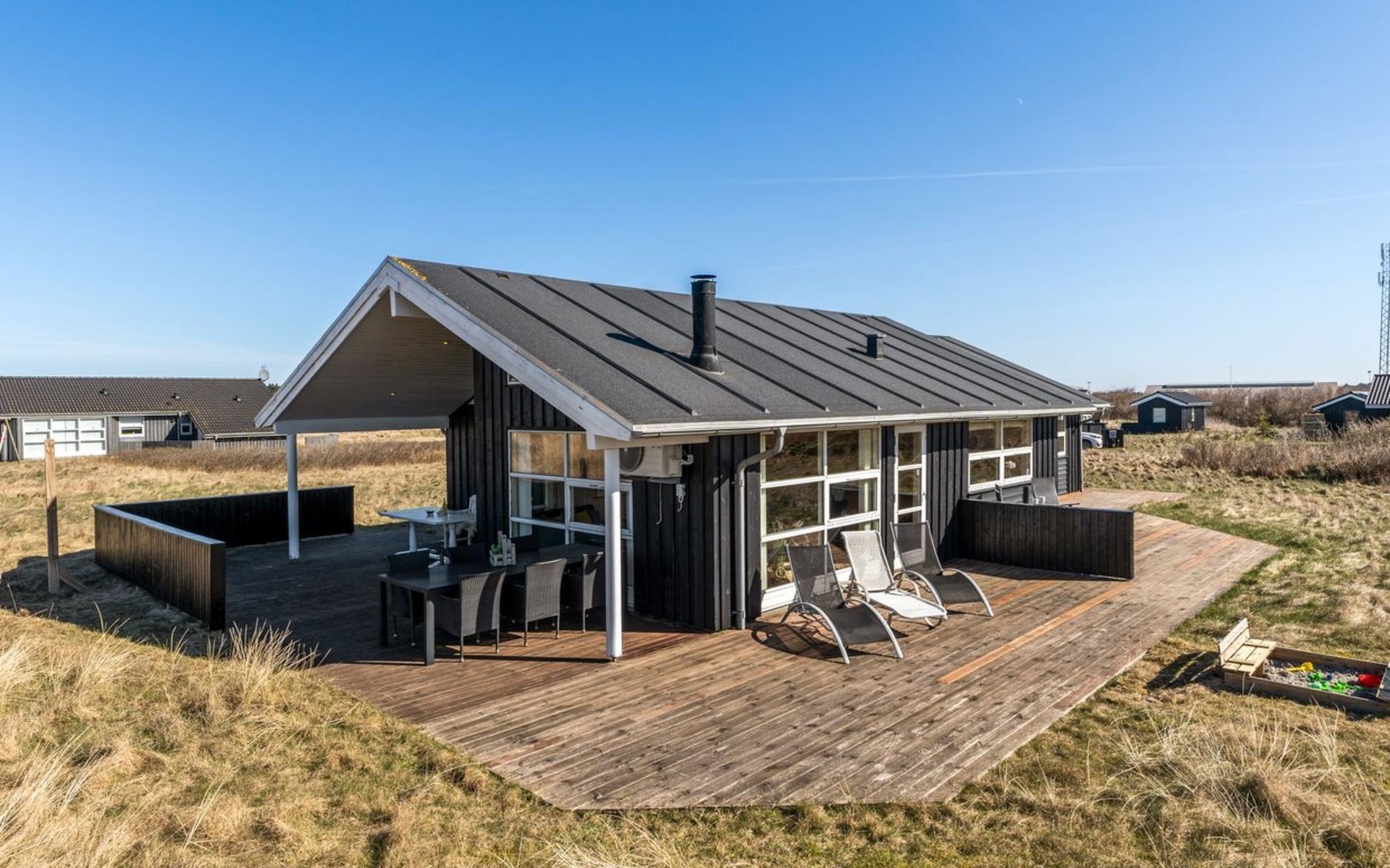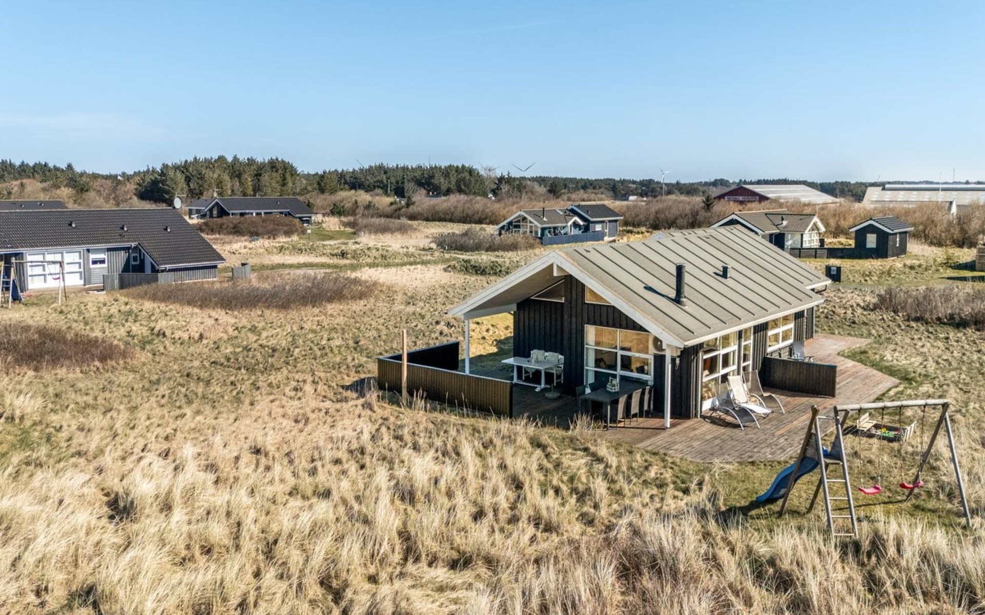Single-family house, built in 2007. 902 m from the sea. Private: natural state property 2'600 m2. Terrace (90 m2), barbecue, children's playground (swing). In the house: sauna, washing machine, tumble dryer. Parking at the house. Grocery 2 km. The owner does not accept any youth groups.