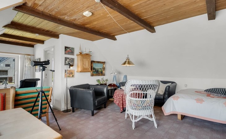 Single-family house, built in 1850. 2.5 km from the sea. Private: natural state property 3'000 m2. In the house: sauna, washing machine. Parking at the house. E-charging station. Grocery 3 km. The owner does not accept any youth groups.